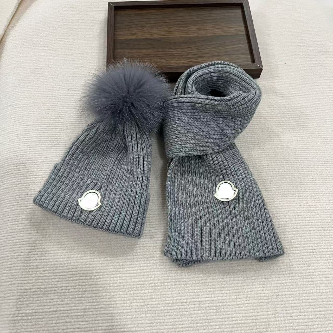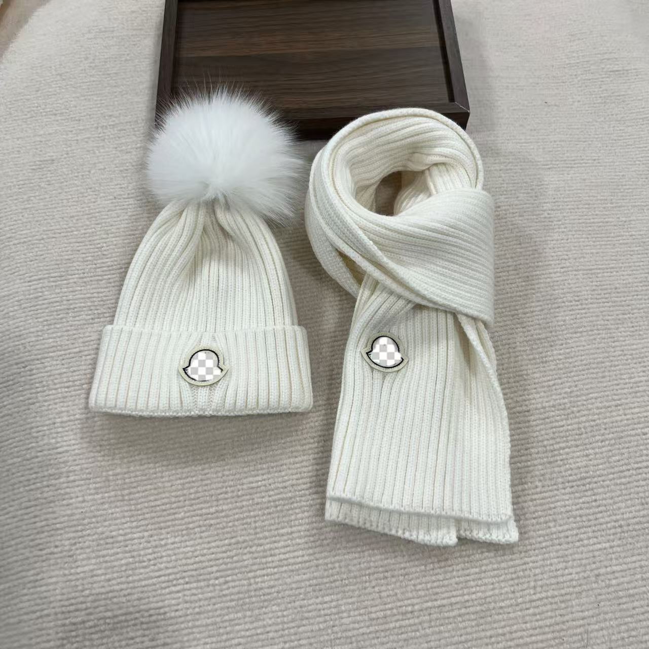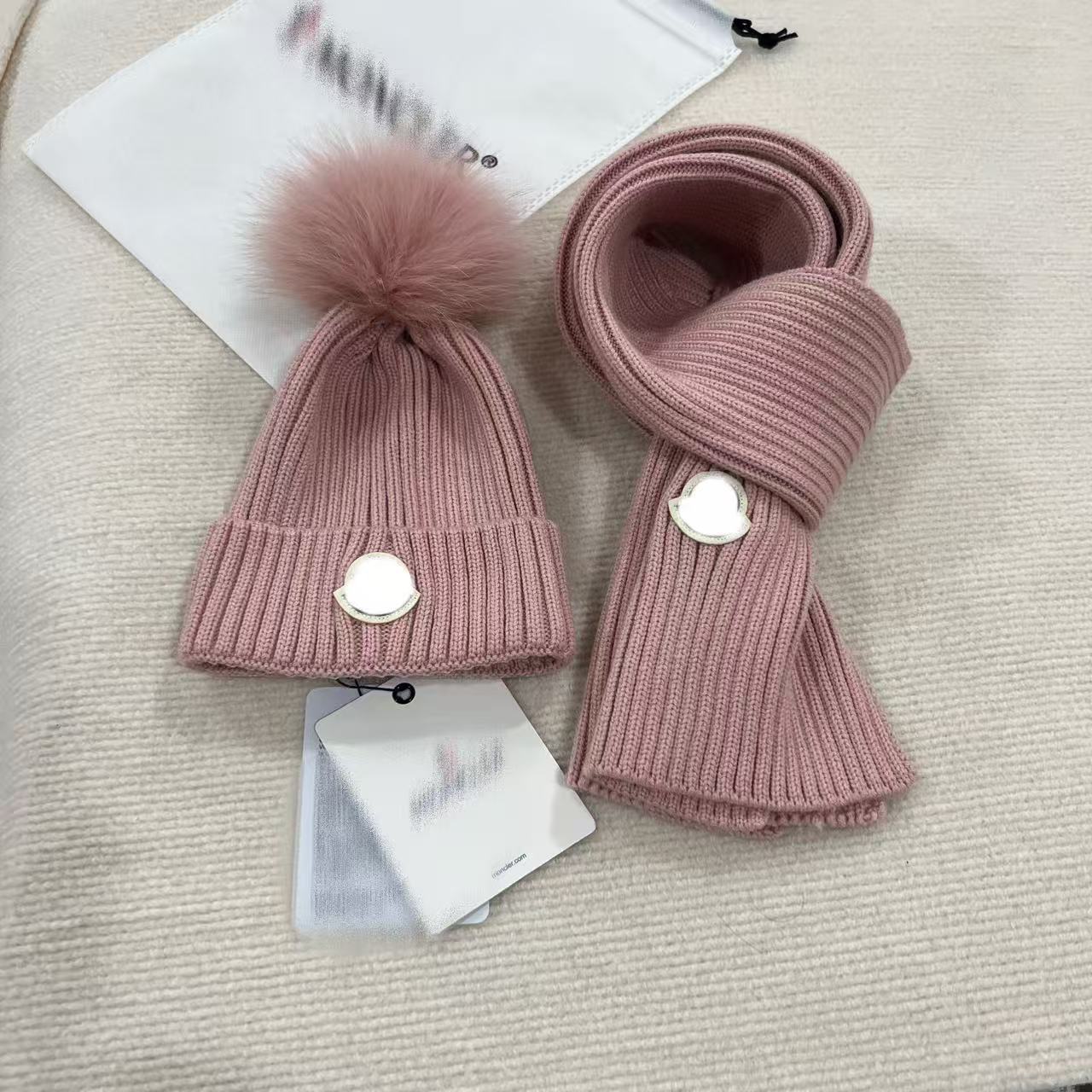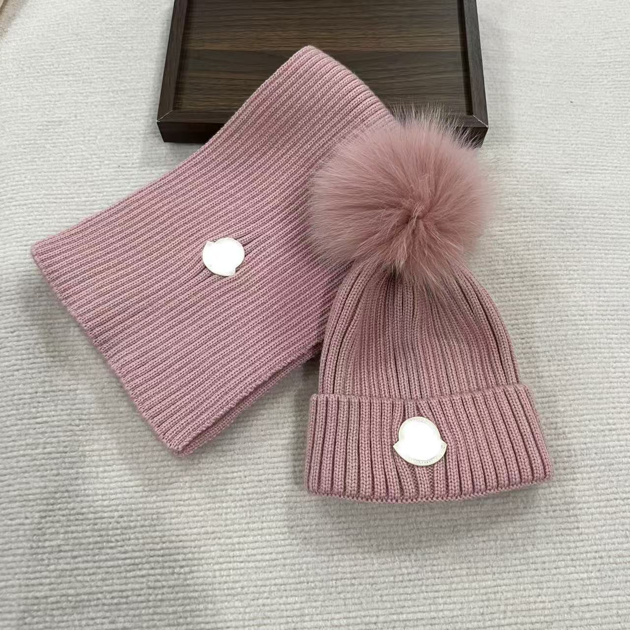 M 어린이 여우 모피 공 모자 스카프 세트 겨울 따뜻한 니트 투피스 솔리드 컬러 스카프 소녀 소년