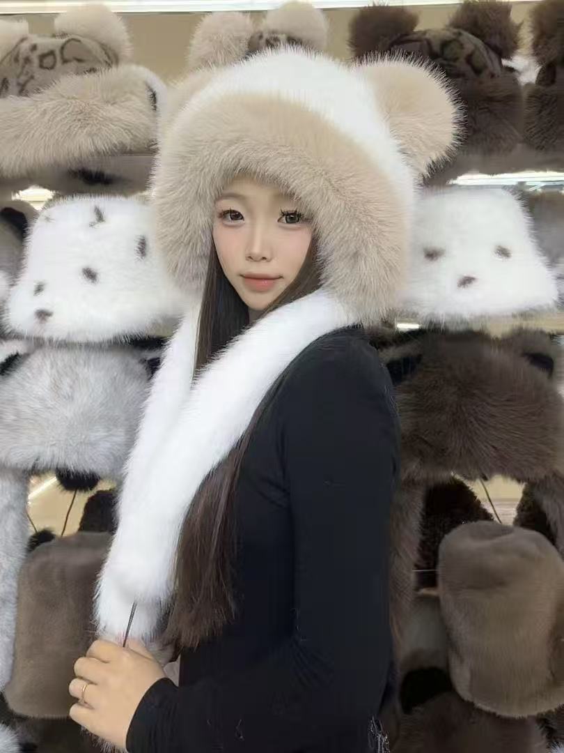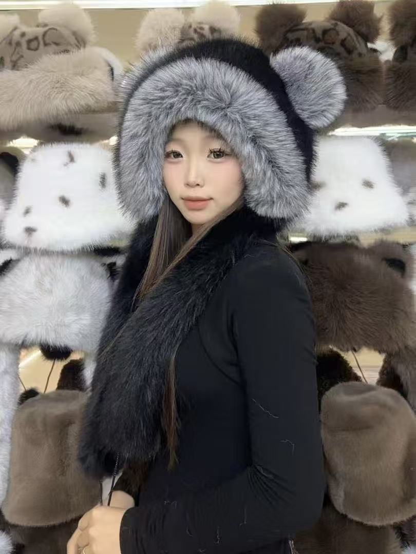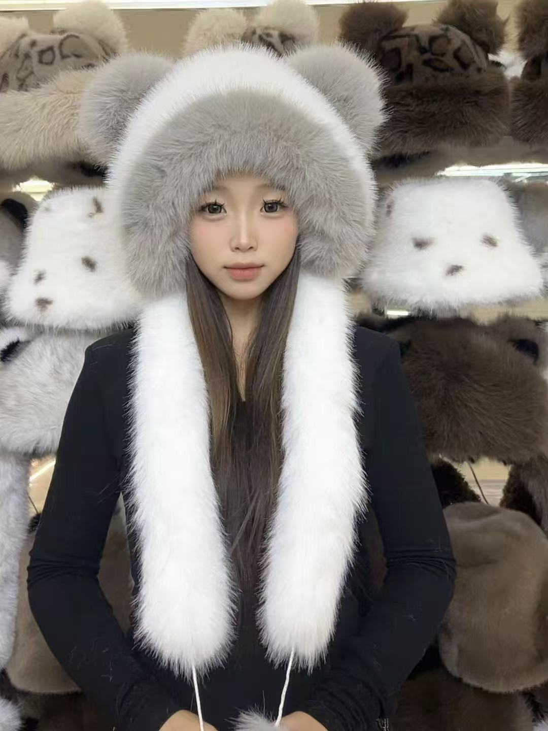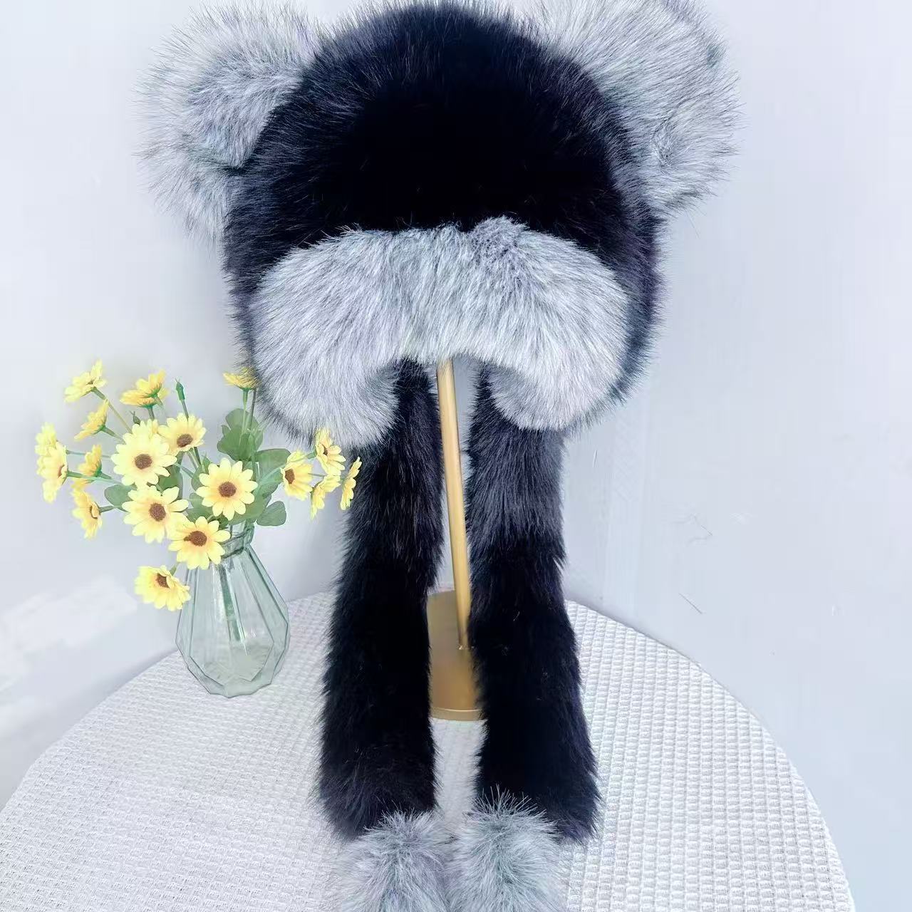 새로운 색상 매칭 곰 귀여운 모조 여우 모피 모자 여성 가을, 겨울 따뜻하고 두꺼운 얼굴이 보이는 작은 플러시 귀 보호 모자
