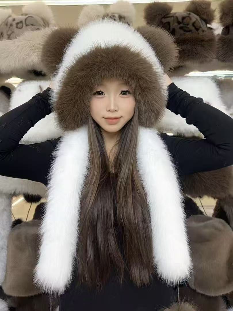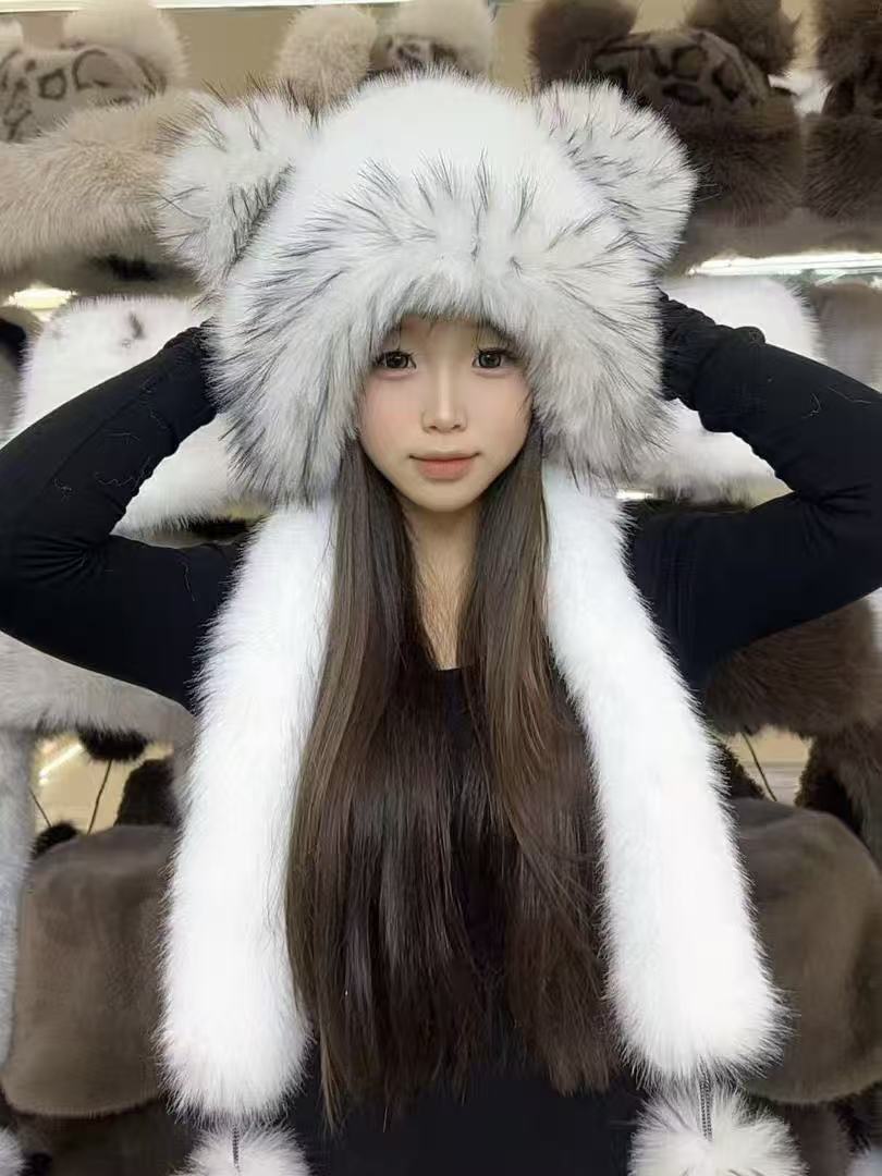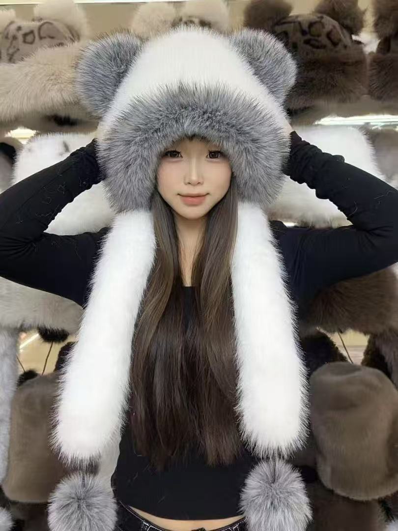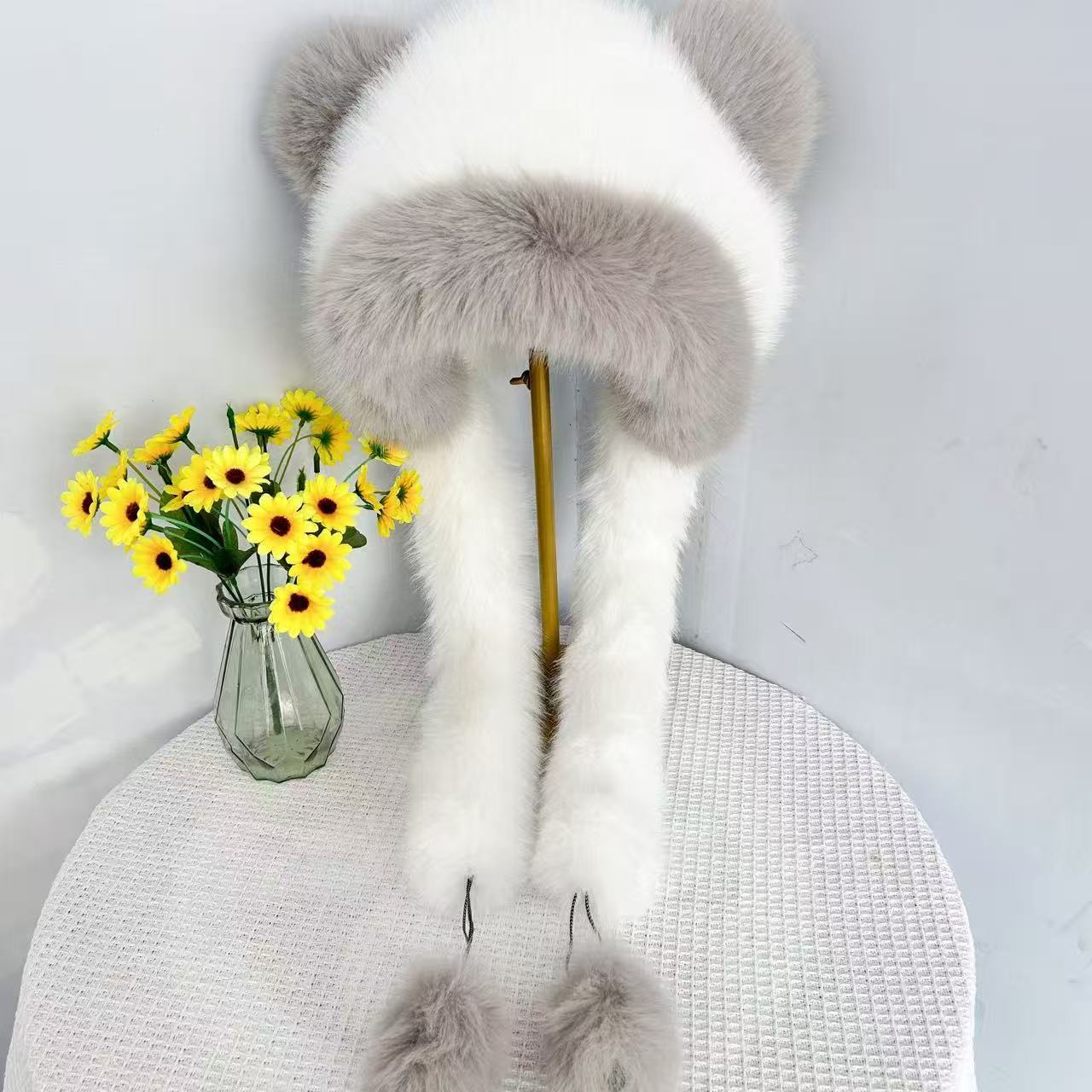 새로운 색상 매칭 곰 귀여운 모조 여우 모피 모자 여성 가을, 겨울 따뜻하고 두꺼운 얼굴이 보이는 작은 플러시 귀 보호 모자