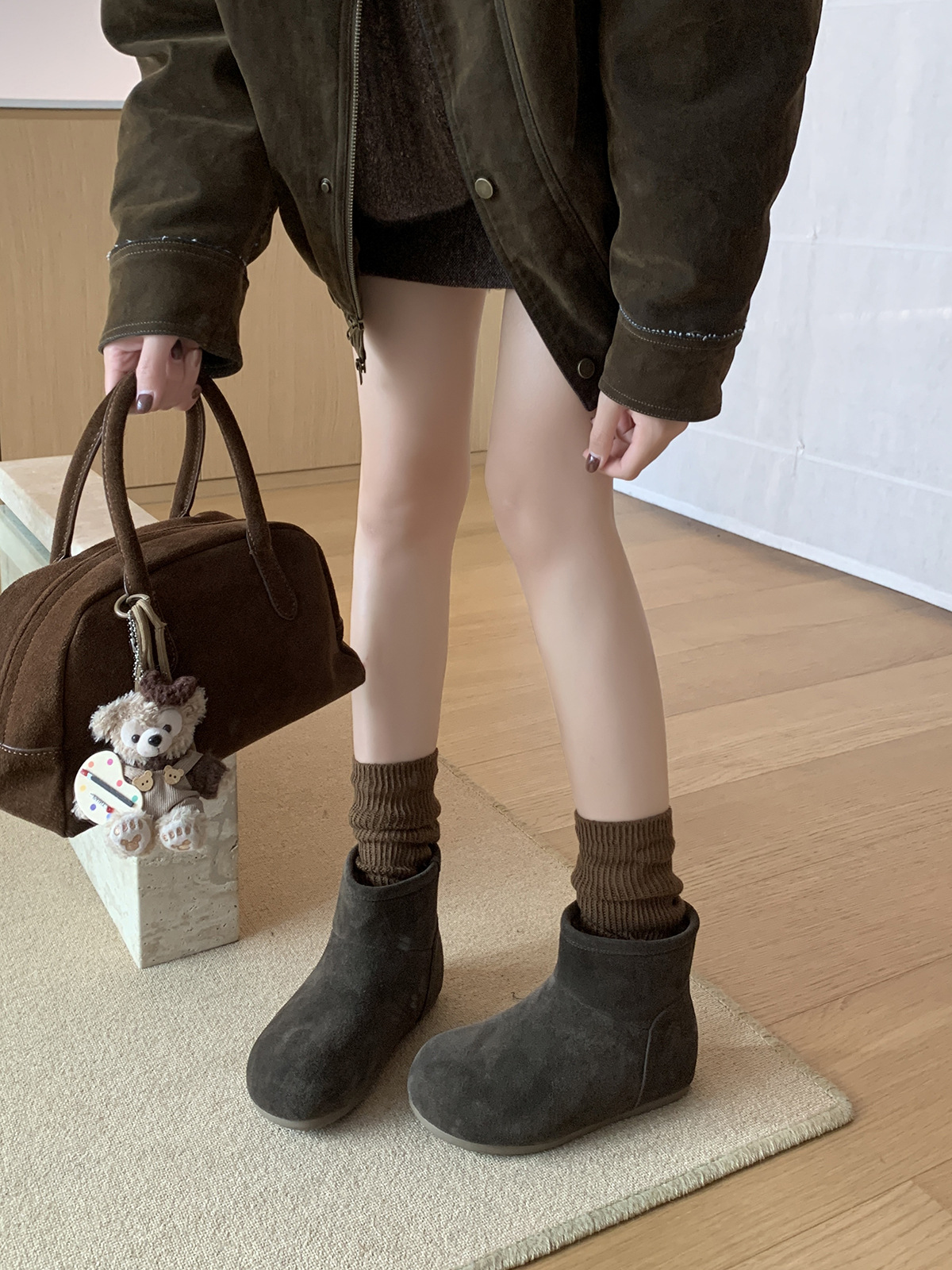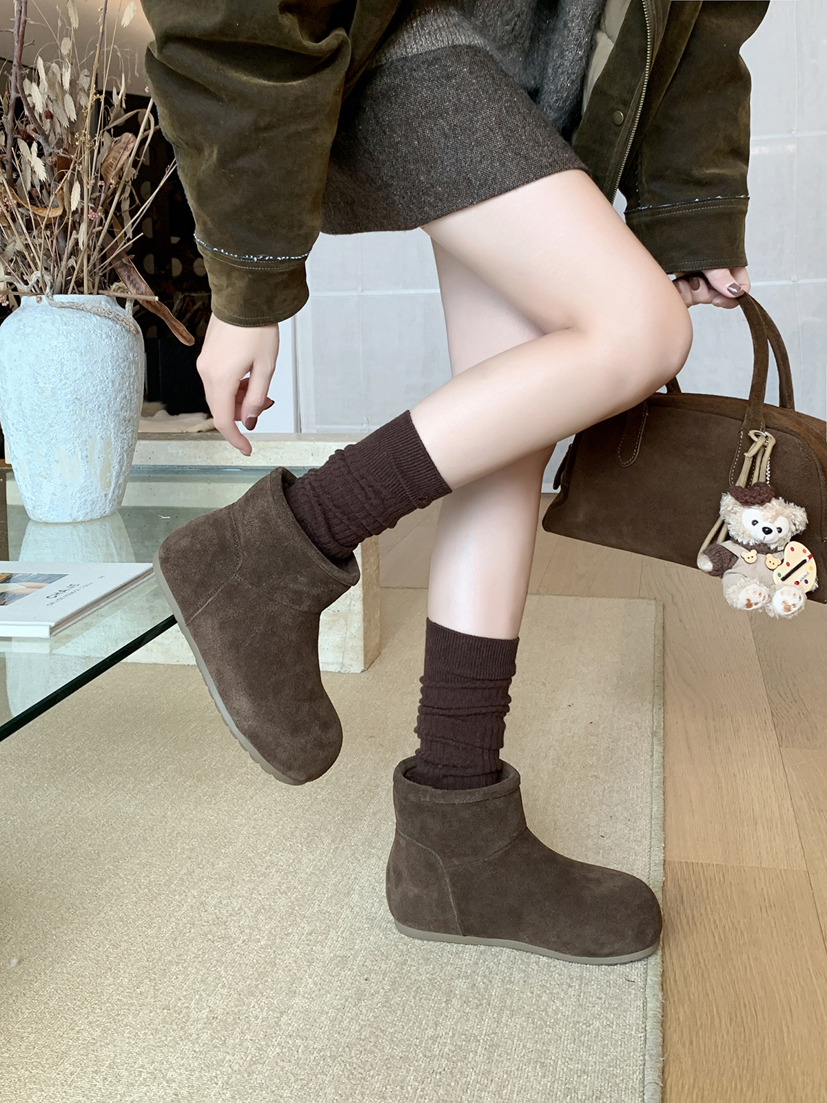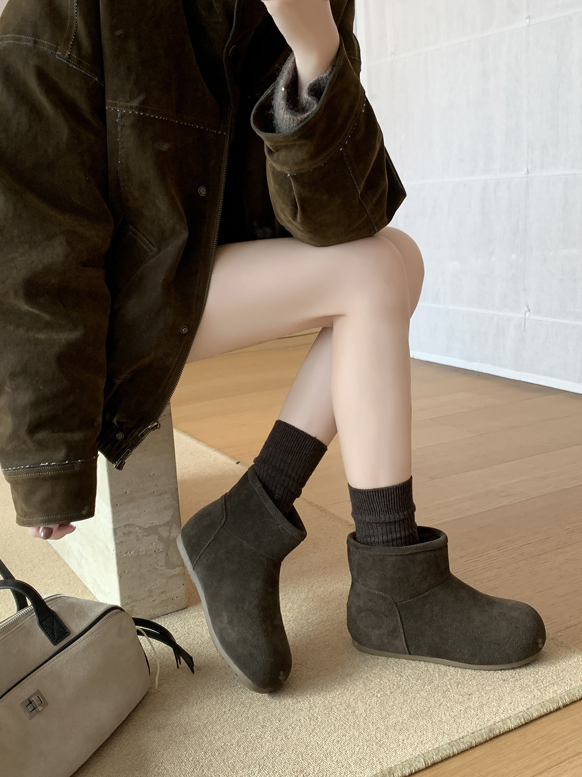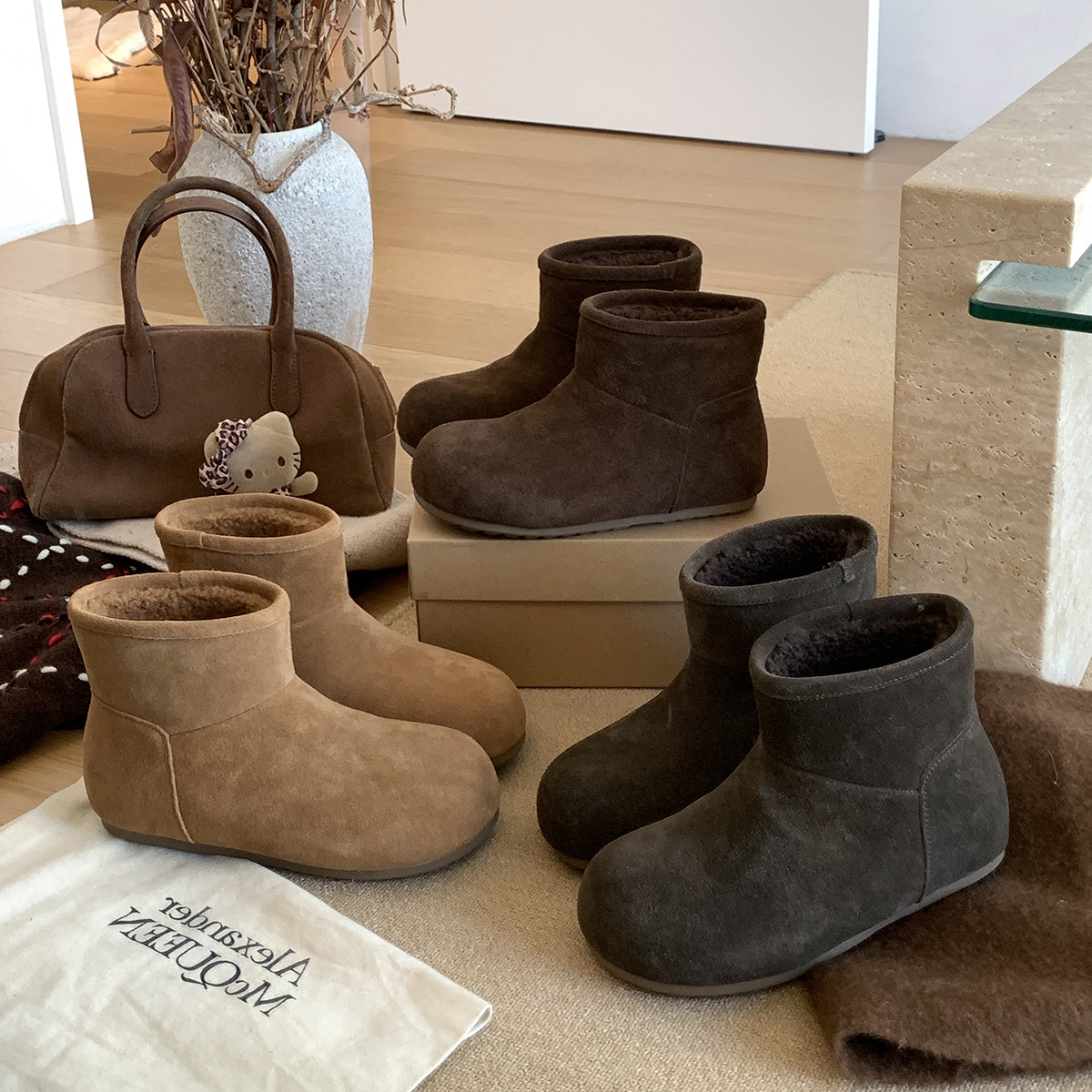 MARCO&JOYCE 여성용 스노우 부츠 겨울 신작 플러스 벨벳 누벅 가죽 플랫 버켄스탁 숏부츠 원레그 마틴 부츠