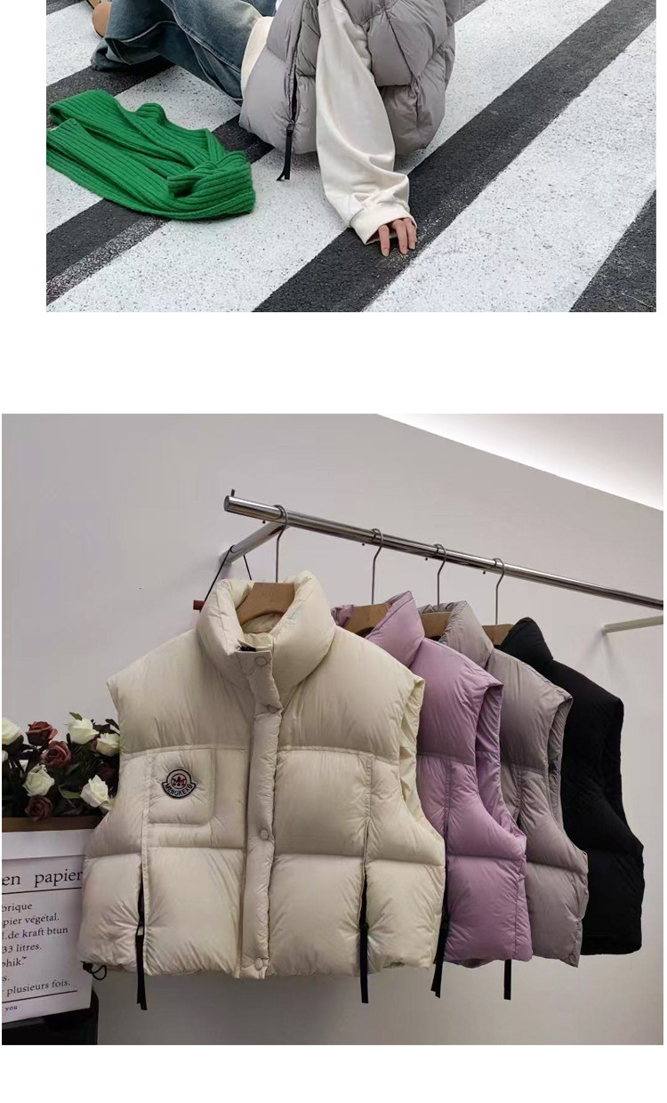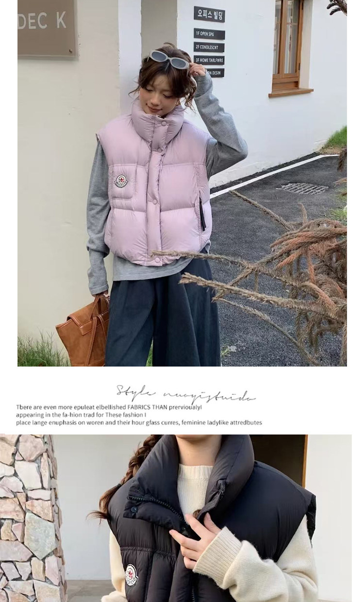 유럽 스테이션 2025 핫 스타일 90 화이트 오리 다운 조끼 다운 재킷 여성 짧은 패션 스탠드 칼라 조끼 조끼 재킷 유행