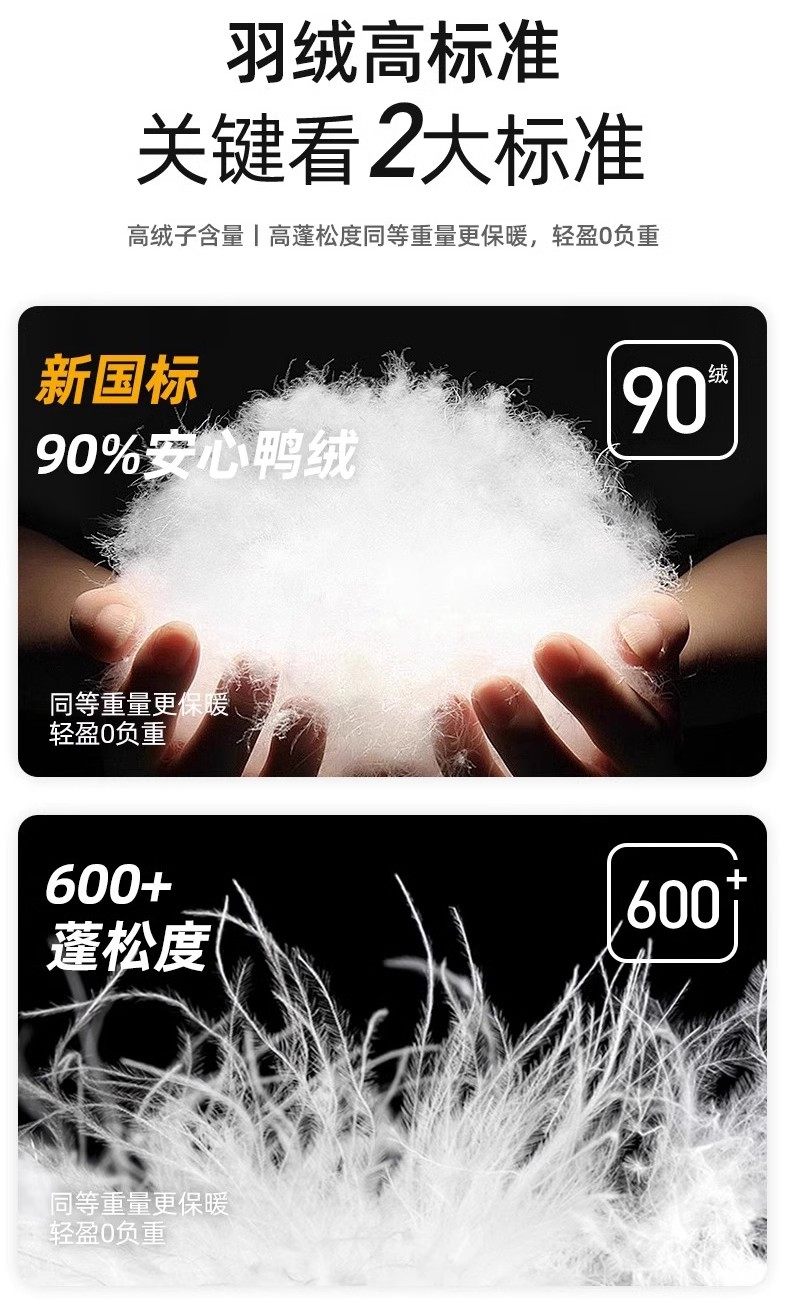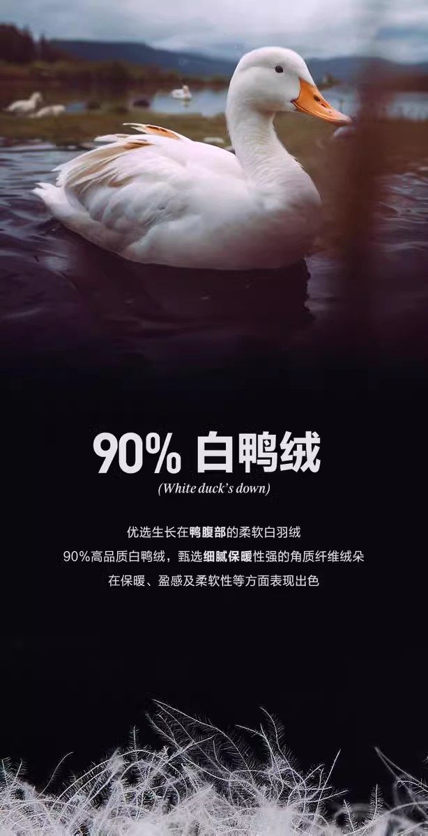 | 含绒量 | 86%~90% | 填充物 | 白鸭绒 |