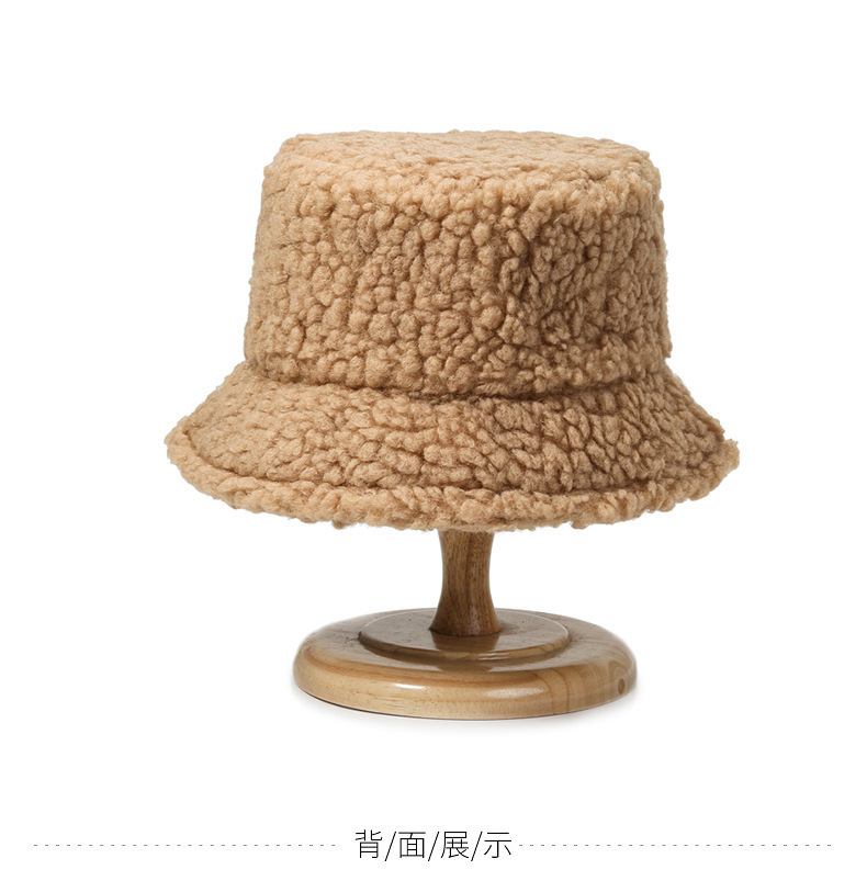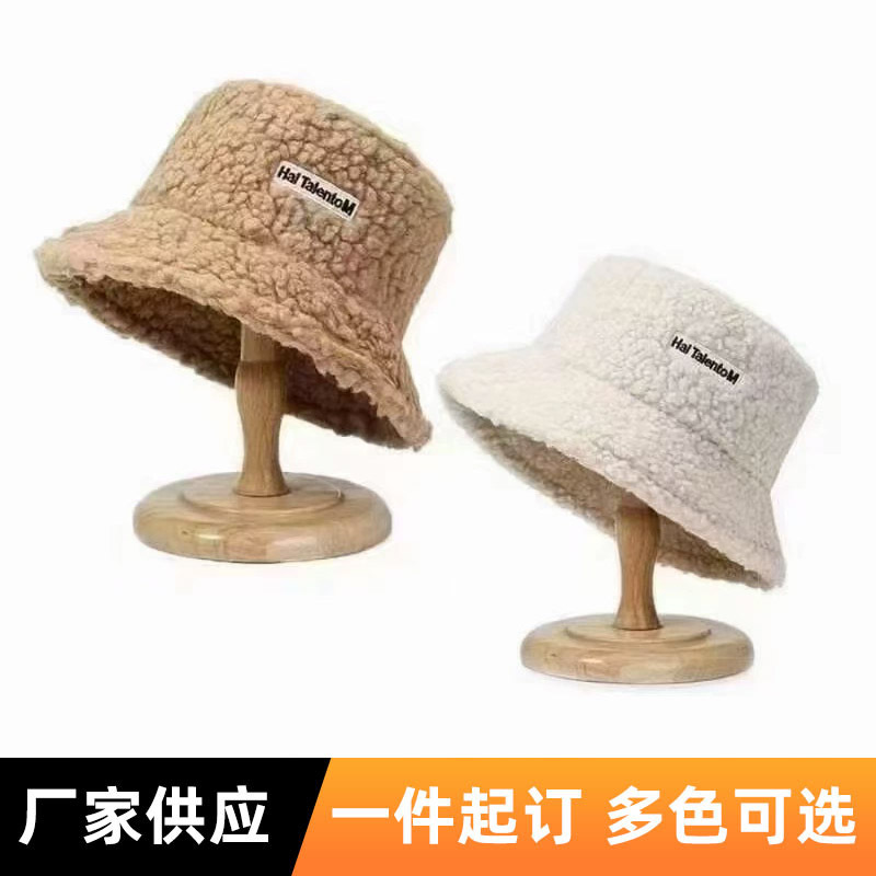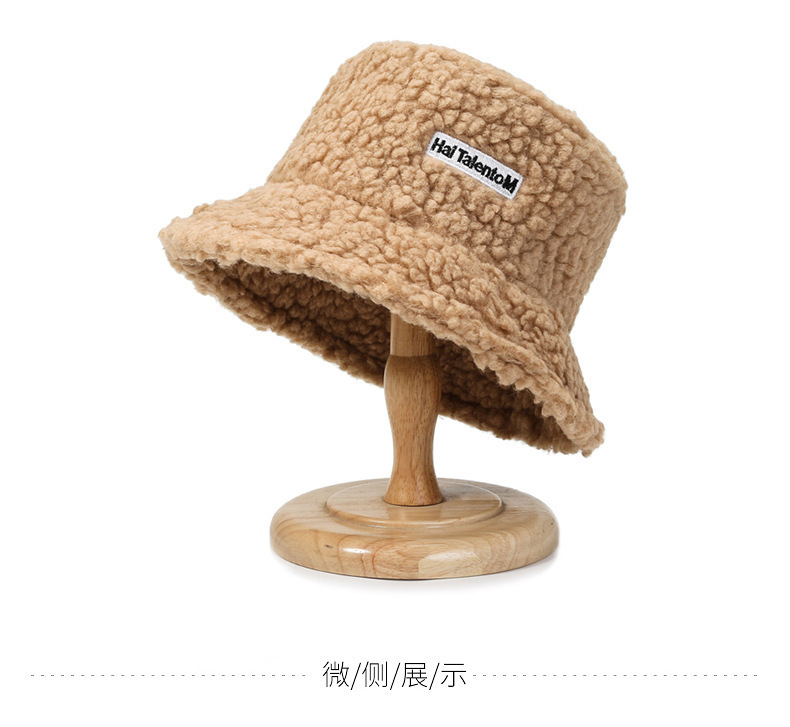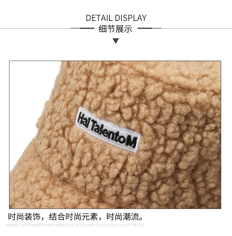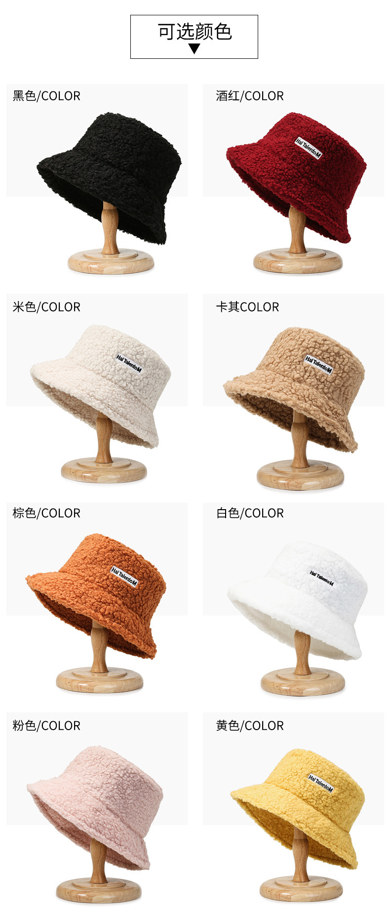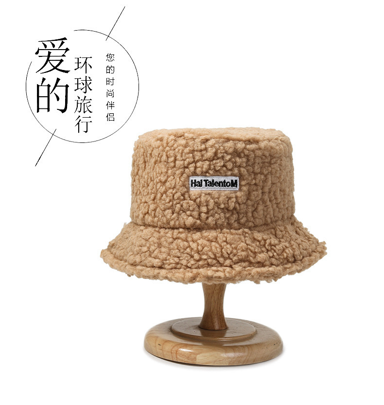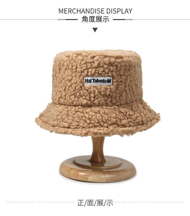 2025 새로운 겨울 플러시 어부 모자, 패셔너블하고 단순하며 단색 영어 라벨 여성 따뜻한 분지 모자