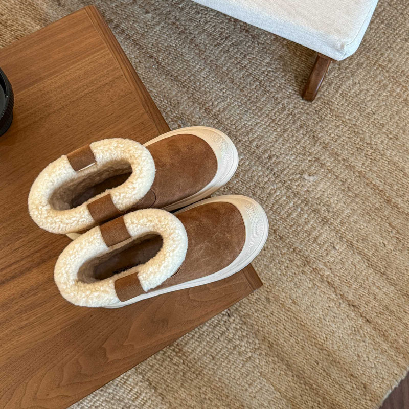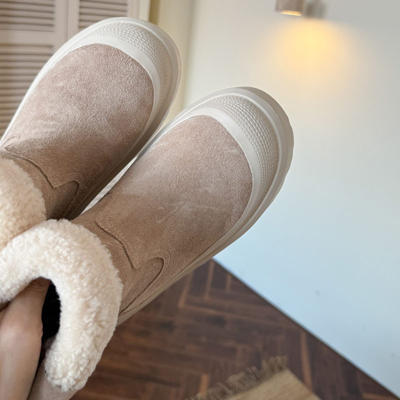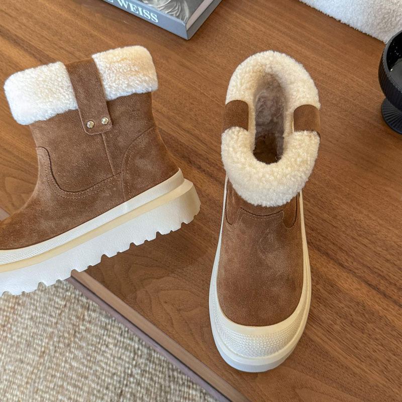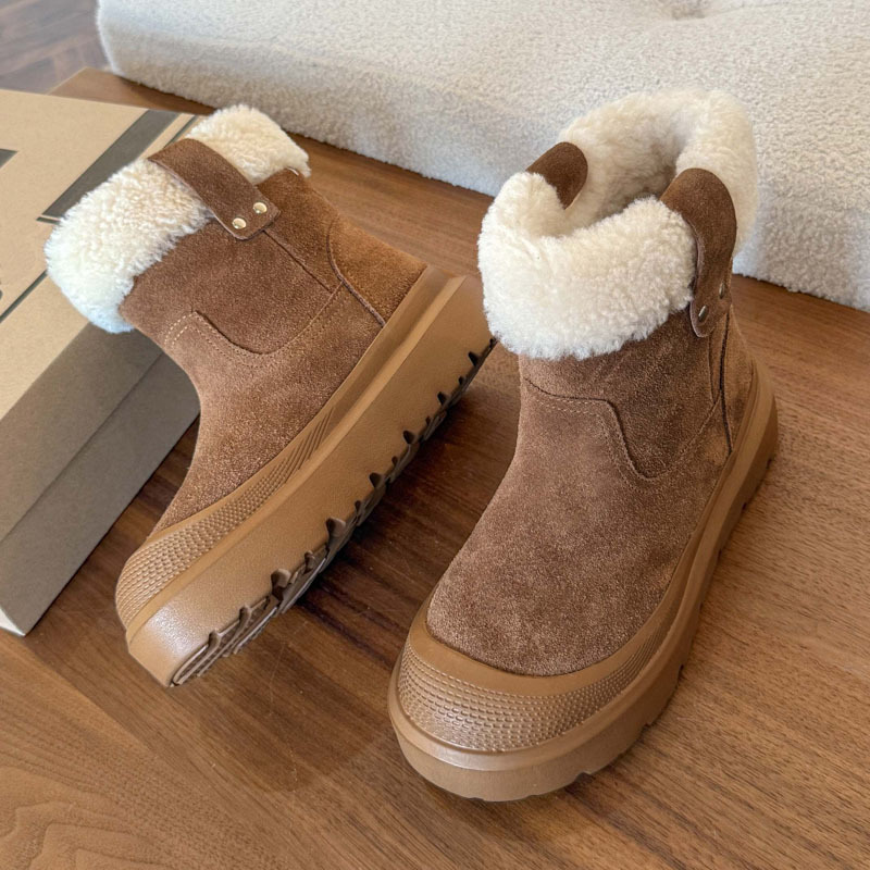 Dongguan 고급 겨울 새 모피 통합 두꺼운 밑창 캐주얼 스노우 부츠 여성용 다용도 울 따뜻한 슬립 온 코튼 슈즈