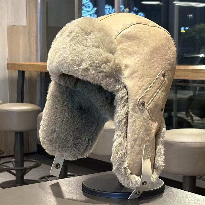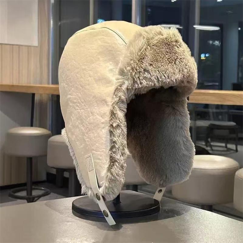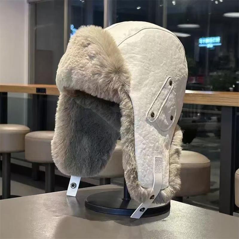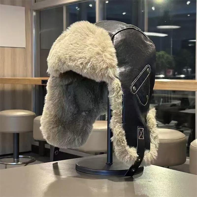 남성과 여성을 위한 겨울 가죽 따뜻한 모자, 야외 사이클링, 방한, 방수, 두꺼운 귀 보호 모자, 동북 스키 비행 모자