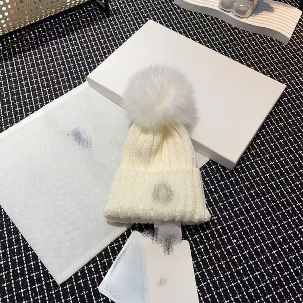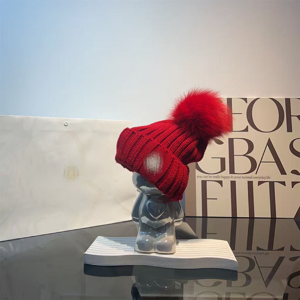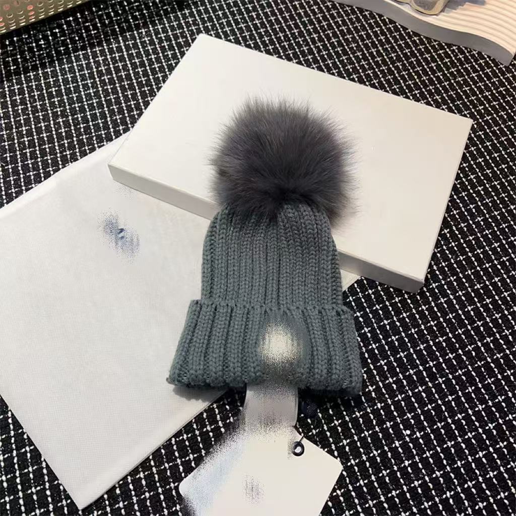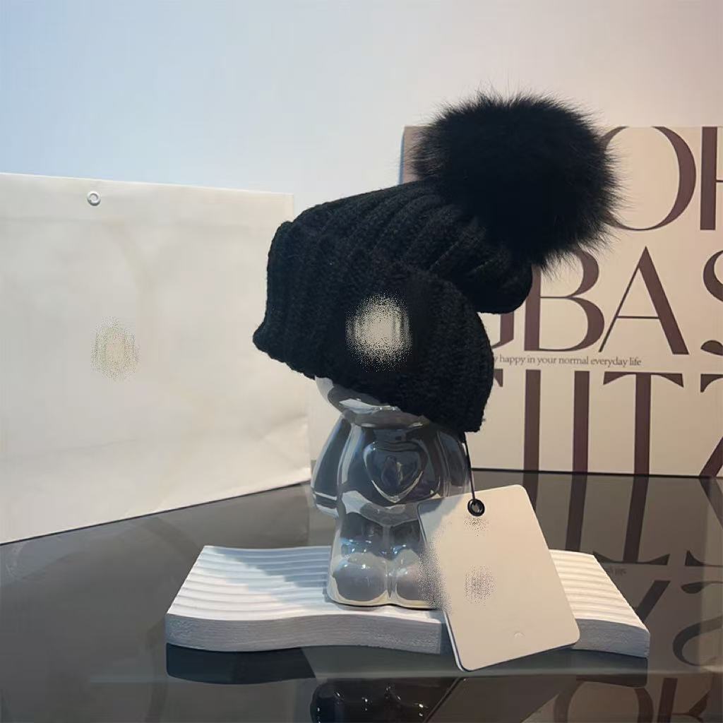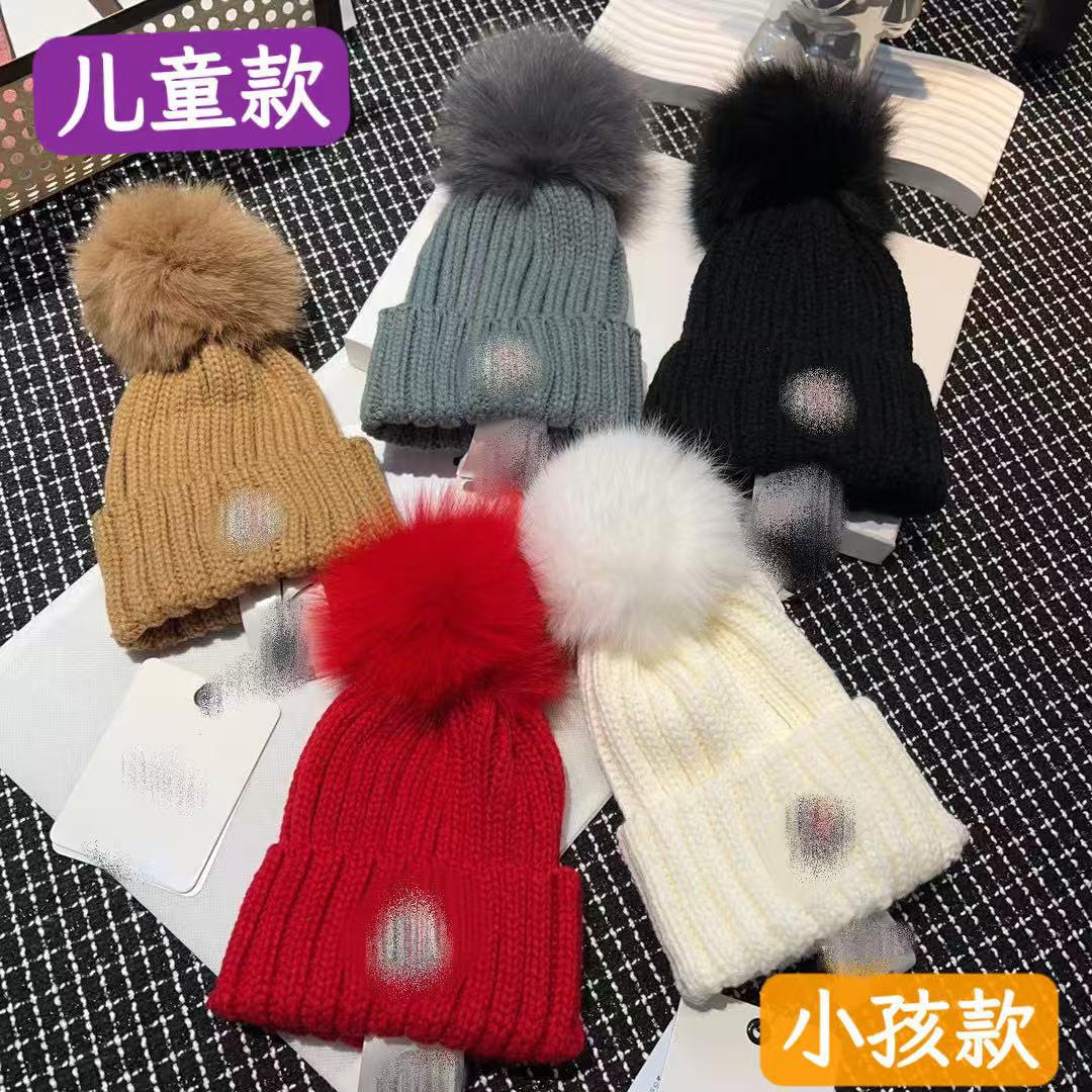 프랑스 겨울 m 라벨 어린이 모피 볼 니트 모자 겨울 따뜻한 부모-자식 모자 귀 보호 토끼 모피 모직 모자