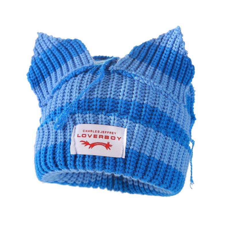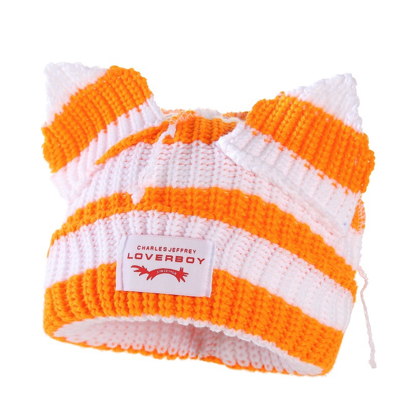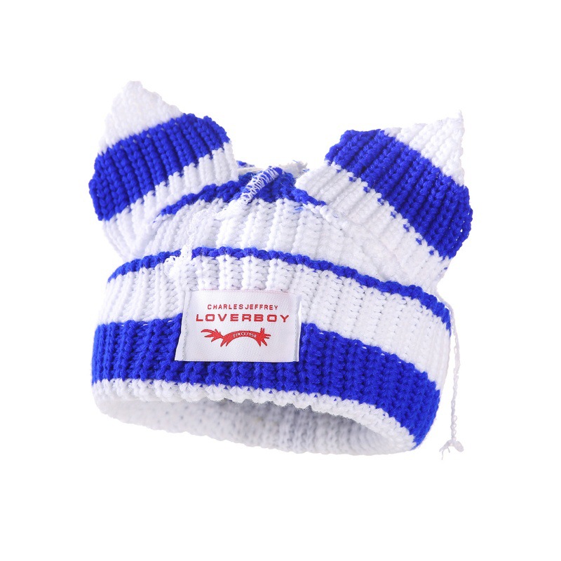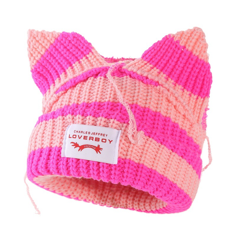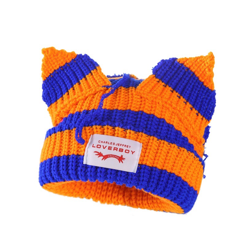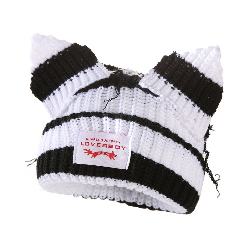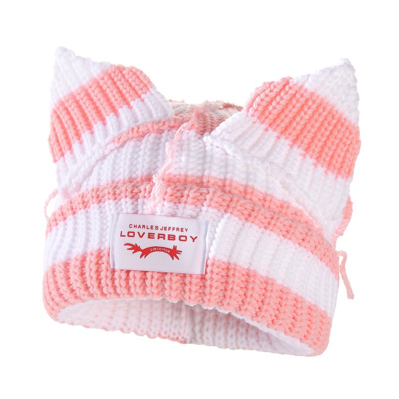 새로운 줄무늬 고양이 귀 양모 모자 따뜻하고 통기성 가을, 겨울 니트 모자 패션 트렌드 두꺼운 니트 모자