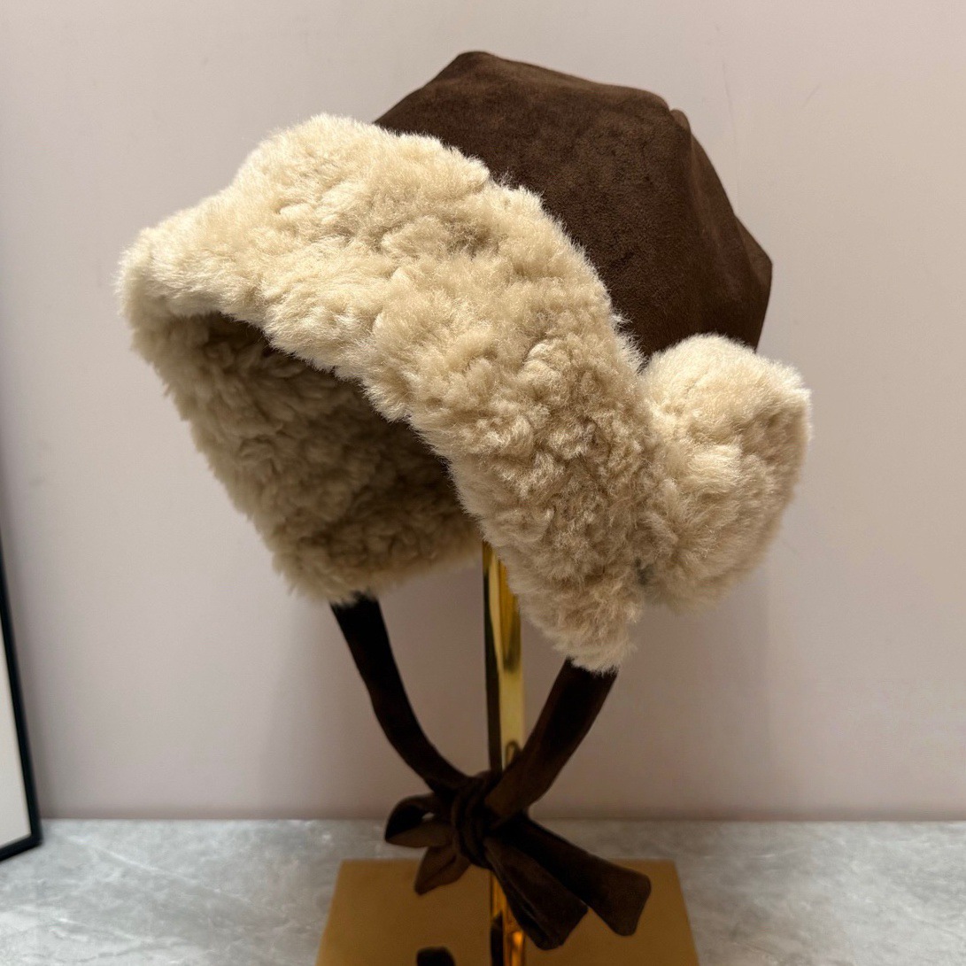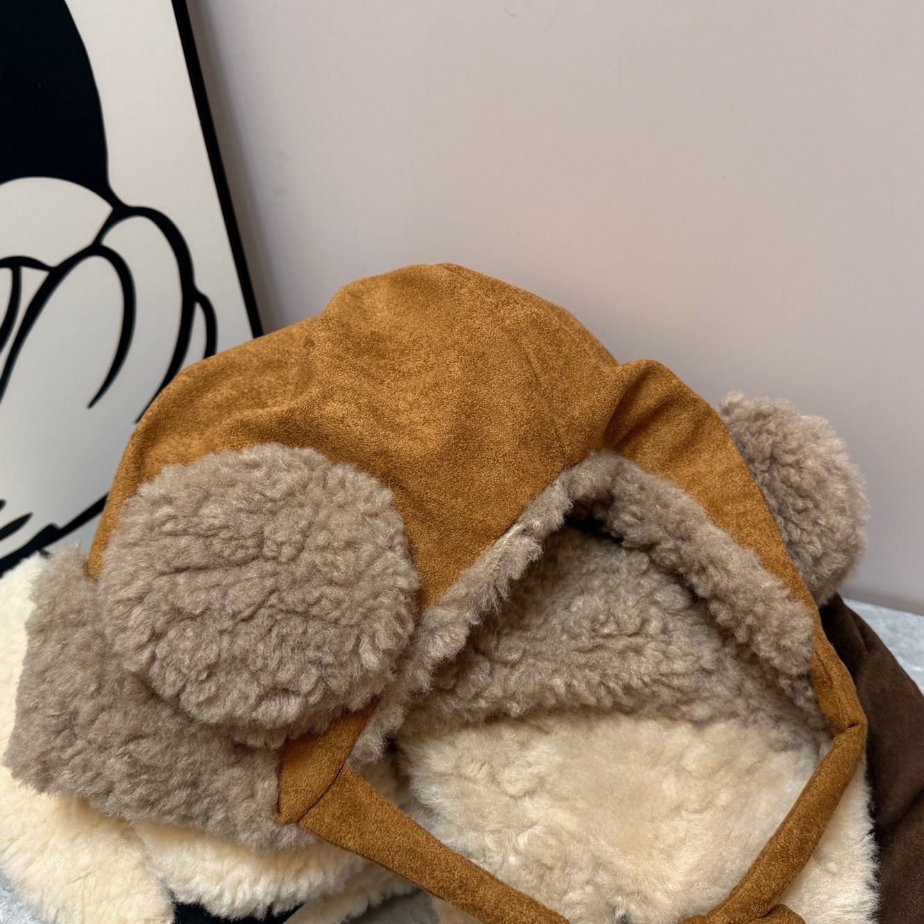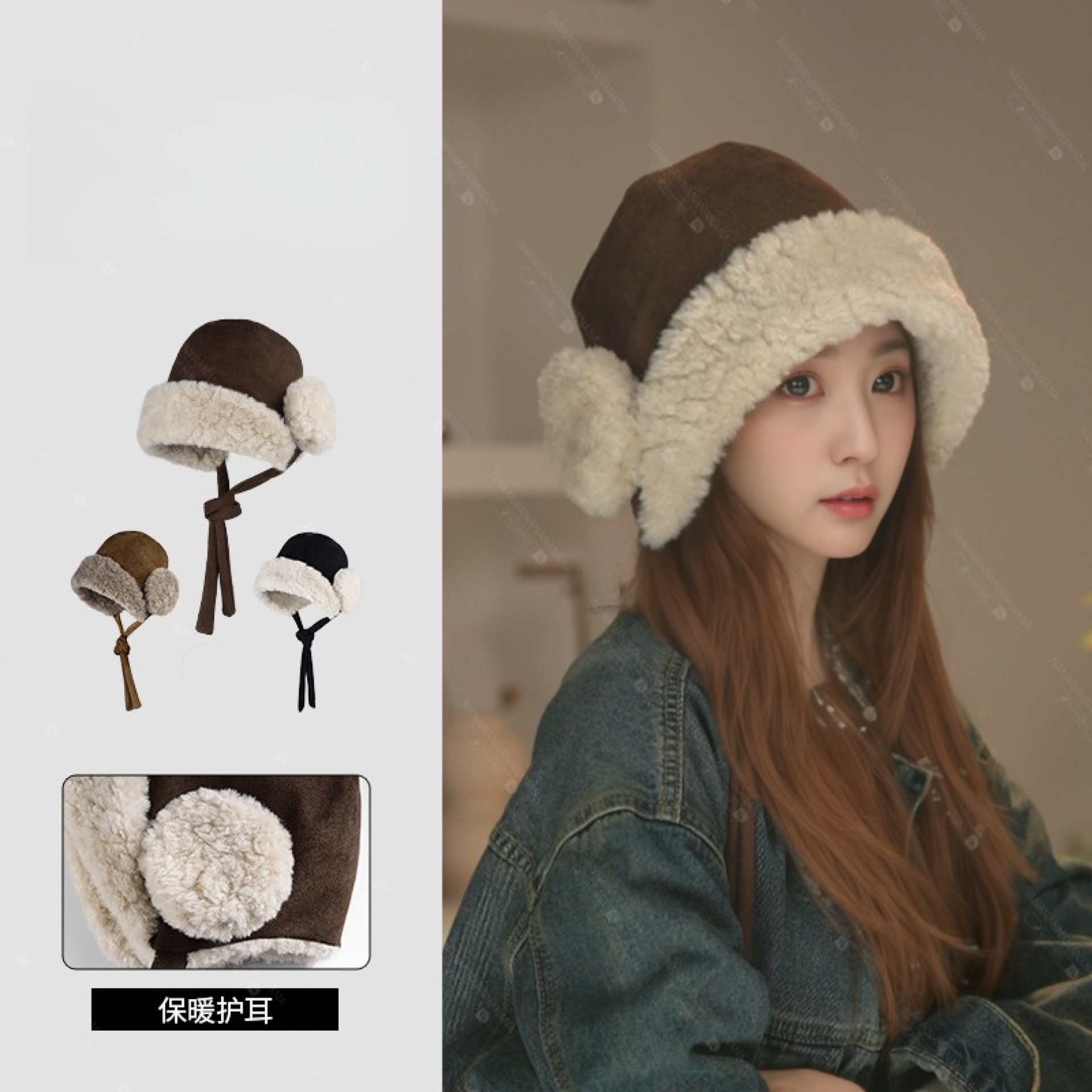 여성을 위한 새로운 한국식 사슴가죽 벨벳 어부 모자, 패셔너블한 레이스업 가을 겨울 따뜻한 플러스 벨벳 모직 모자, 얼굴이 보이는 작은 방한 모자, 트렌디함