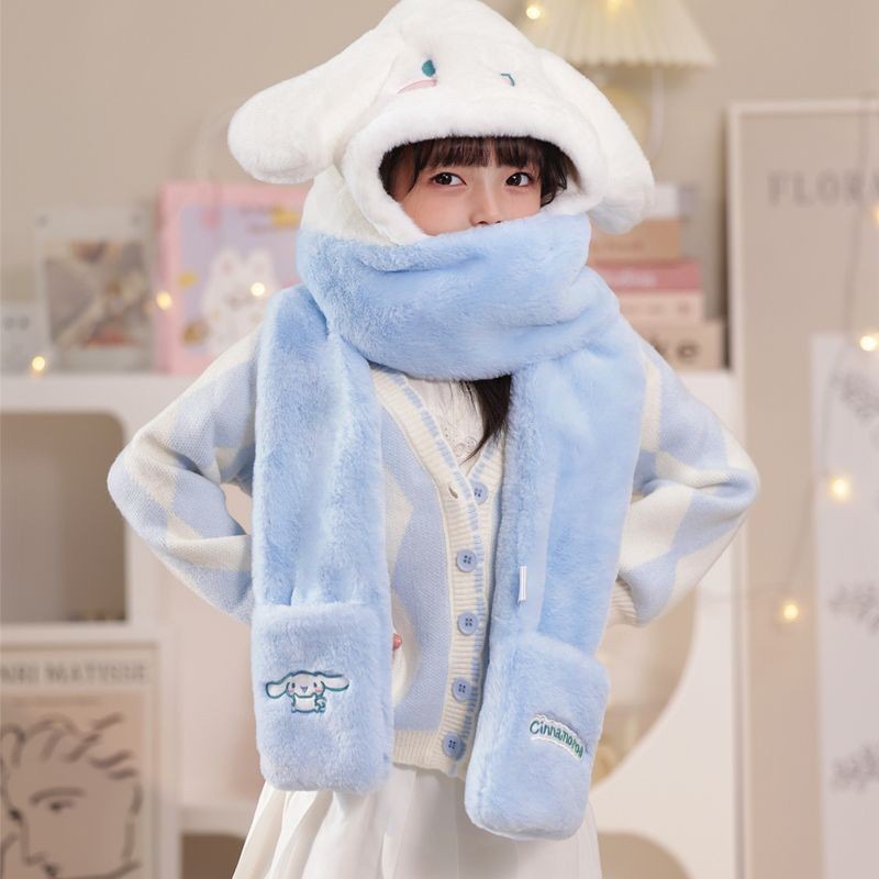 여성을위한 귀여운 곰 모자 가을, 겨울 3 피스 따뜻한 플러시 모자 스카프 장갑 3-in-one 모자