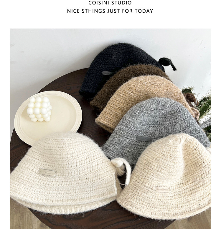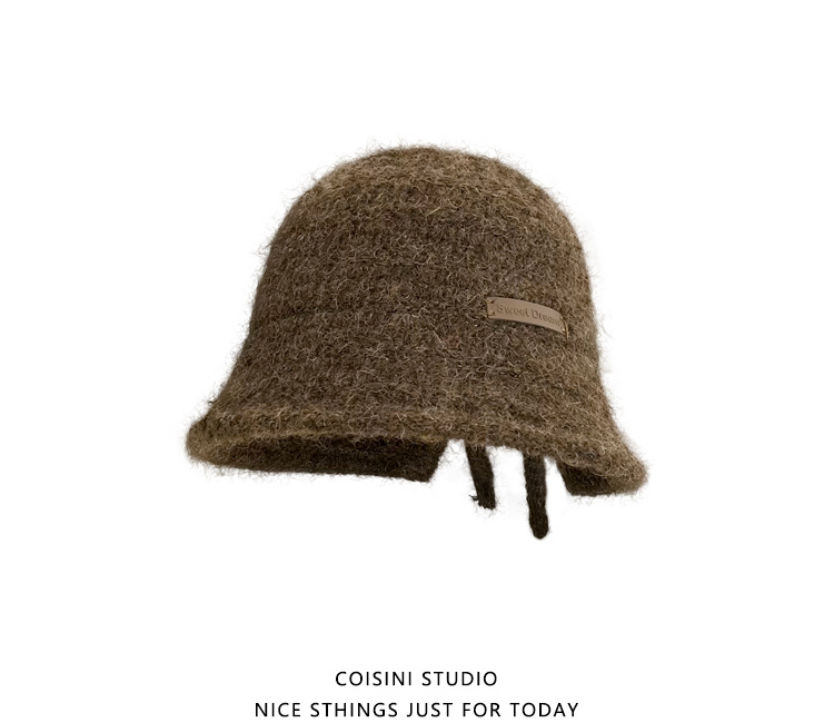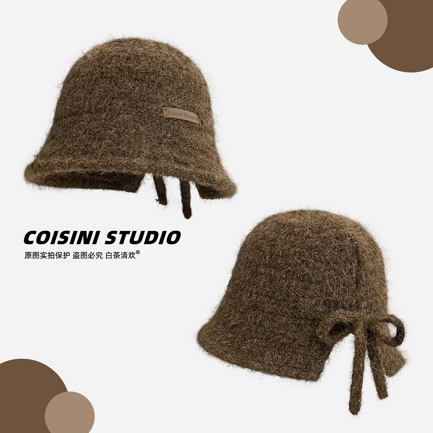 가을 겨울 여성용 메일라드 레트로 니트 버킷햇, 따뜻하고 방한, 얼굴이 보이는 작은 버킷햇, 분지모자, 트렌디한 모직모자