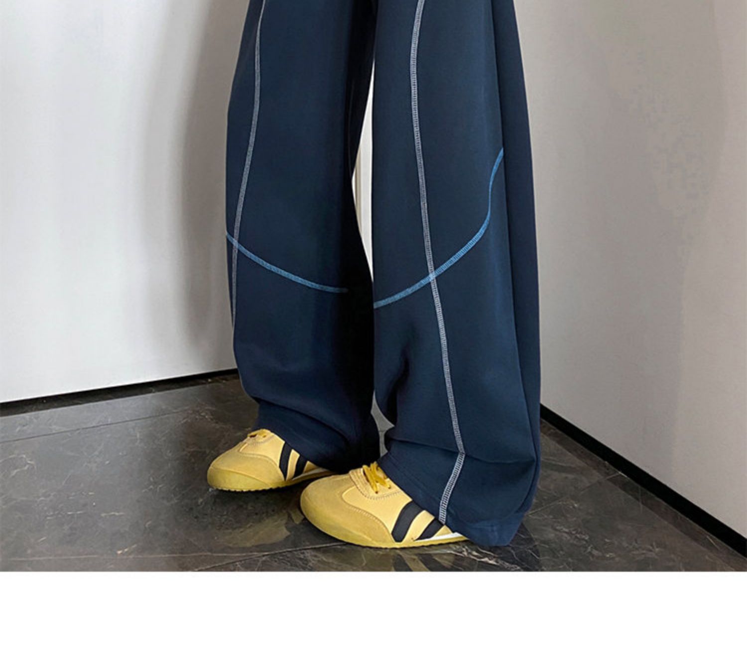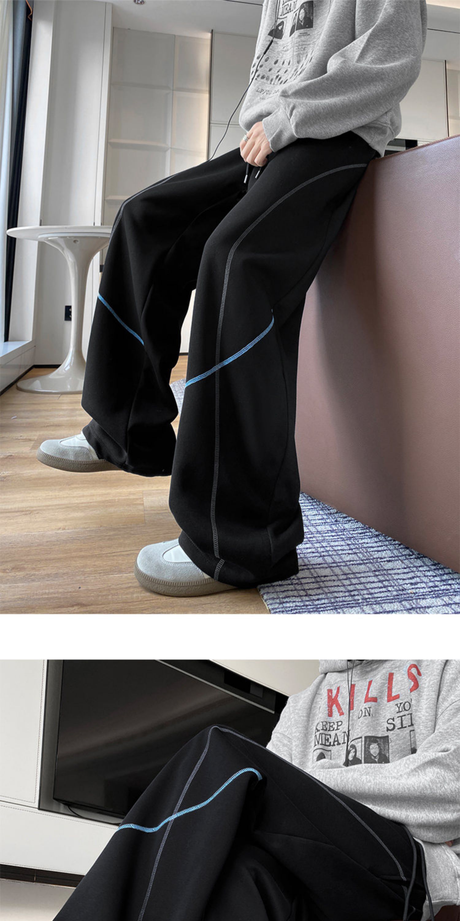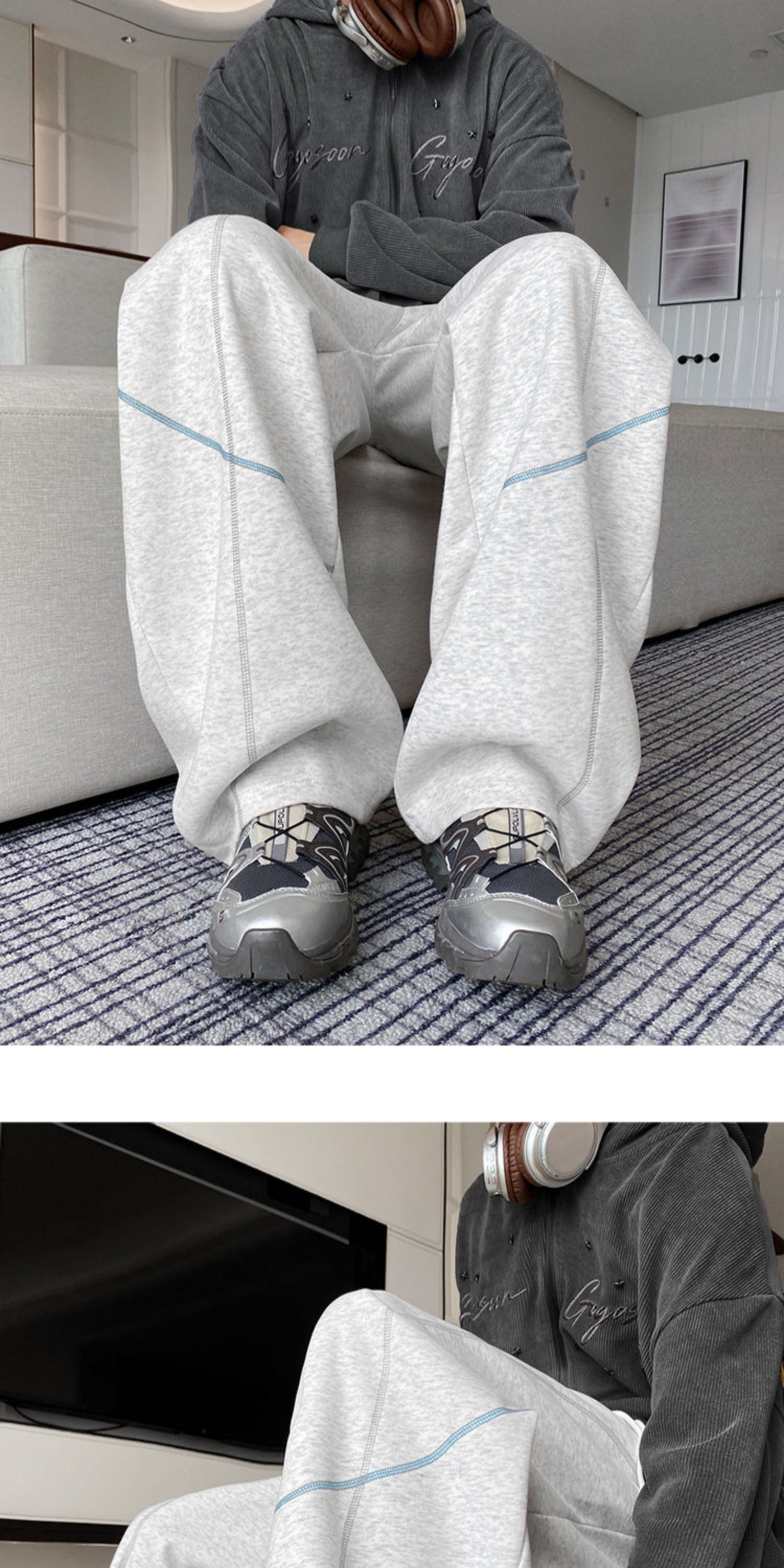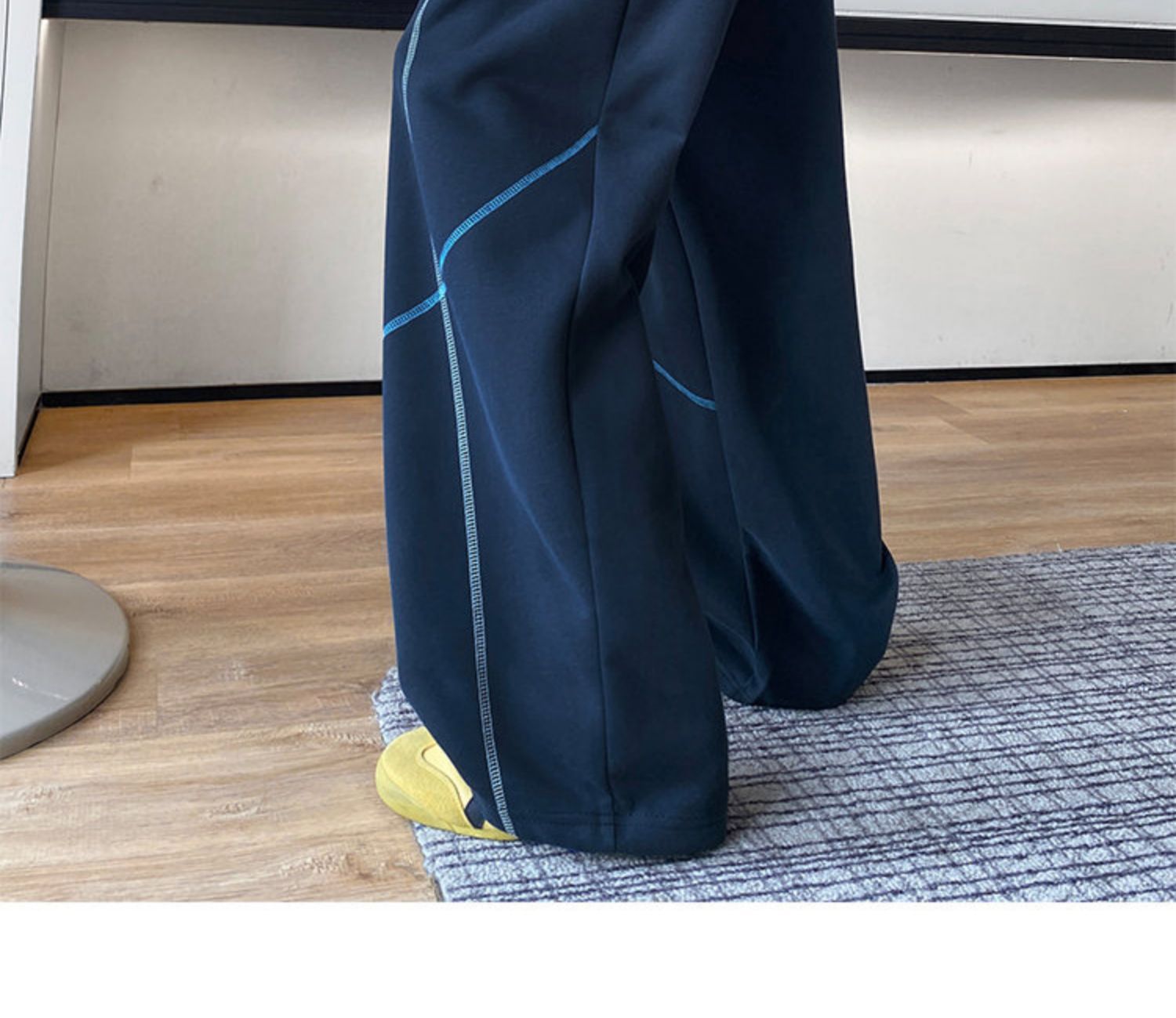 가을 남녀공용 아메리칸 네이비 블루 탑스티치 세이버 스웨트팬츠, 편안하고 키가 큰 캐주얼 팬츠, 루즈한 스포츠 와이드 팬츠