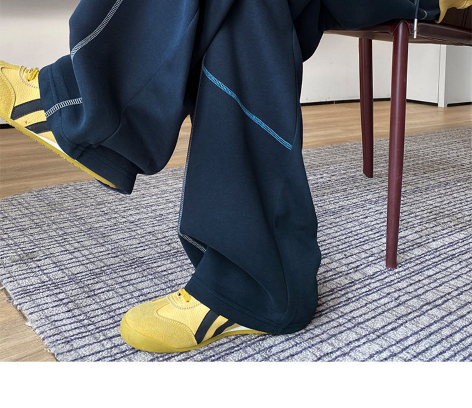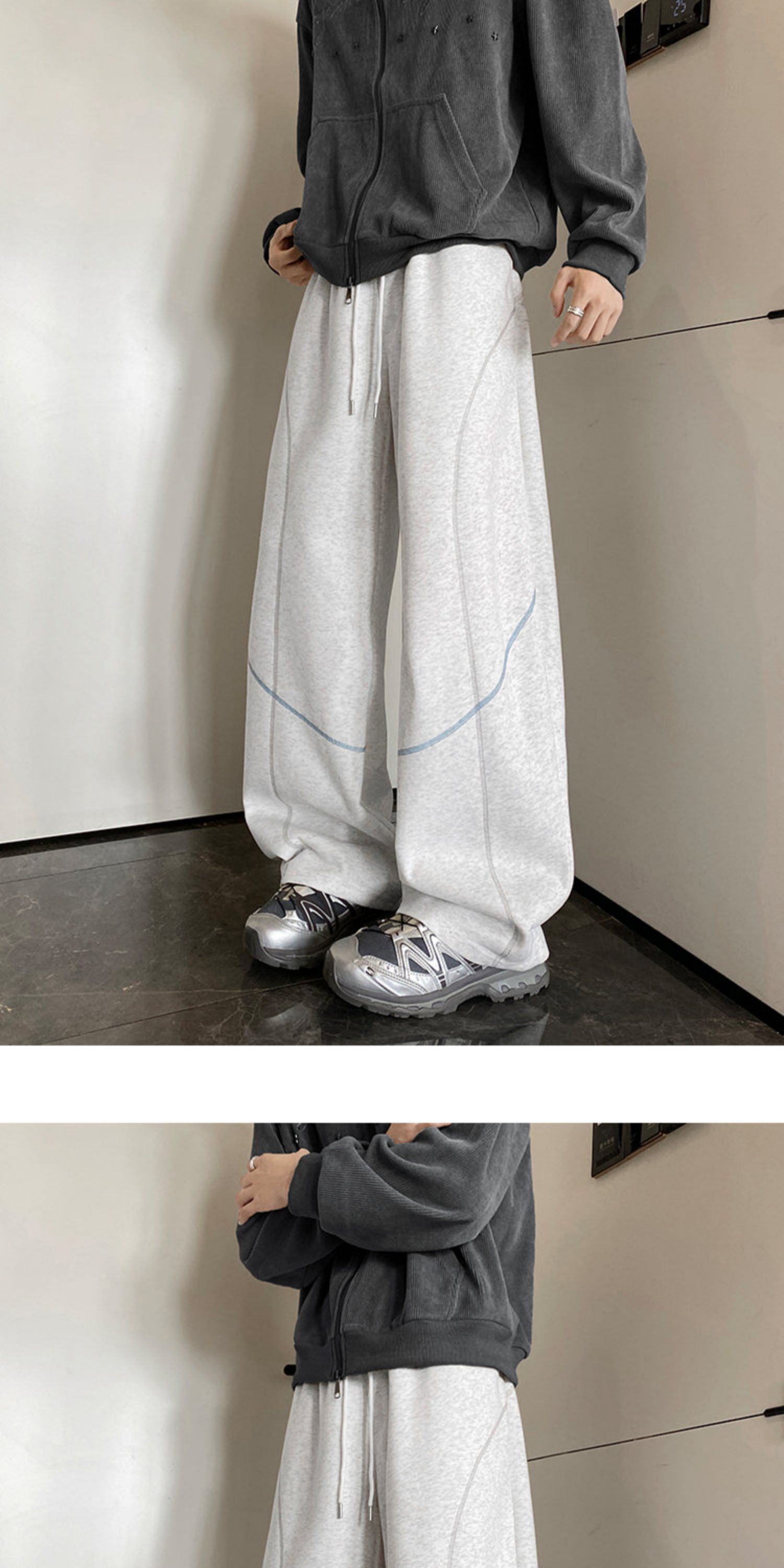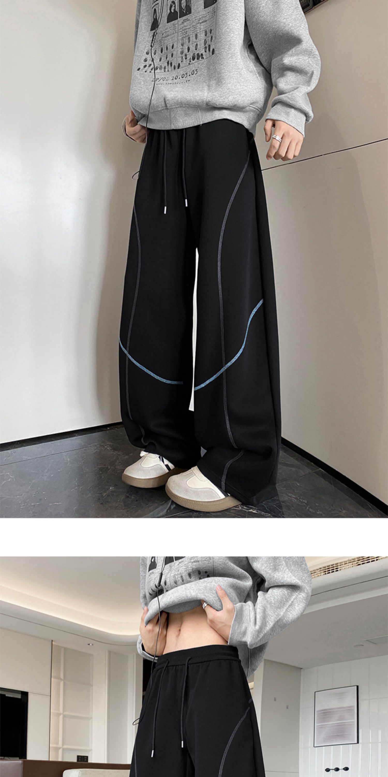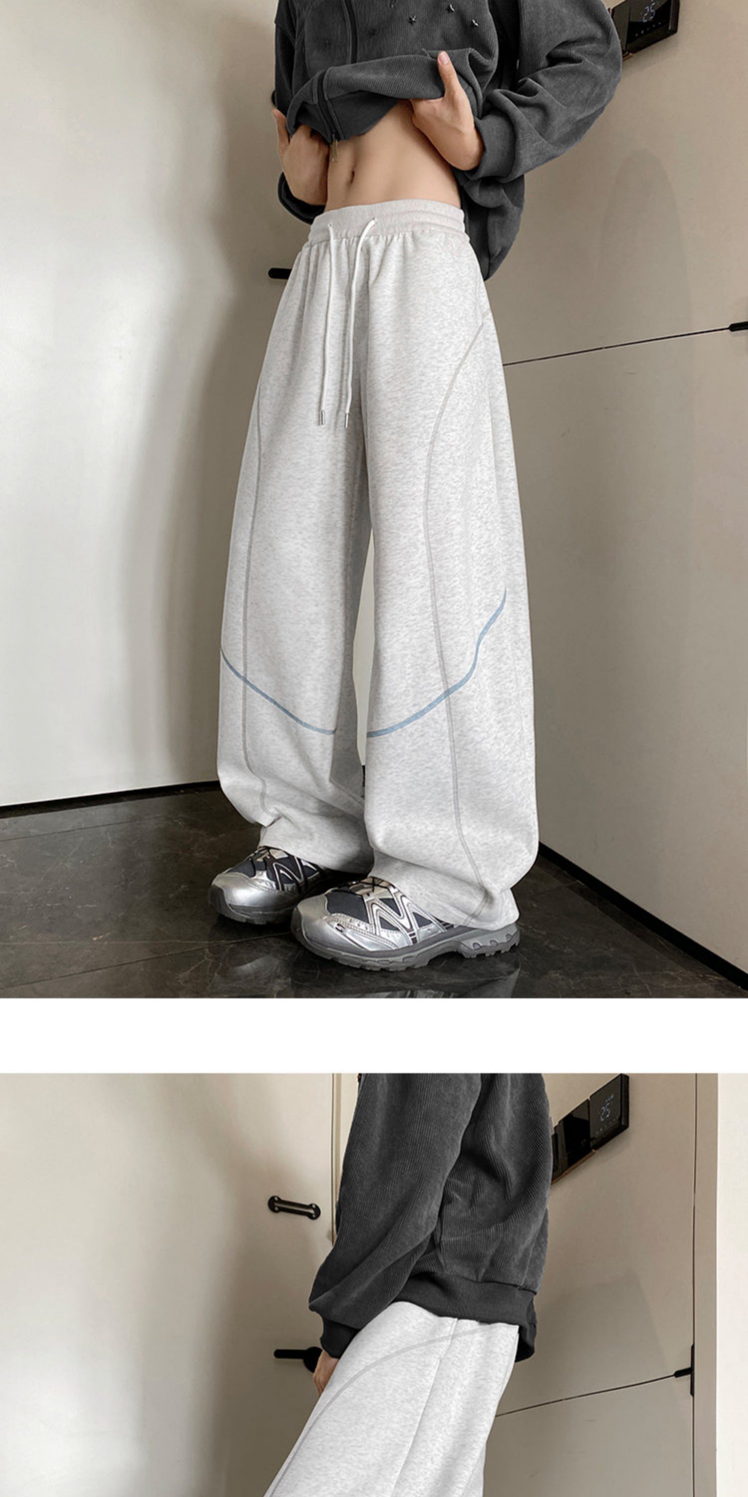 가을 남녀공용 아메리칸 네이비 블루 탑스티치 세이버 스웨트팬츠, 편안하고 키가 큰 캐주얼 팬츠, 루즈한 스포츠 와이드 팬츠