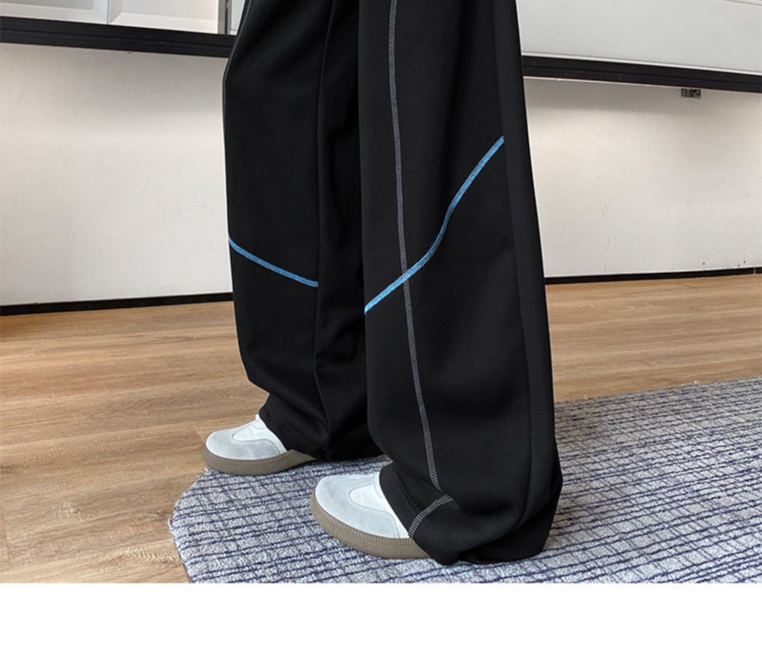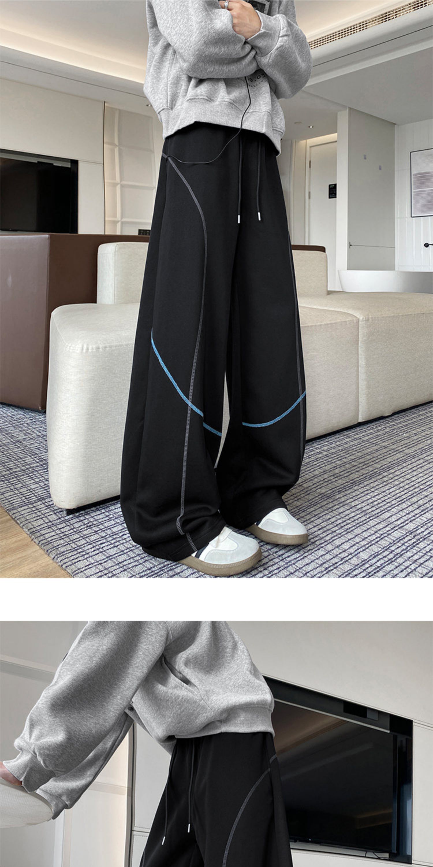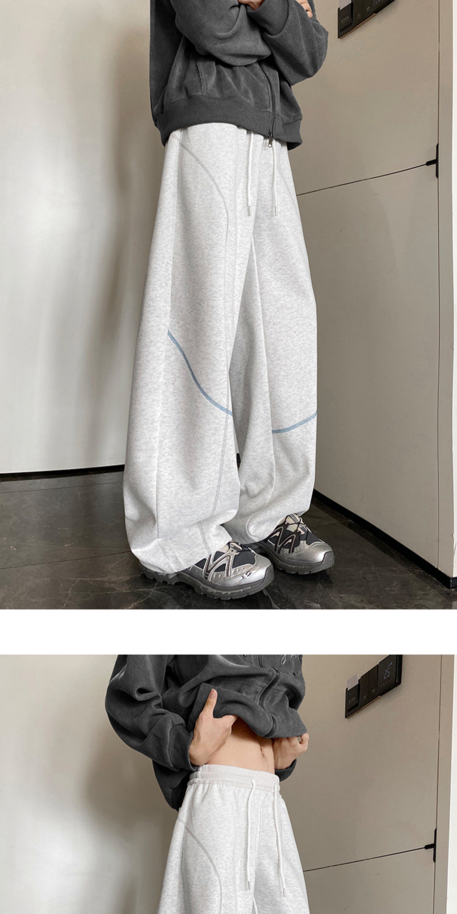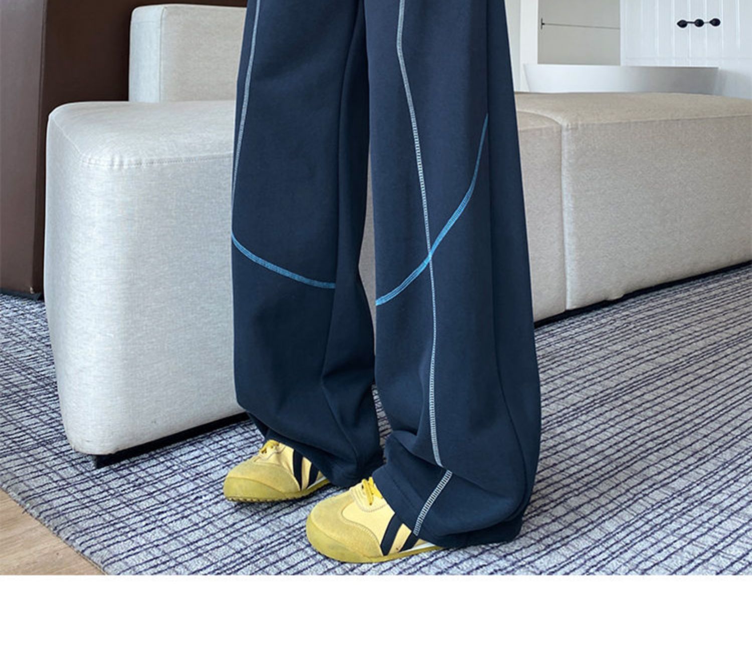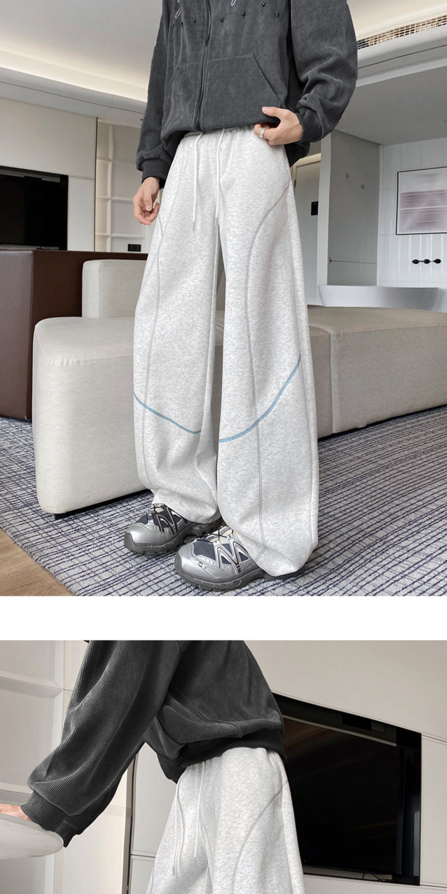 가을 남녀공용 아메리칸 네이비 블루 탑스티치 세이버 스웨트팬츠, 편안하고 키가 큰 캐주얼 팬츠, 루즈한 스포츠 와이드 팬츠