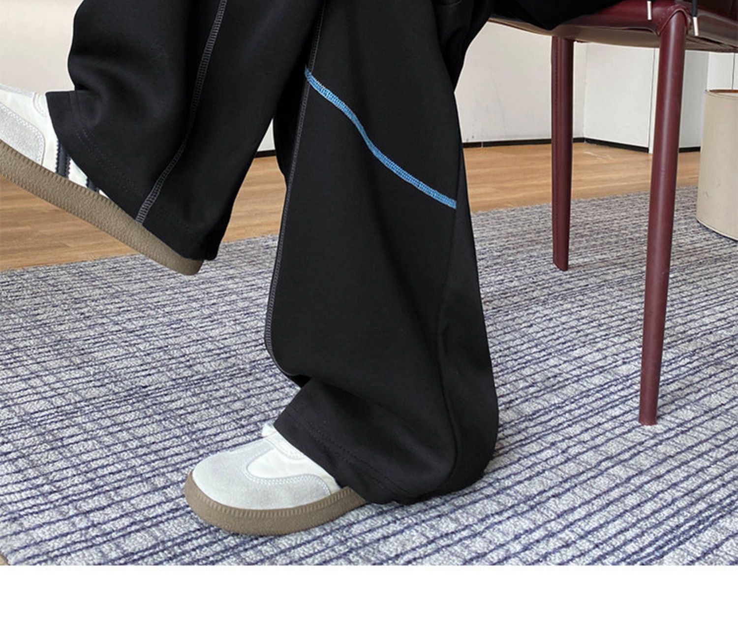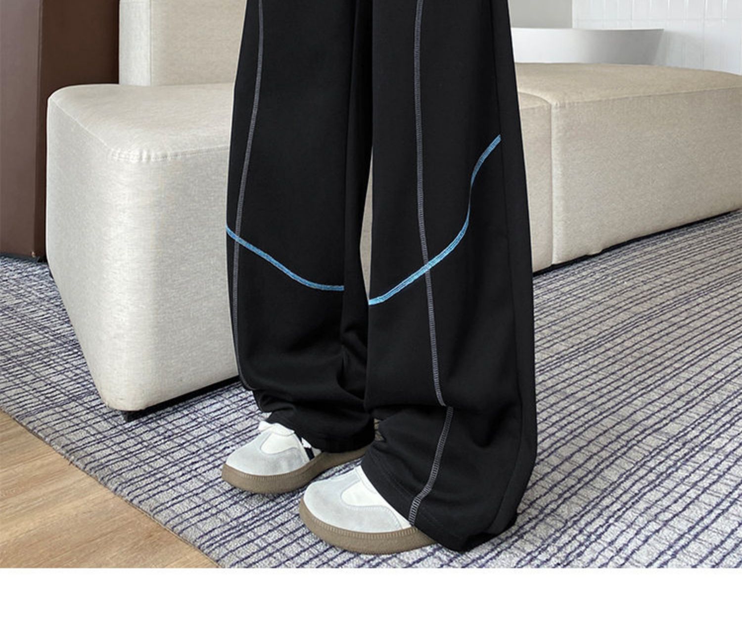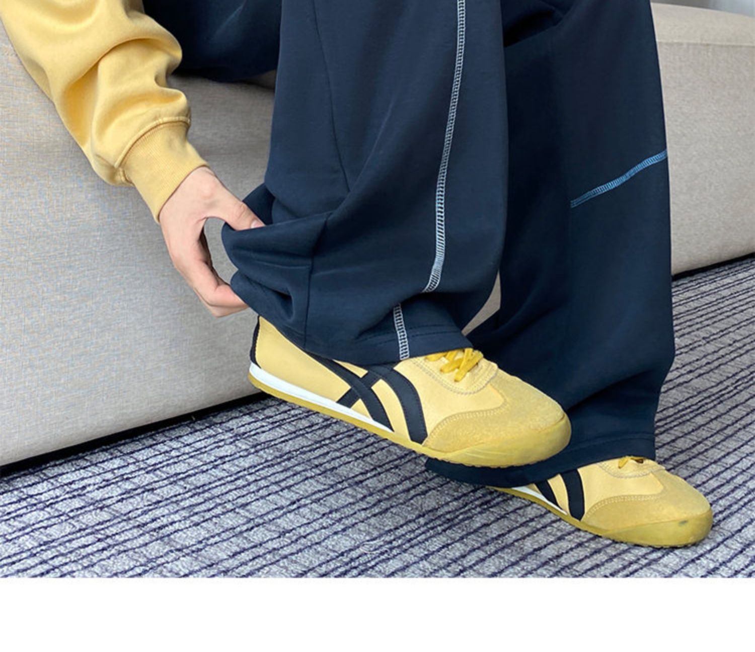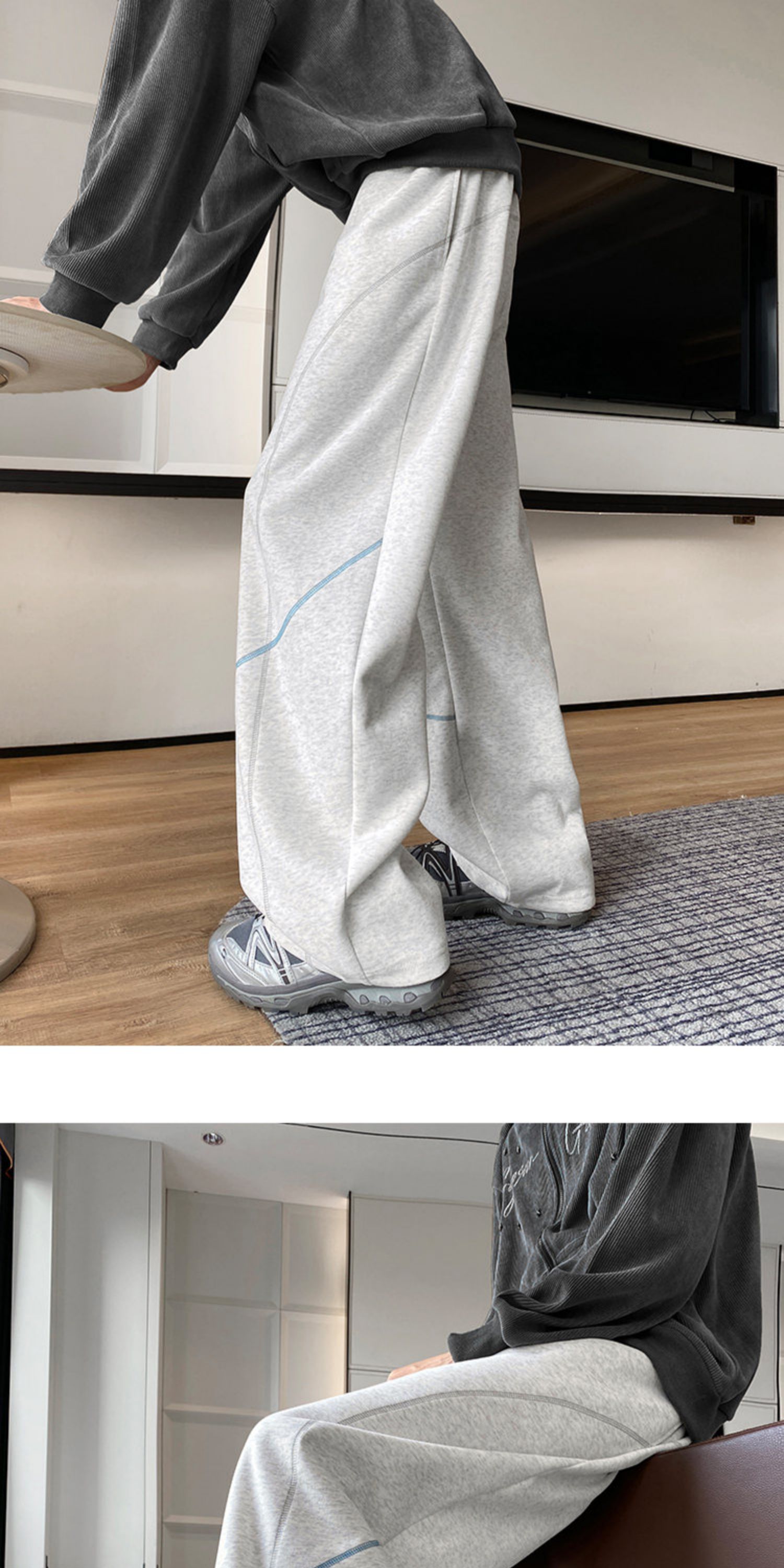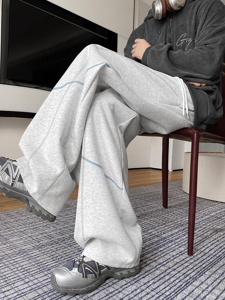 가을 남녀공용 아메리칸 네이비 블루 탑스티치 세이버 스웨트팬츠, 편안하고 키가 큰 캐주얼 팬츠, 루즈한 스포츠 와이드 팬츠