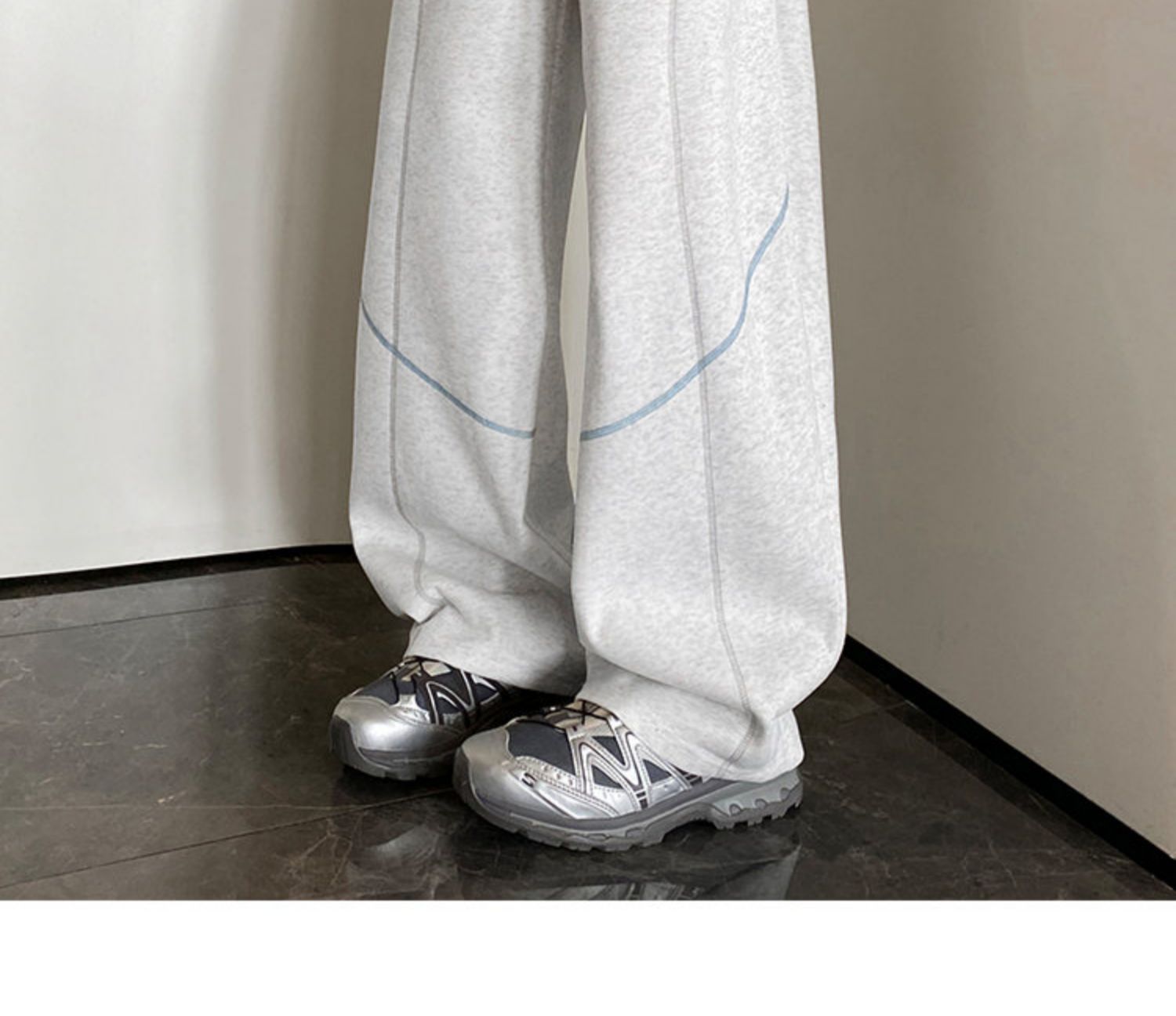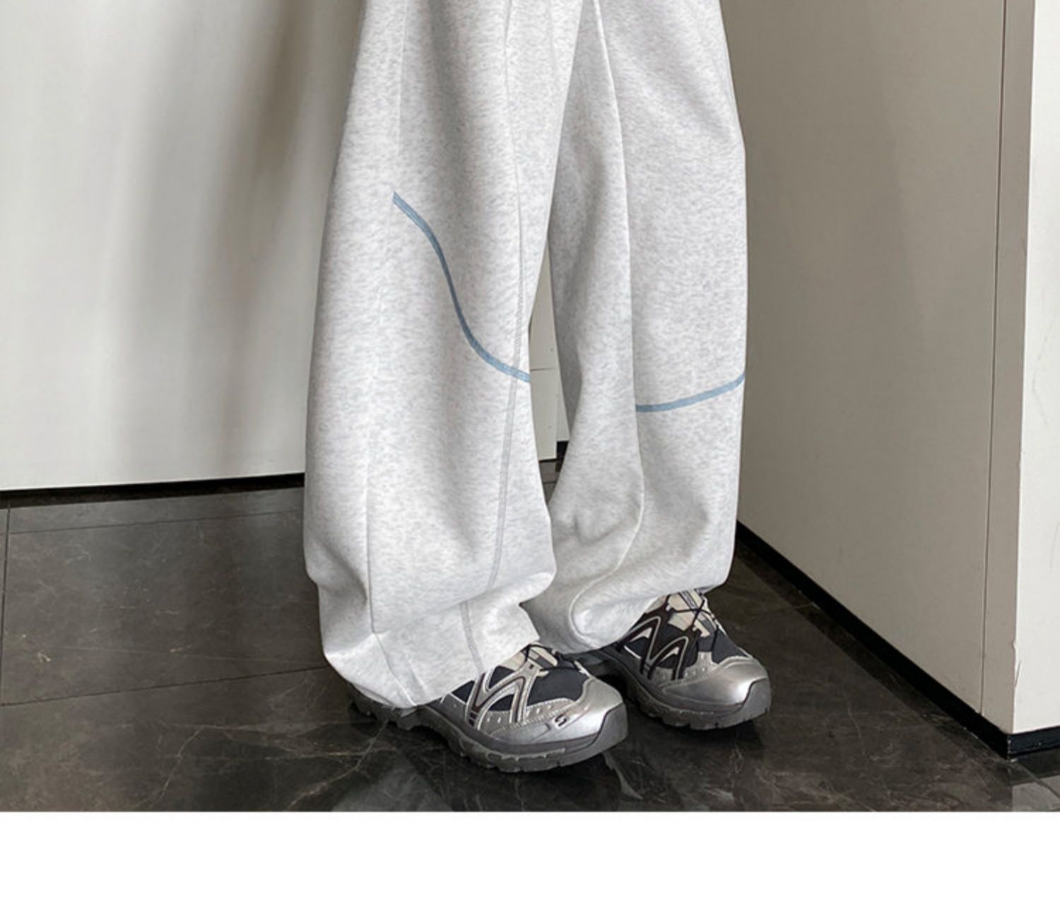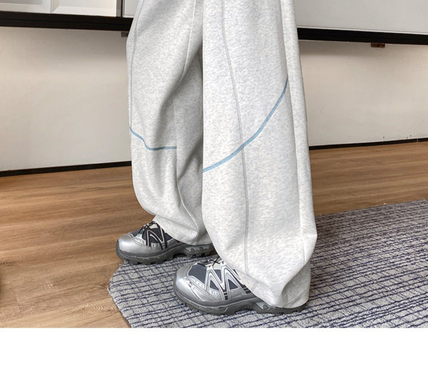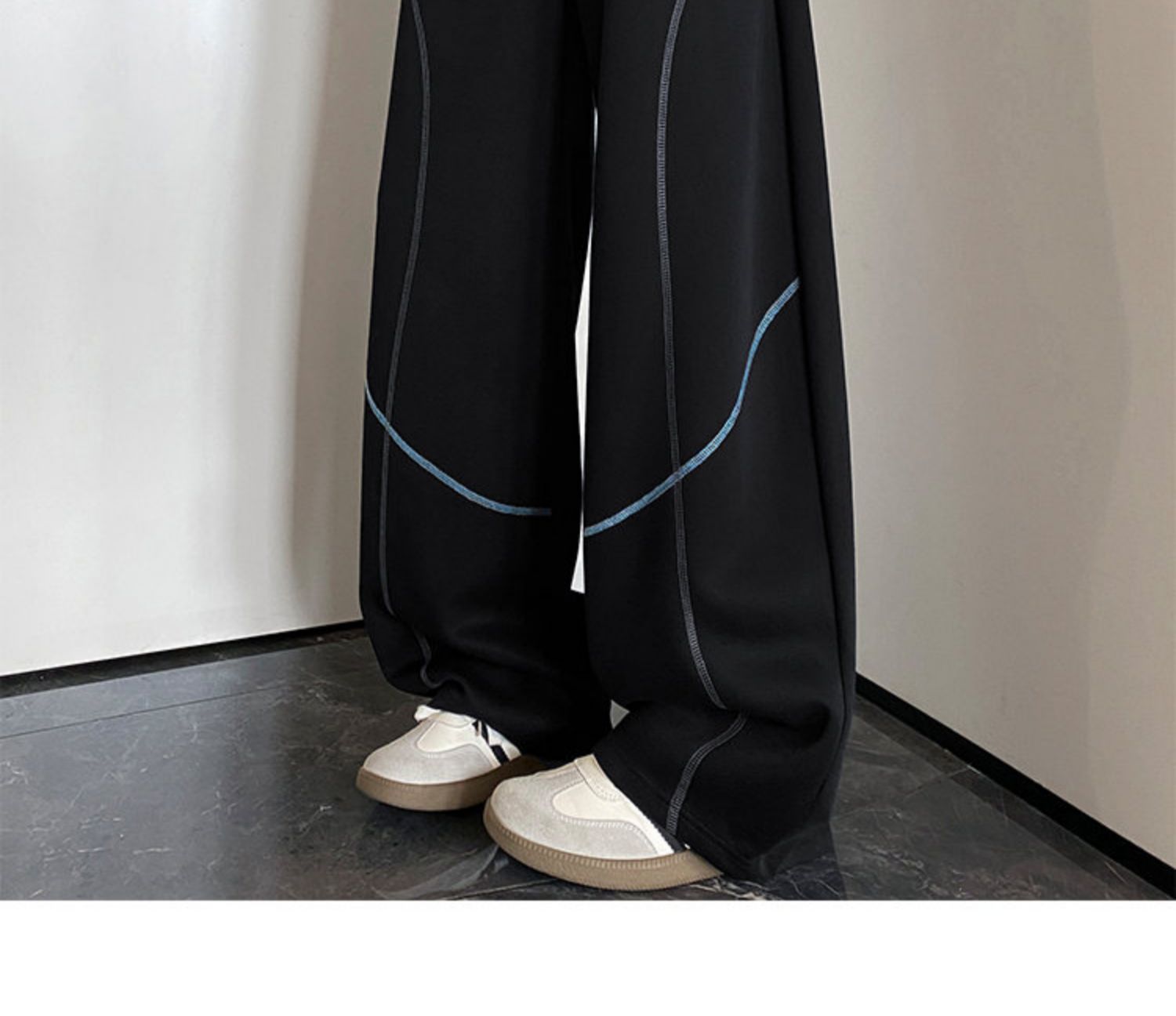 가을 남녀공용 아메리칸 네이비 블루 탑스티치 세이버 스웨트팬츠, 편안하고 키가 큰 캐주얼 팬츠, 루즈한 스포츠 와이드 팬츠