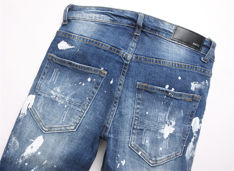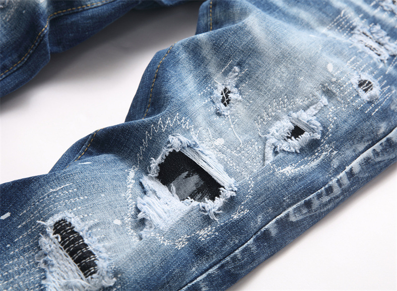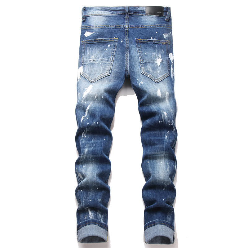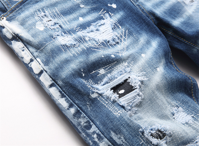 재고 있음, 해외 인기 상품, 수출용 찢어진 청바지, 남성용 슬림핏 스키니 팬츠, 스플래시 잉크 패치 워크 빈티지 청바지, 한국 스타일 8270