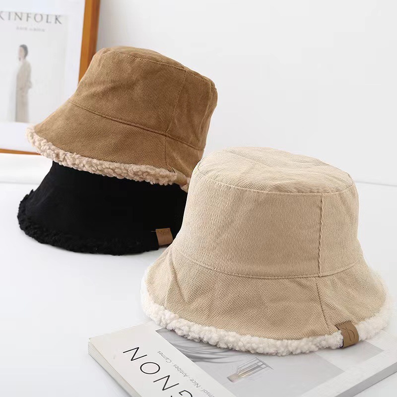 2025 새로운 가을 겨울 양면 플러시 어부 모자, 작은 얼굴, 패셔너블하고 다재다능한 따뜻한 플러시 버킷 모자
