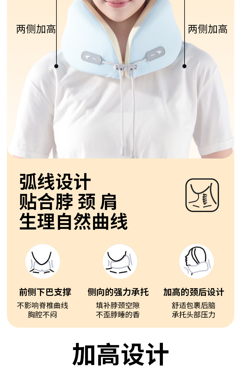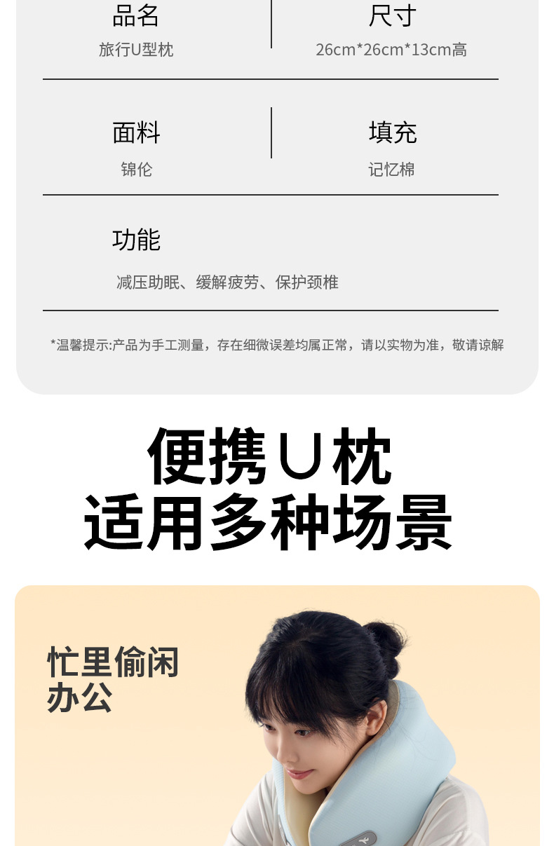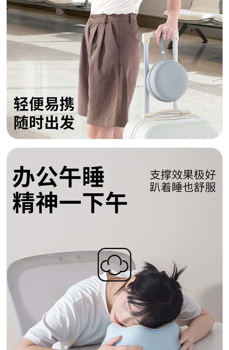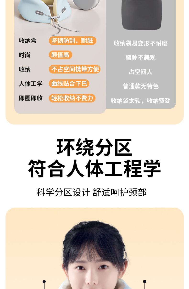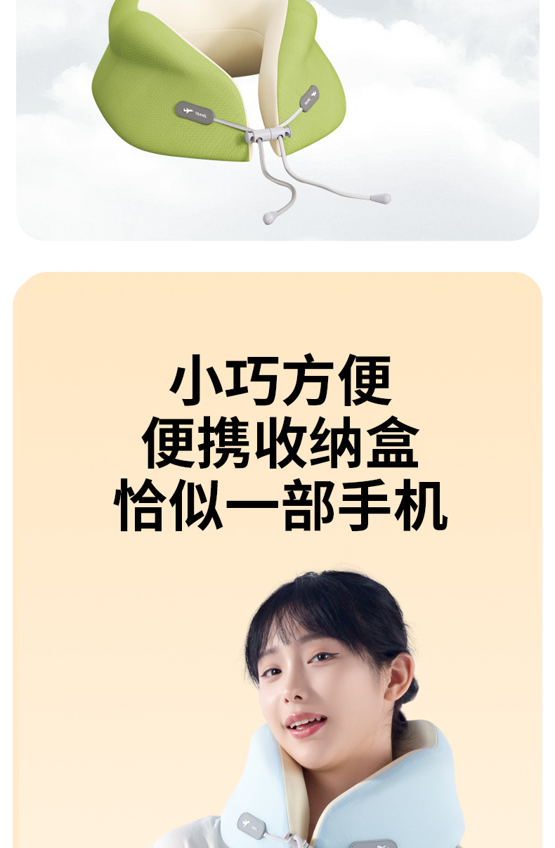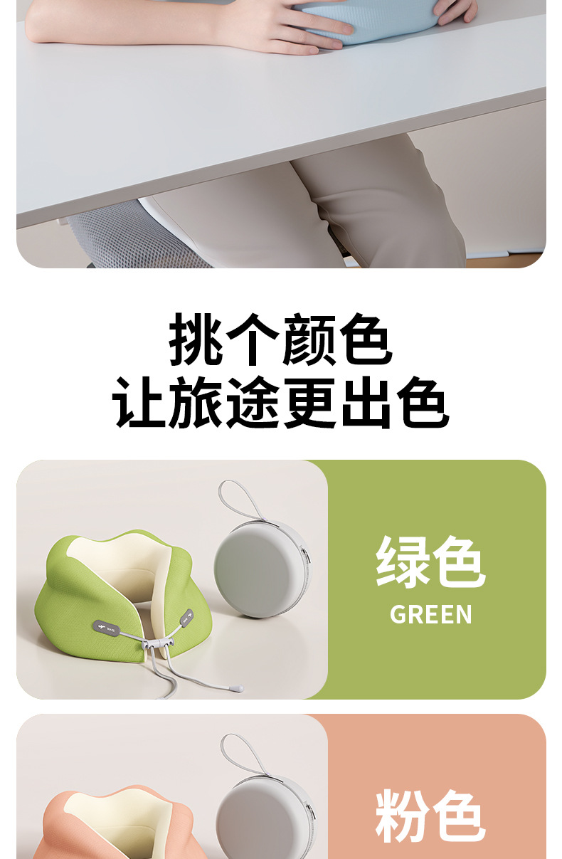 | 颜色 | 天蓝色, 雾霾蓝, 橘粉色, 青草绿 | 尺寸规格 | 单个颈枕, 颈枕+布圆盒, 颈枕+eva圆盒 |