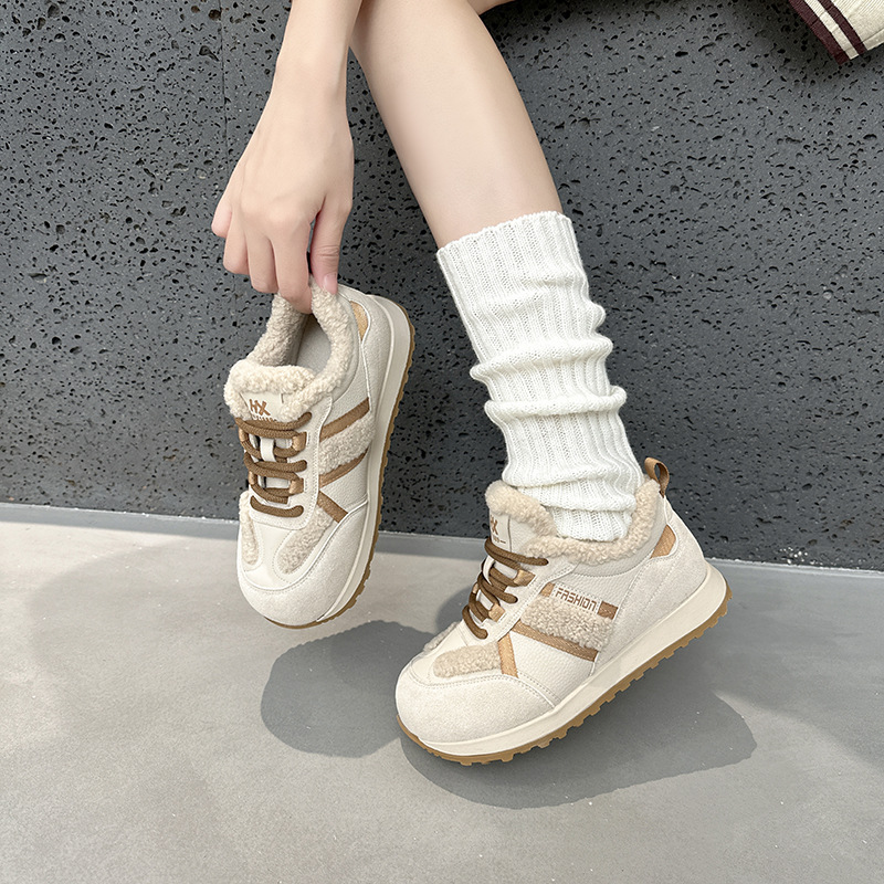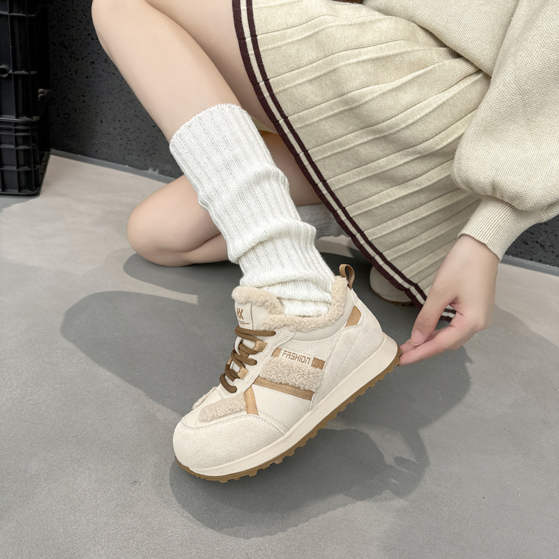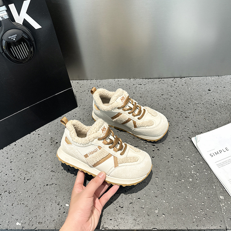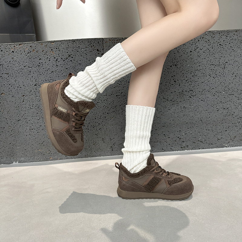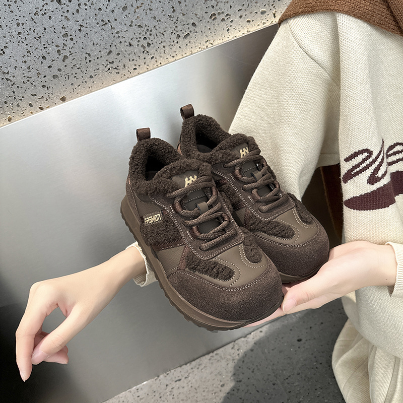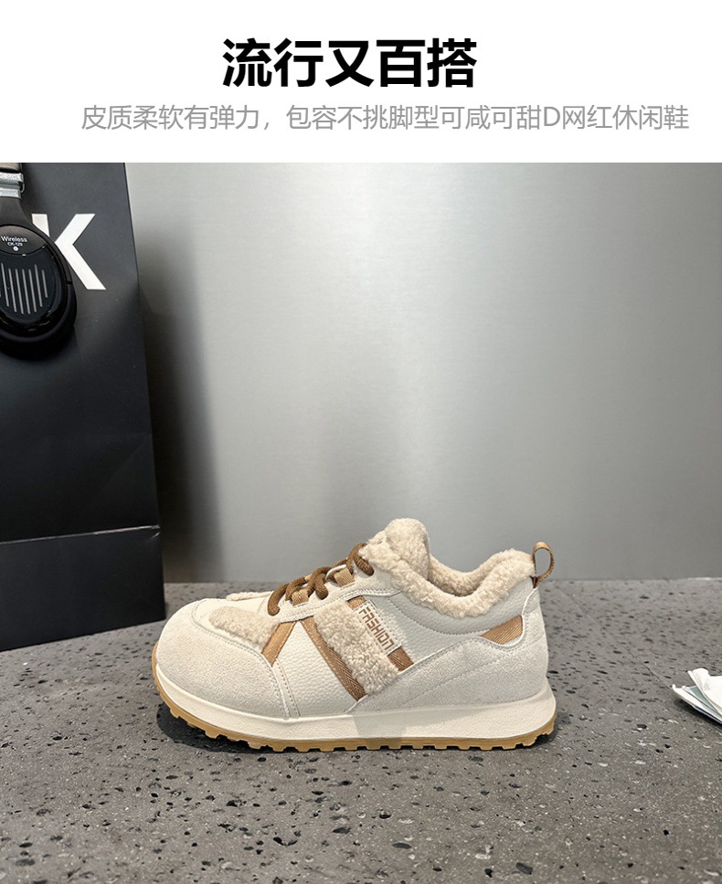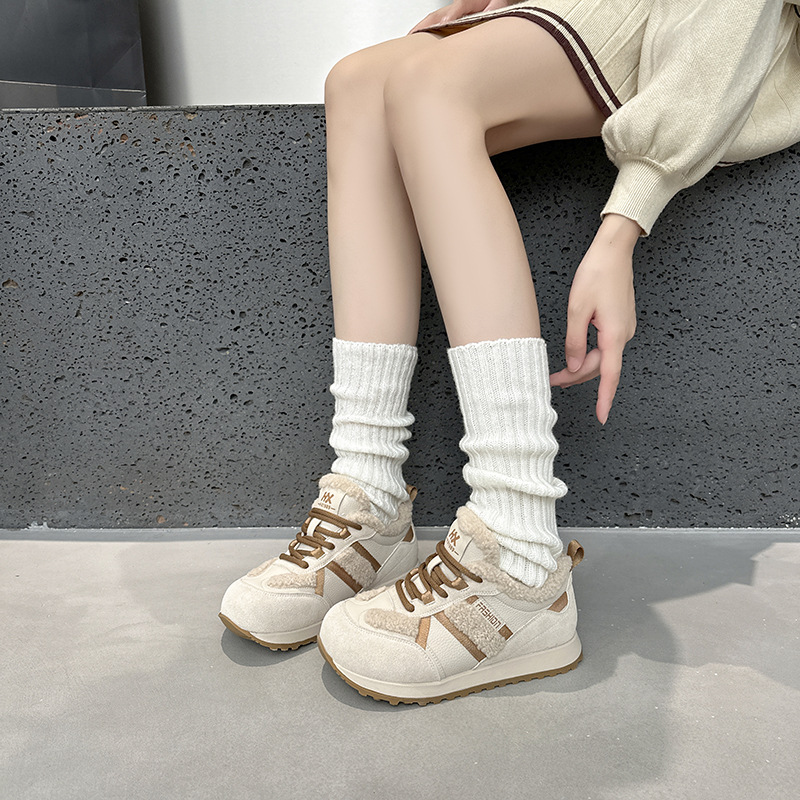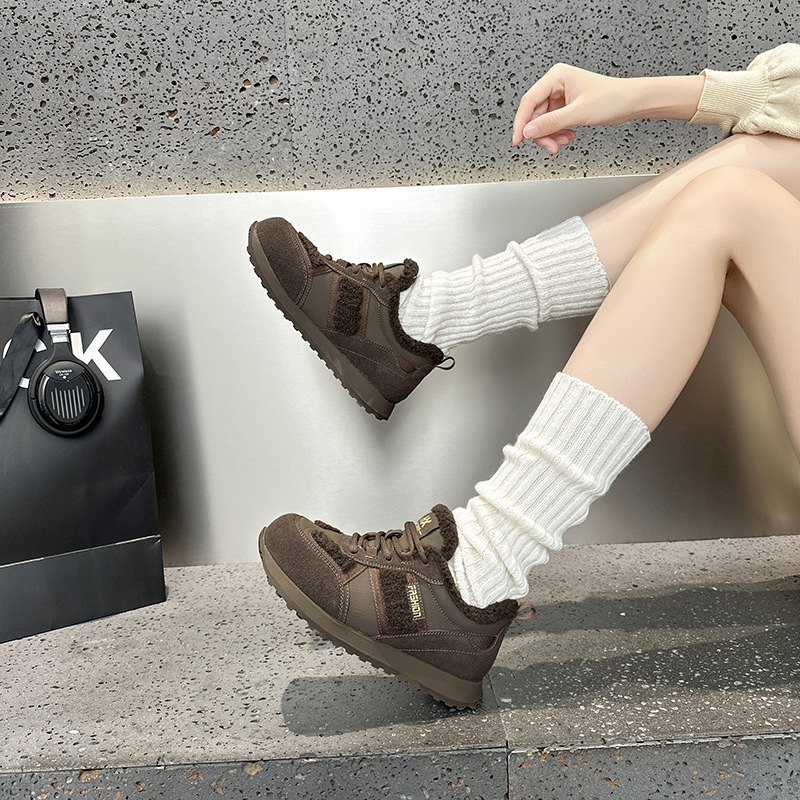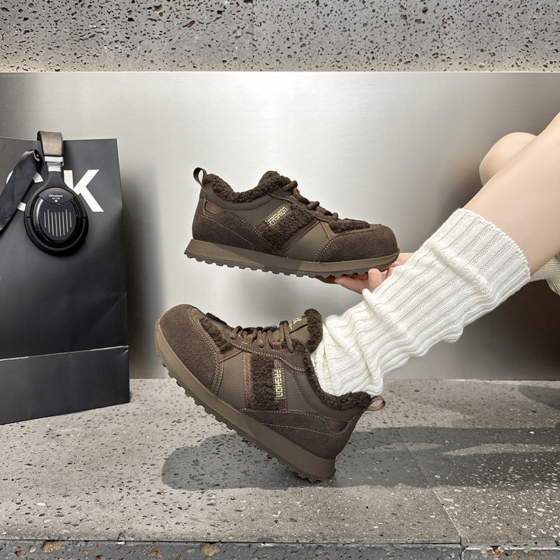 Dexun 신발 2025 가을, 겨울 새로운 색상 매칭 플러스 벨벳 미끄럼 방지 캐주얼 스포츠 신발 Forrest Gump 신발 여성 둥근 발가락과 넓은 발