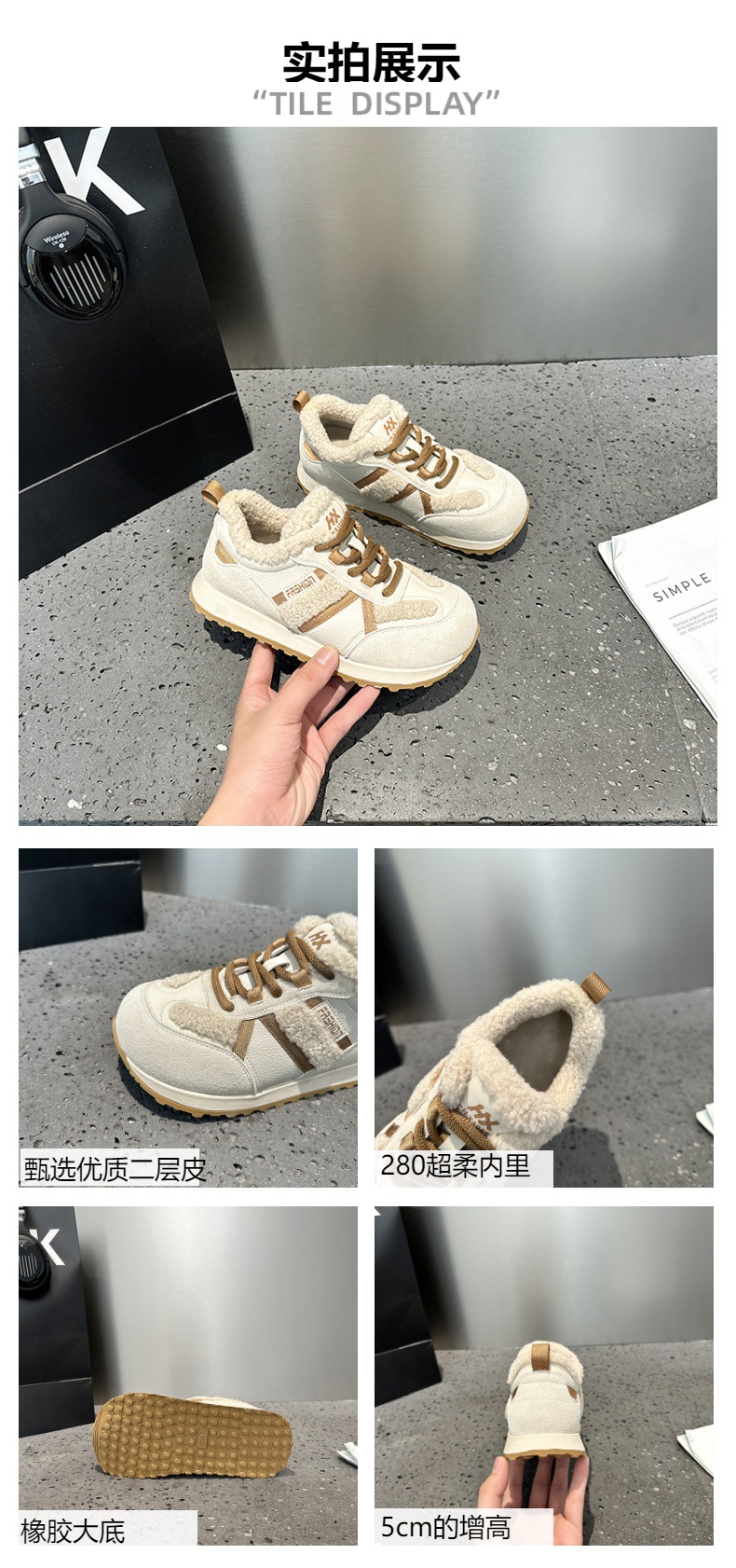 | 鞋垫材质 | 人造毛 | 款式 | 阿甘鞋 |