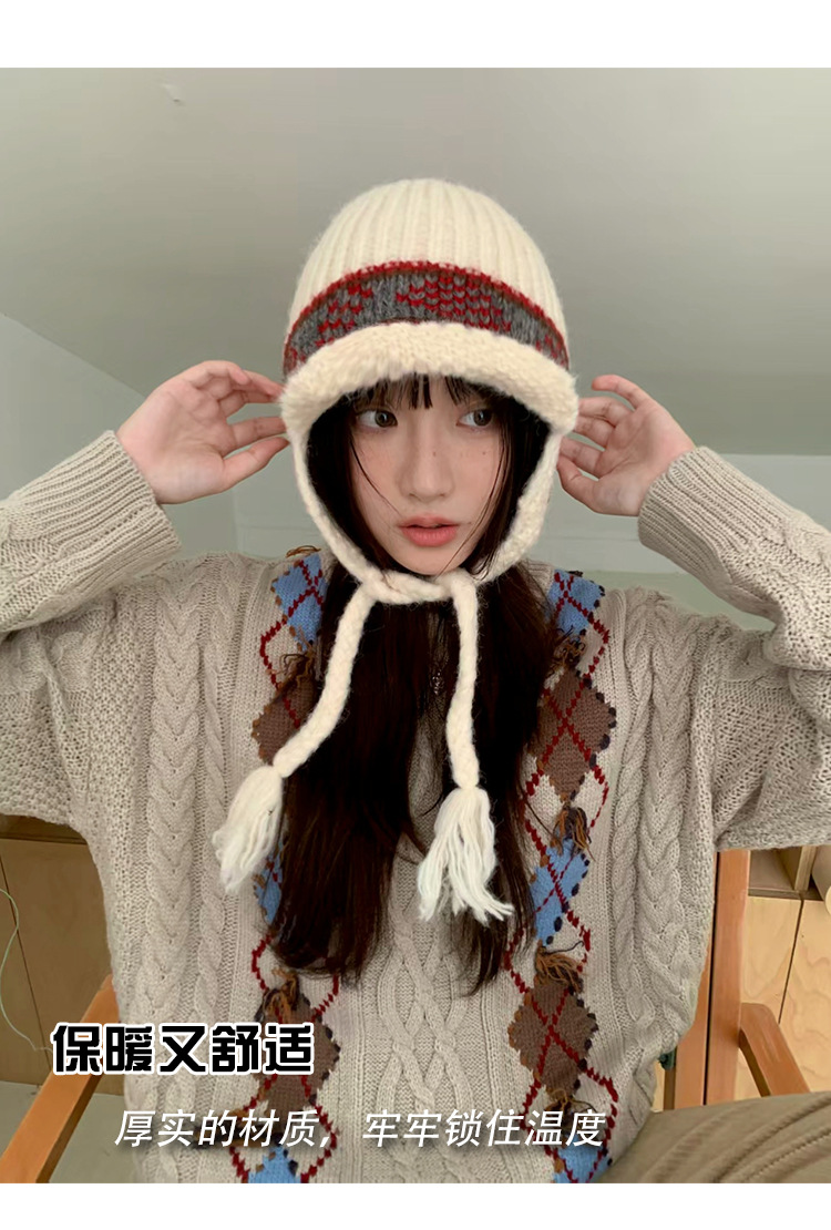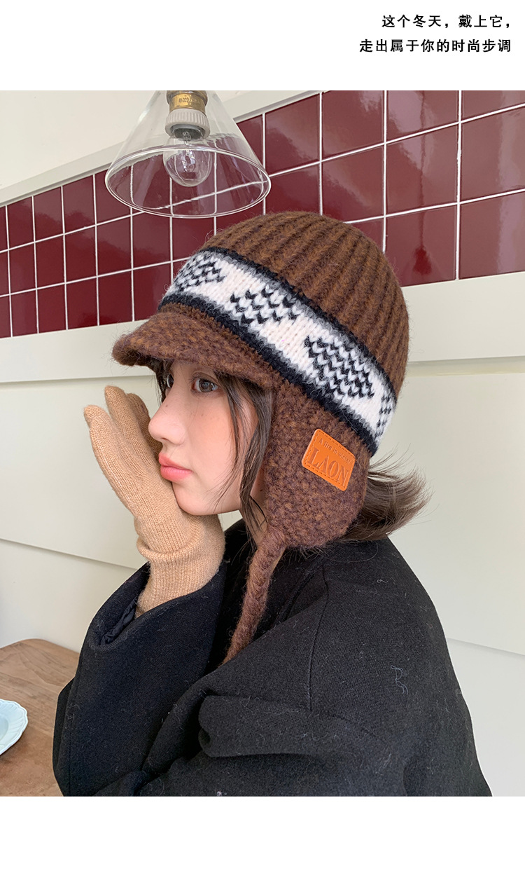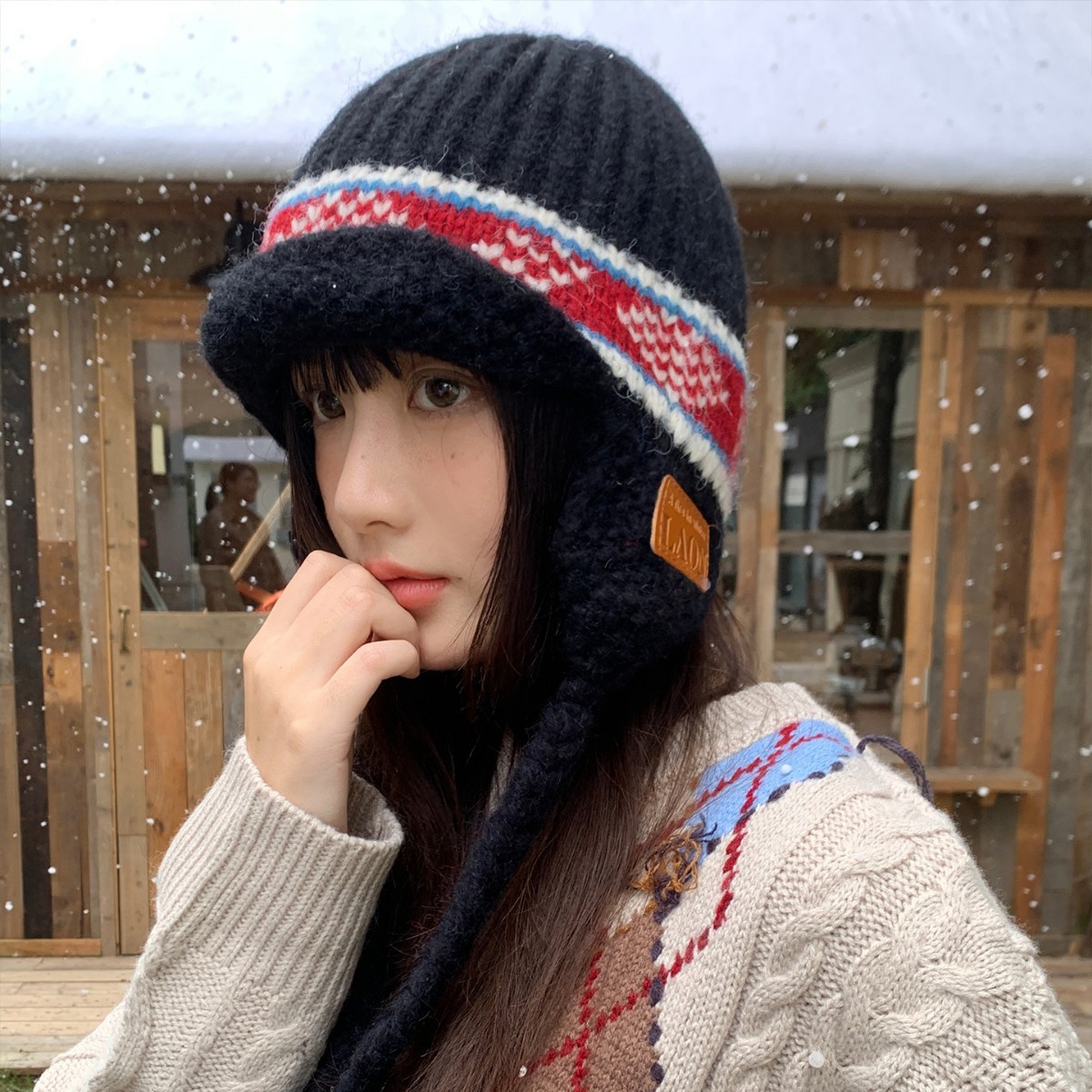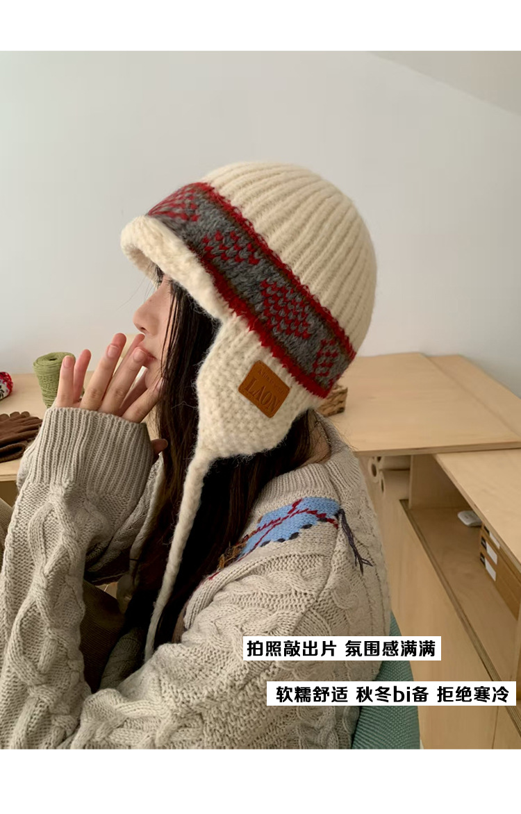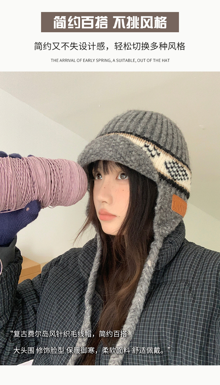 여성을위한 페어 아일 스타일 니트 모직 모자 2025 새로운 가을, 겨울 따뜻한 비행 귀 보호 모자 방한 Lei Feng 모자