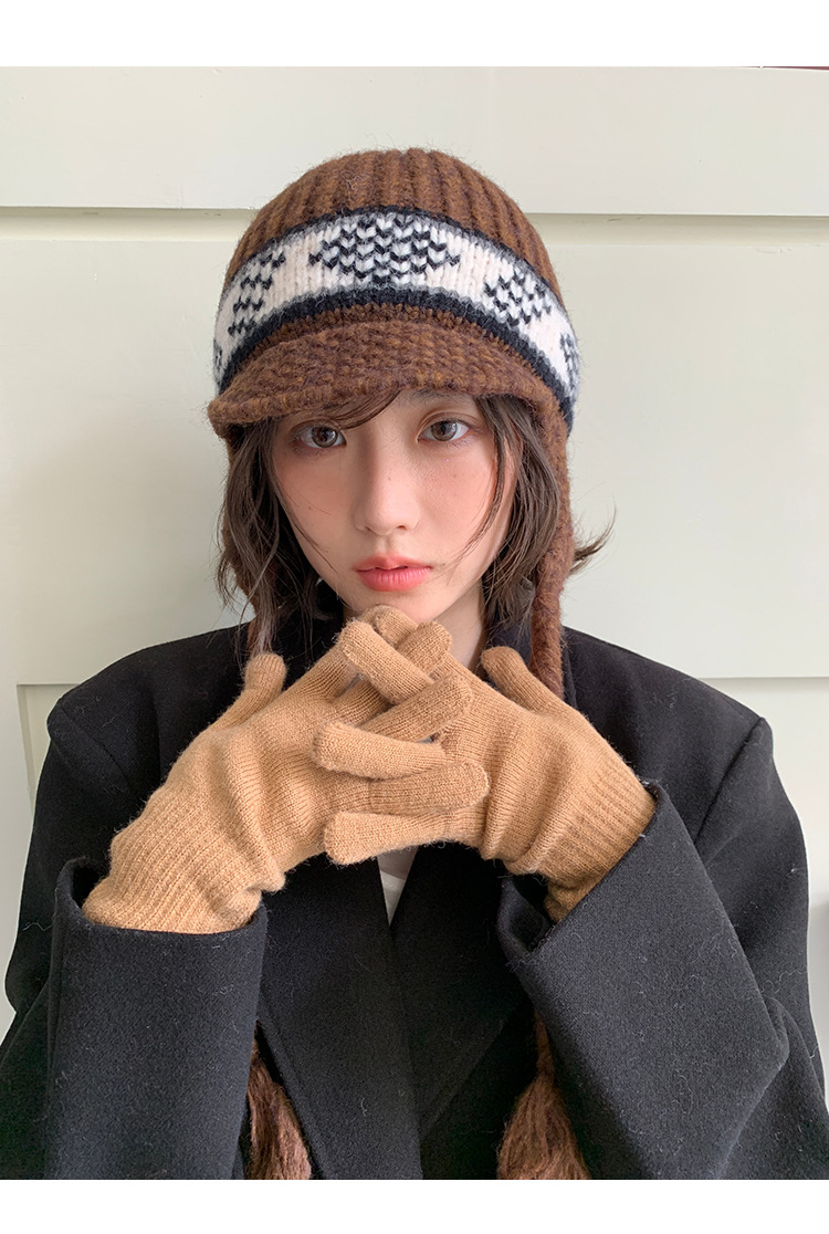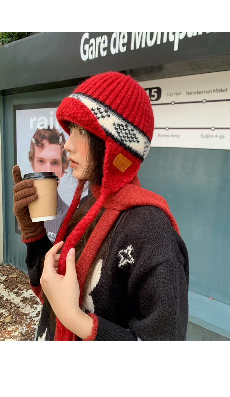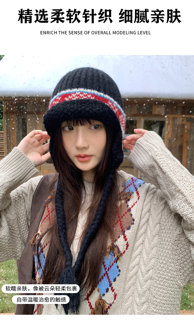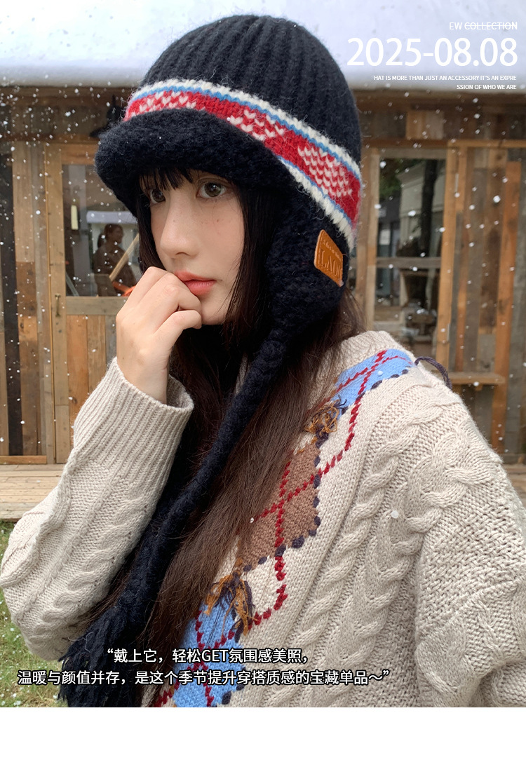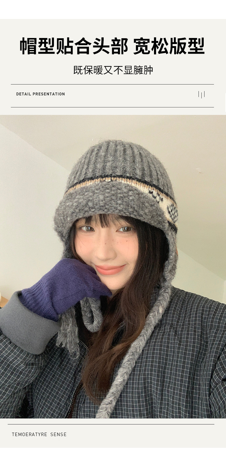 여성을위한 페어 아일 스타일 니트 모직 모자 2025 새로운 가을, 겨울 따뜻한 비행 귀 보호 모자 방한 Lei Feng 모자