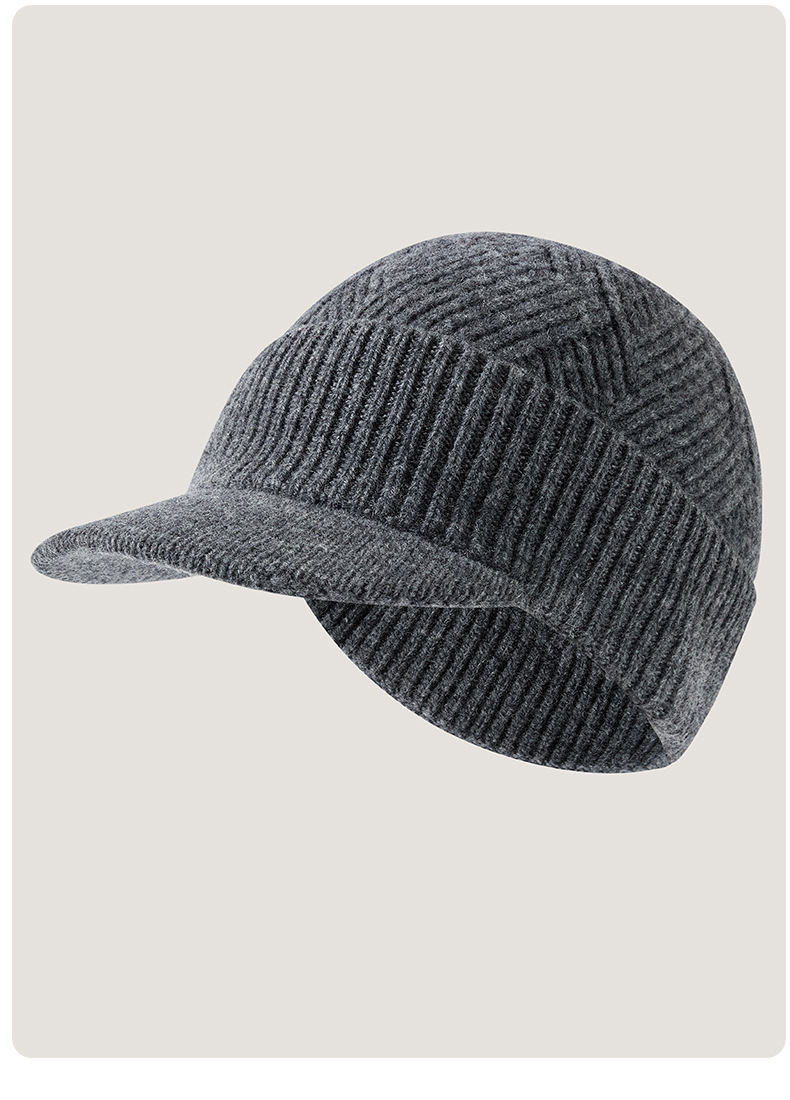 크로스보더 가을 겨울 방한 모자 남성용 블랙 풀오버 피크 캡, 큰 머리 둘레, 깊은 벨벳 따뜻한 모직 니트 모자