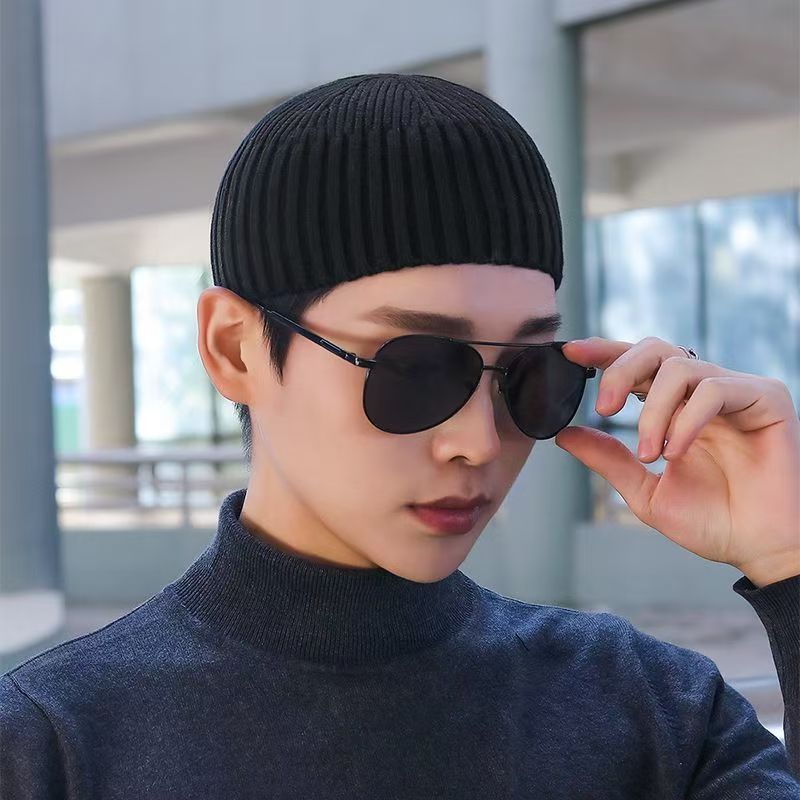 가을 겨울 짧은 니트 남성 따뜻한 멜론 스킨 모자 모직 모자 대머리 모자 남성 겨울 방한 모자 단색 따뜻한
