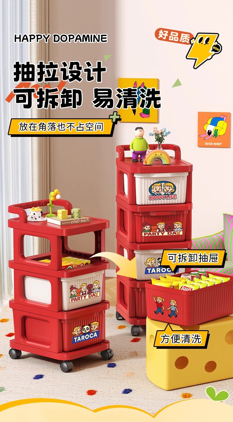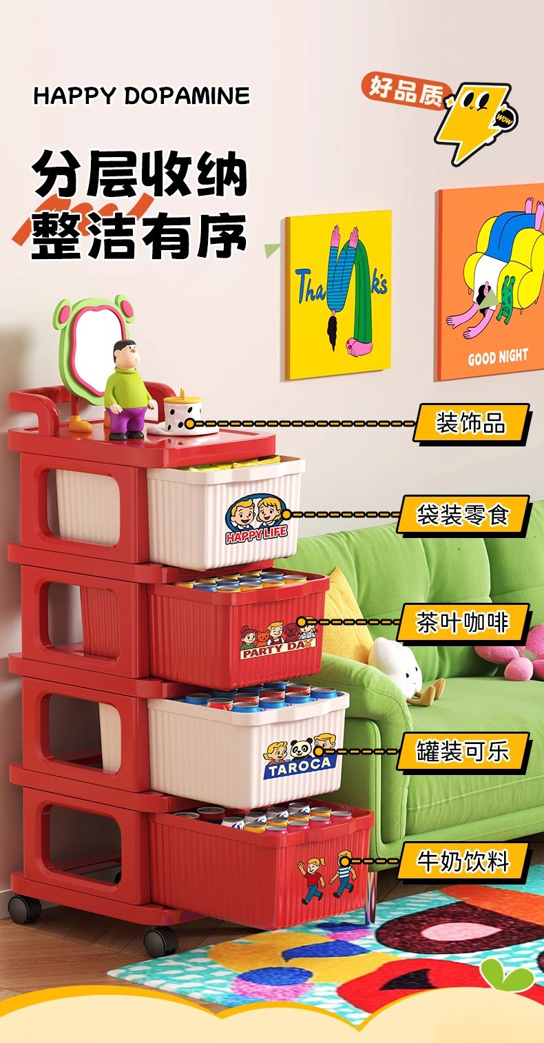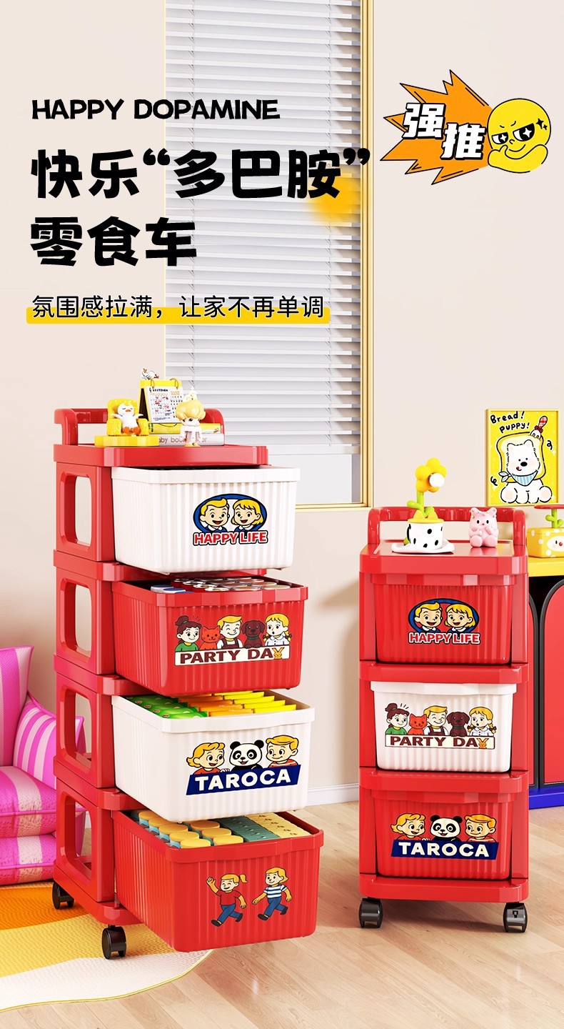 스낵 트롤리 보관함 바닥 서랍형 도파민 거실 모바일 보관 캐비닛 가정용 장난감 보관 캐비닛