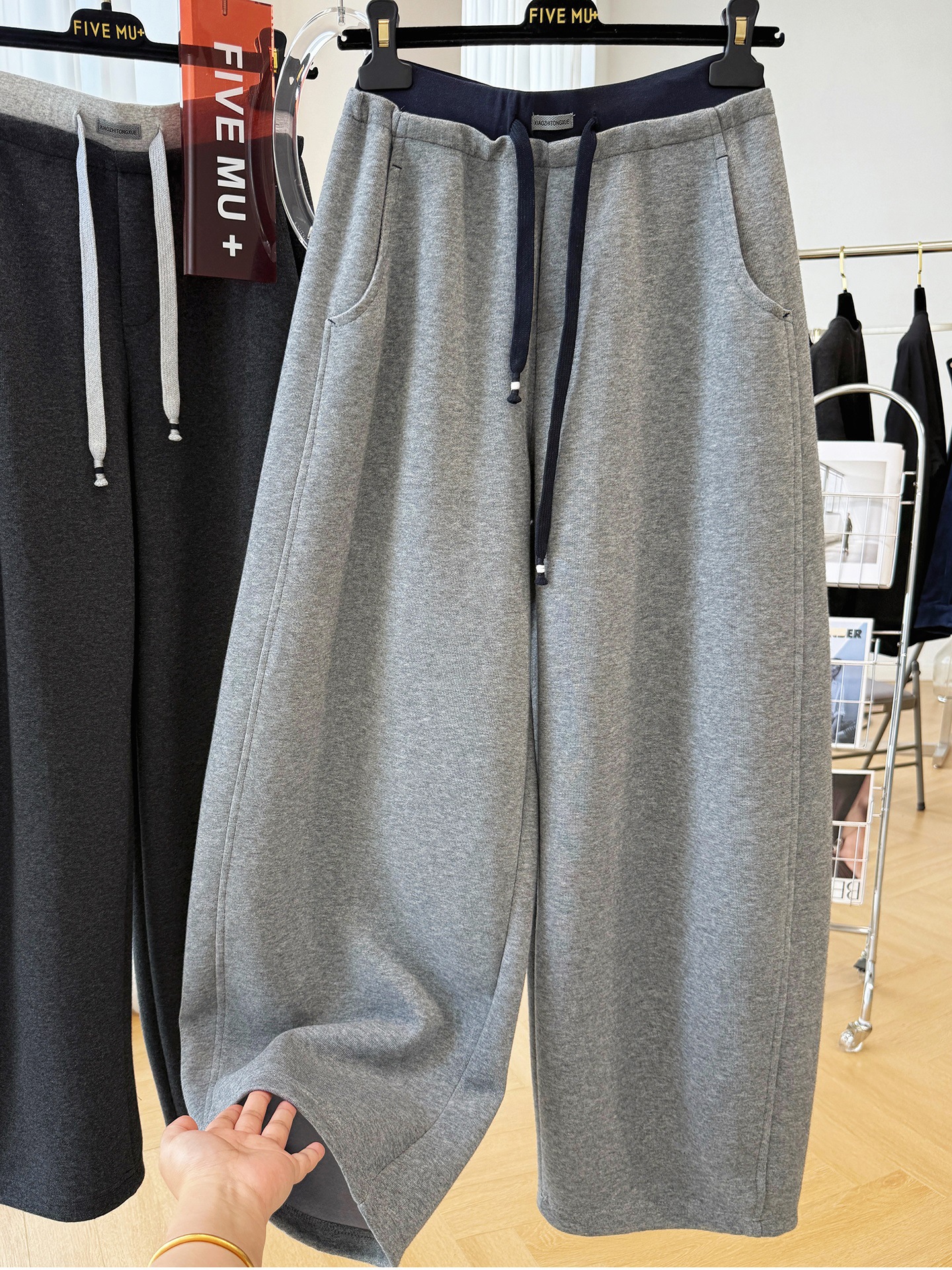 고급스러운 한국 스타일의 여유로운 가을용 멋진 스웨트팬츠 캐주얼 팬츠 여성용 독특하고 세련된 벤드 팬츠