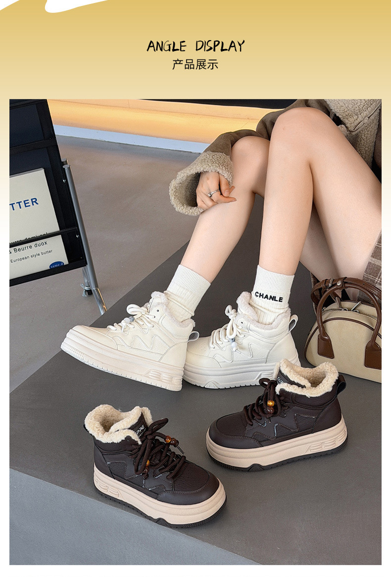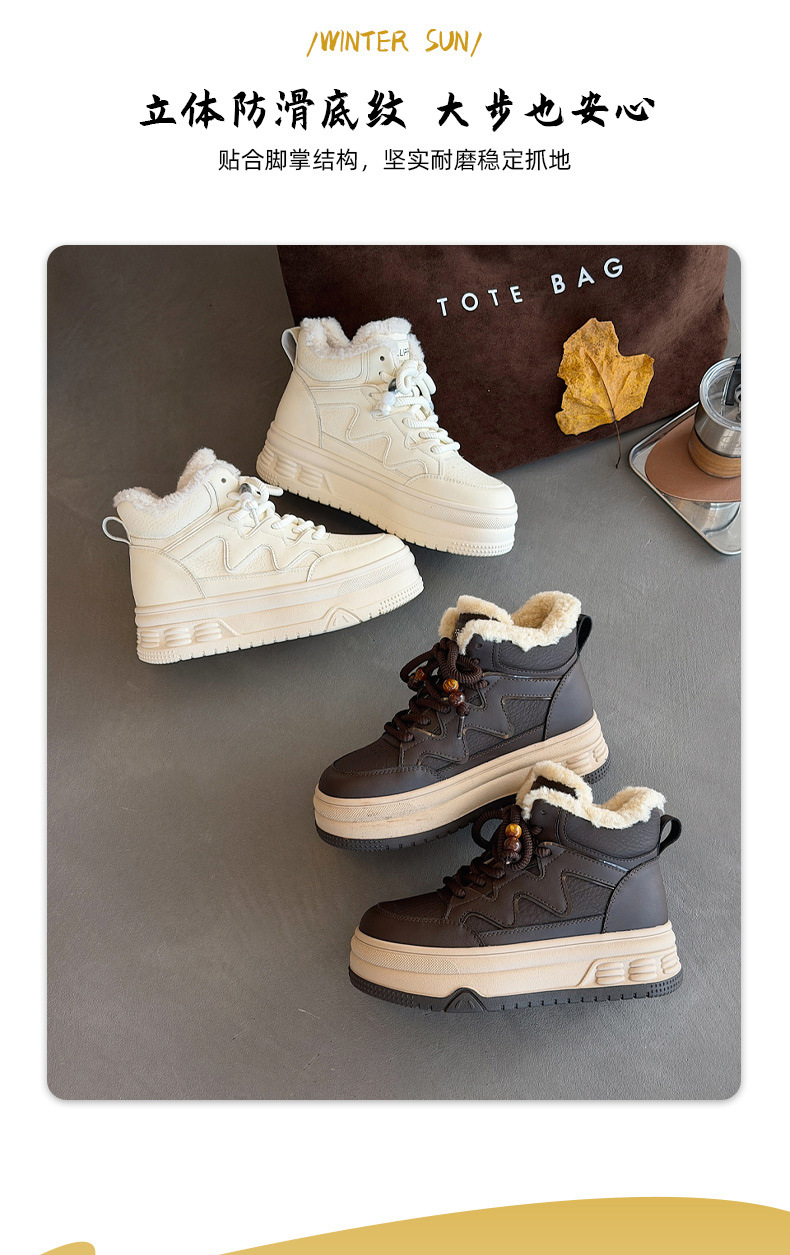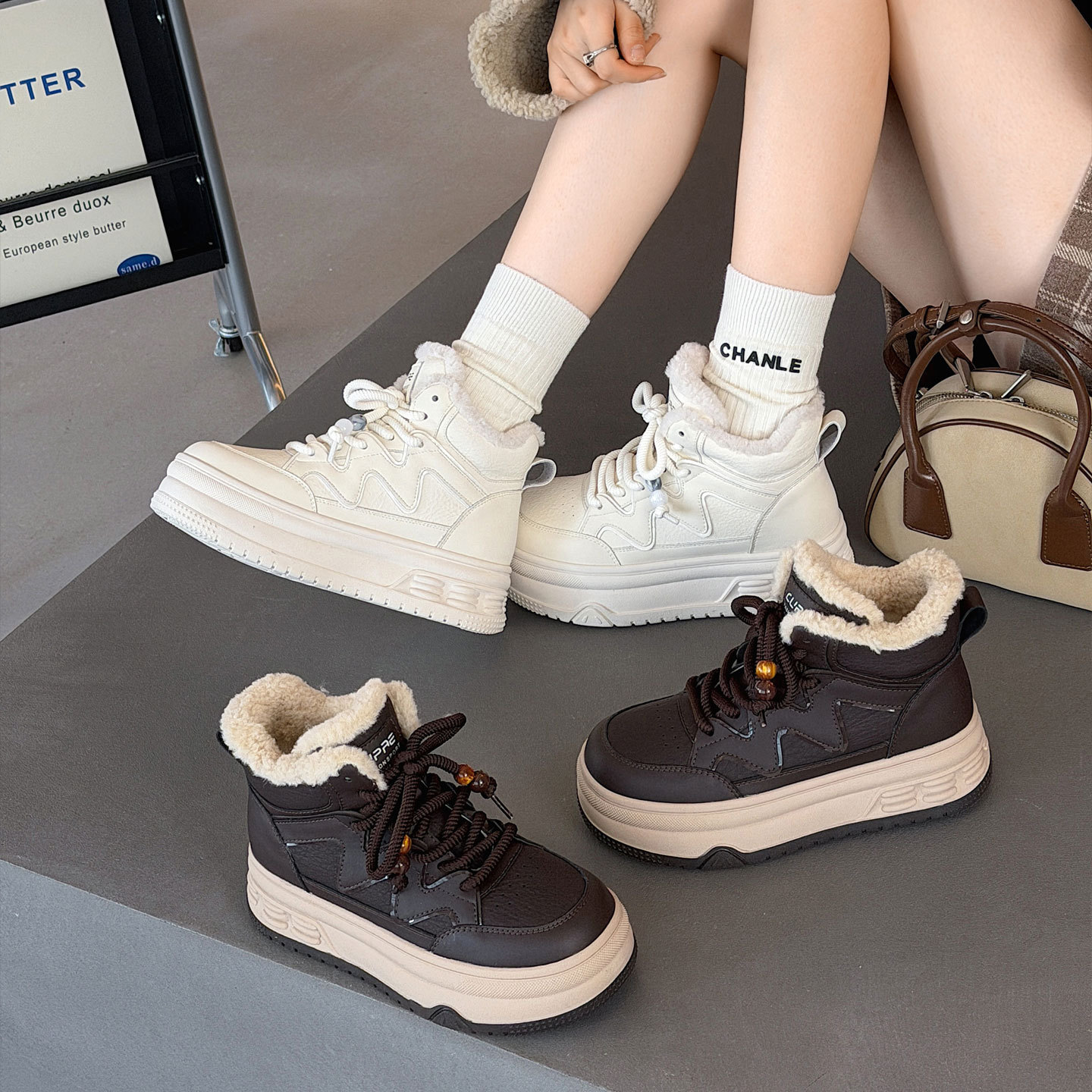 인터넷 연예인 스노우 부츠 2025 겨울 여성 신발 두꺼운 밑창 하이 탑 플러스 코튼 캐주얼 신발 하이 웨이스트 모피 운동화 여성 코튼 신발 유행