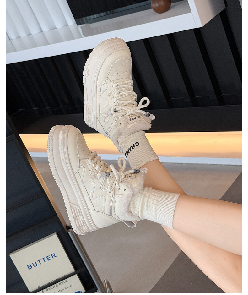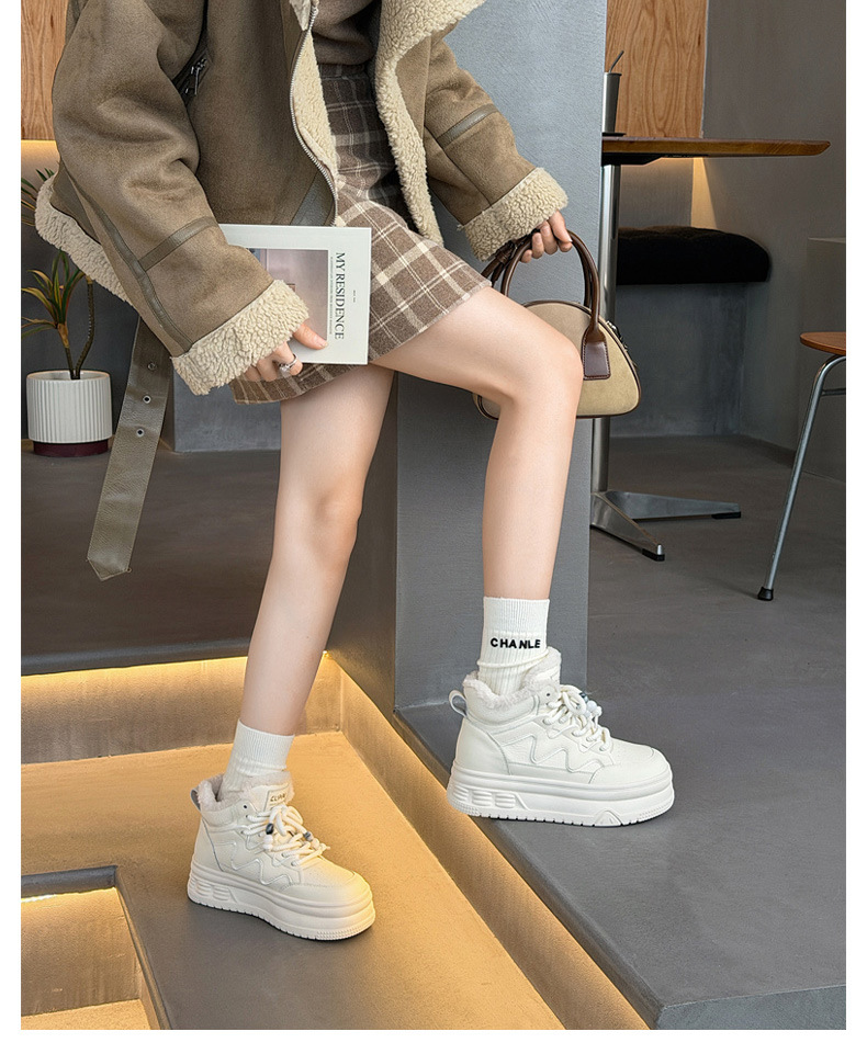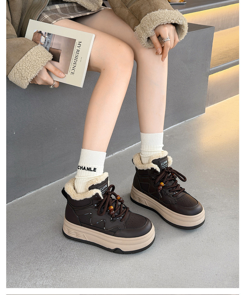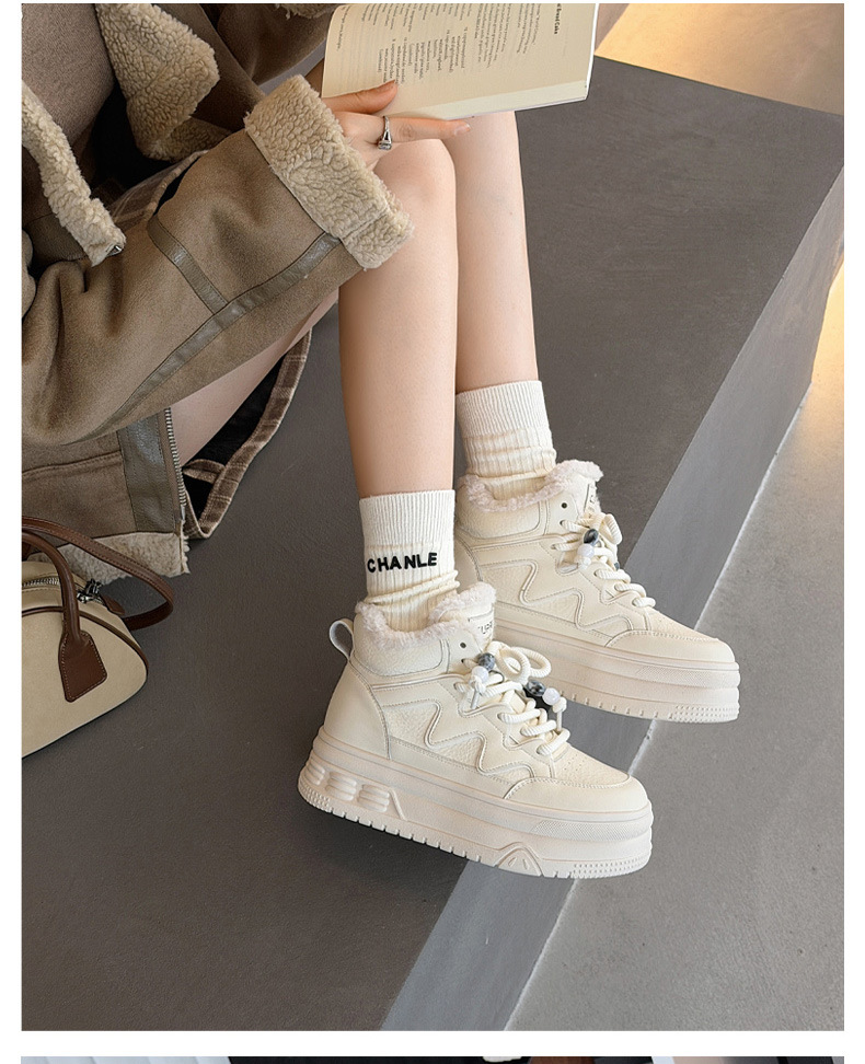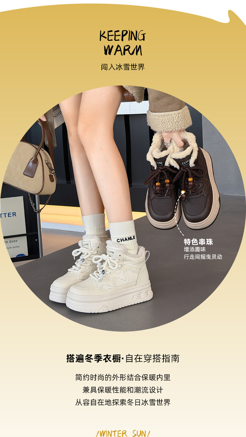 인터넷 연예인 스노우 부츠 2025 겨울 여성 신발 두꺼운 밑창 하이 탑 플러스 코튼 캐주얼 신발 하이 웨이스트 모피 운동화 여성 코튼 신발 유행