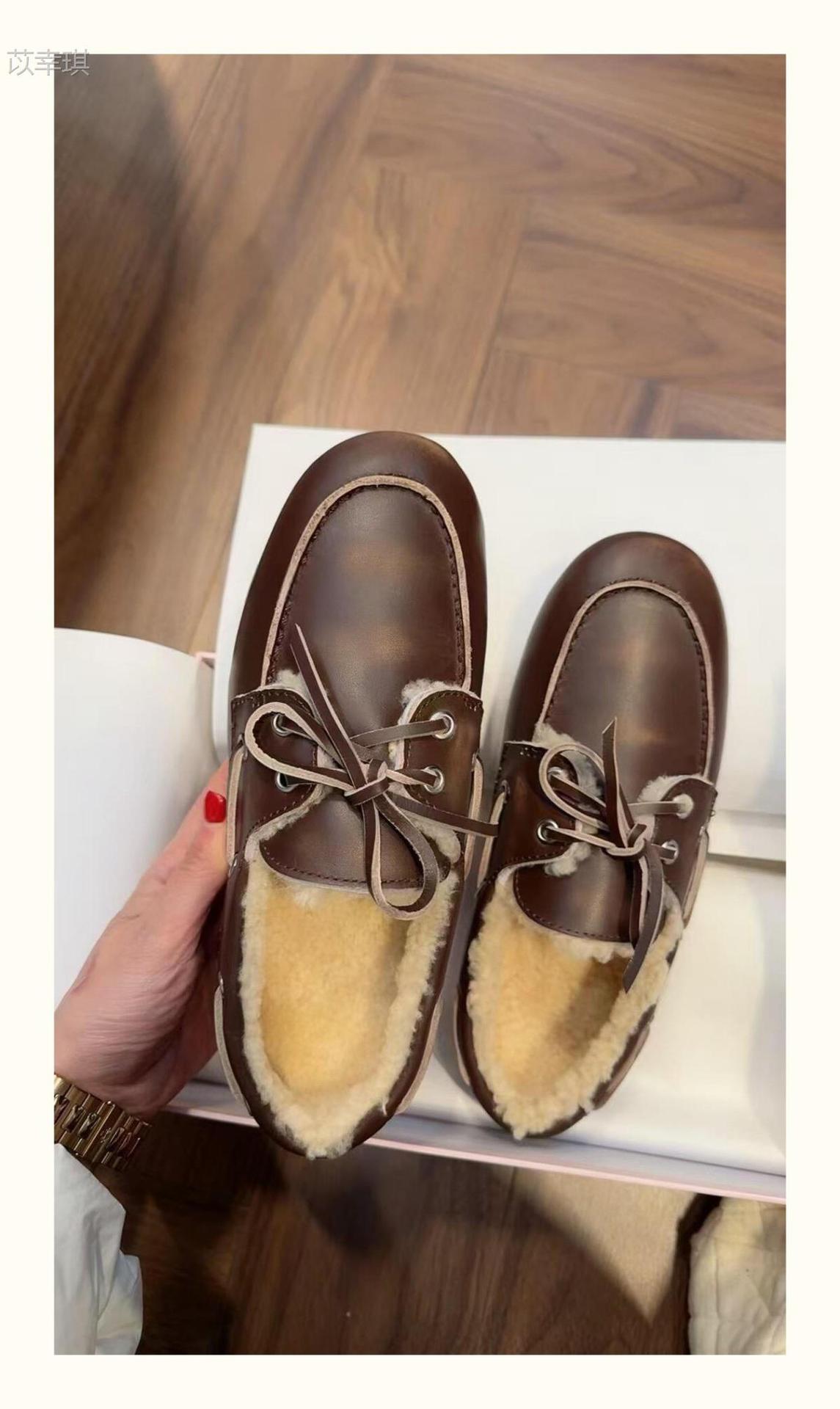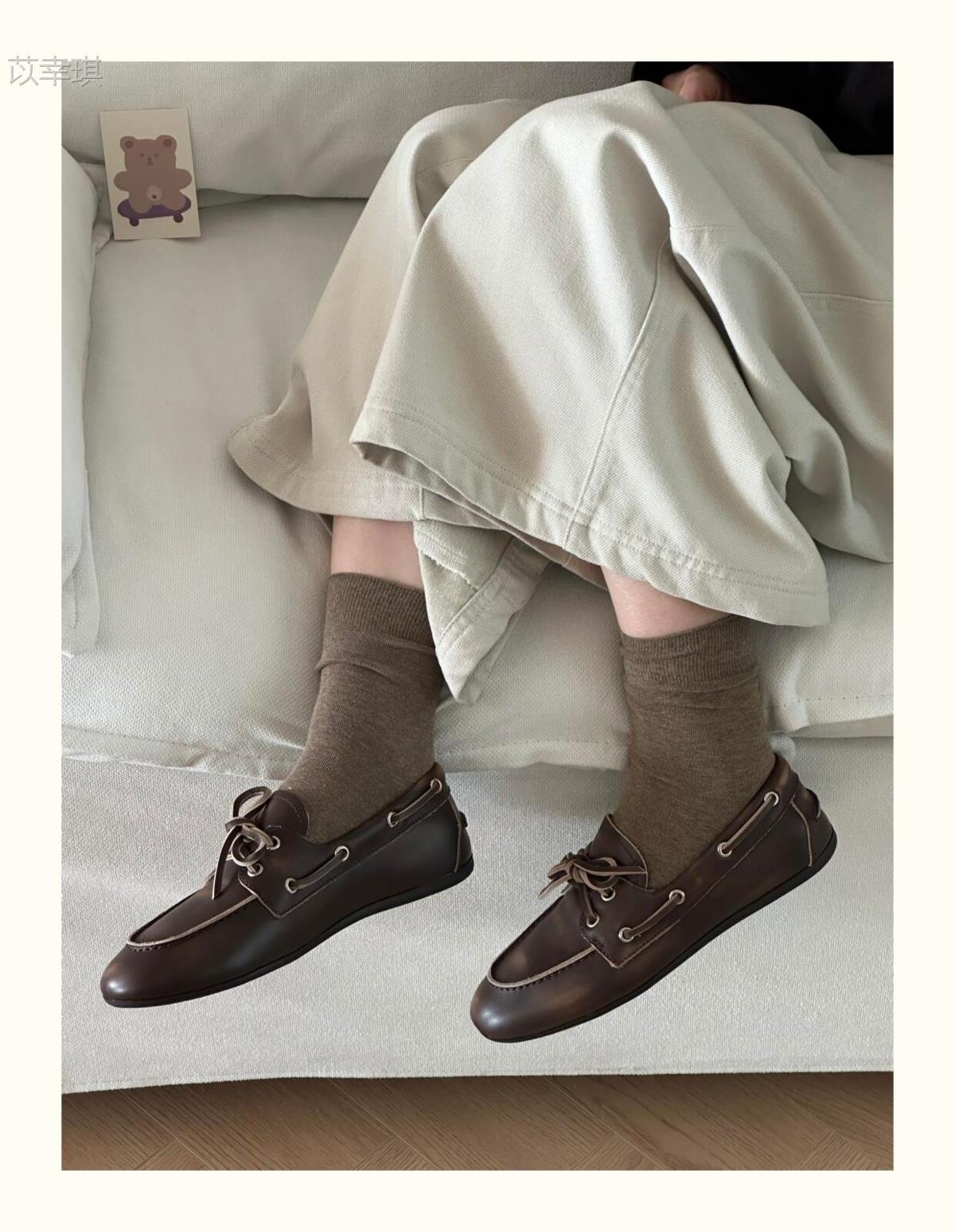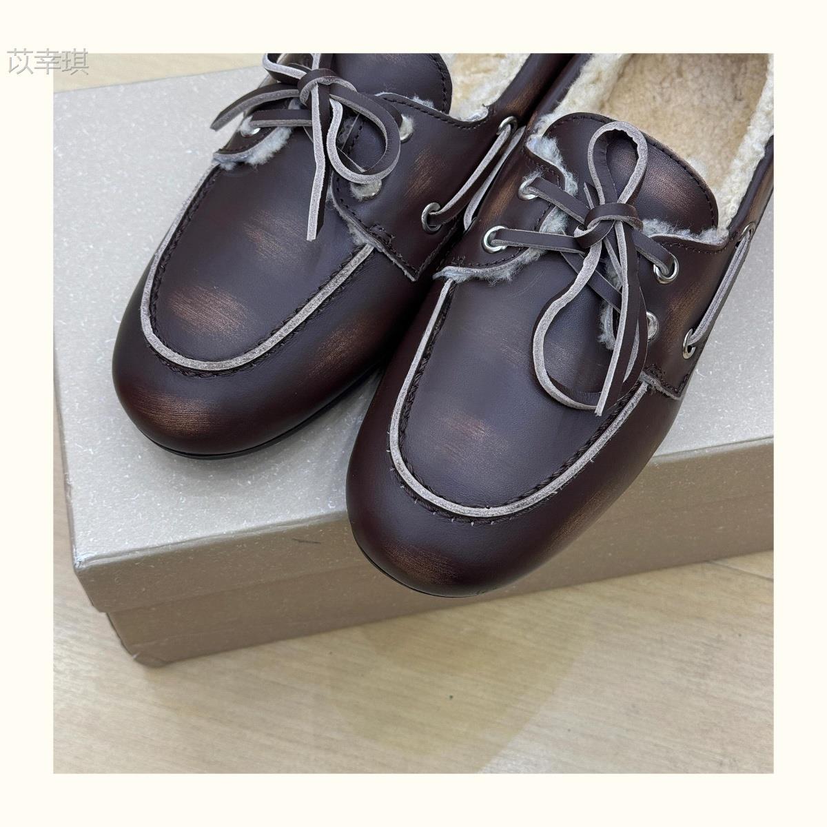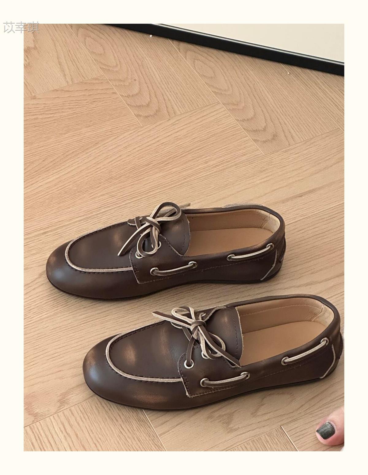 소가죽 버전 ~ 레트로 브리티시 스타일 올드 컬러 워밍 플러스 벨벳 로퍼 여성용 천연가죽 라운드 투 레이스업 스몰 가죽 슈즈