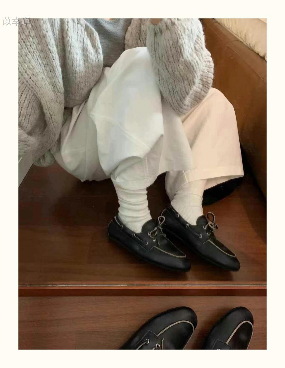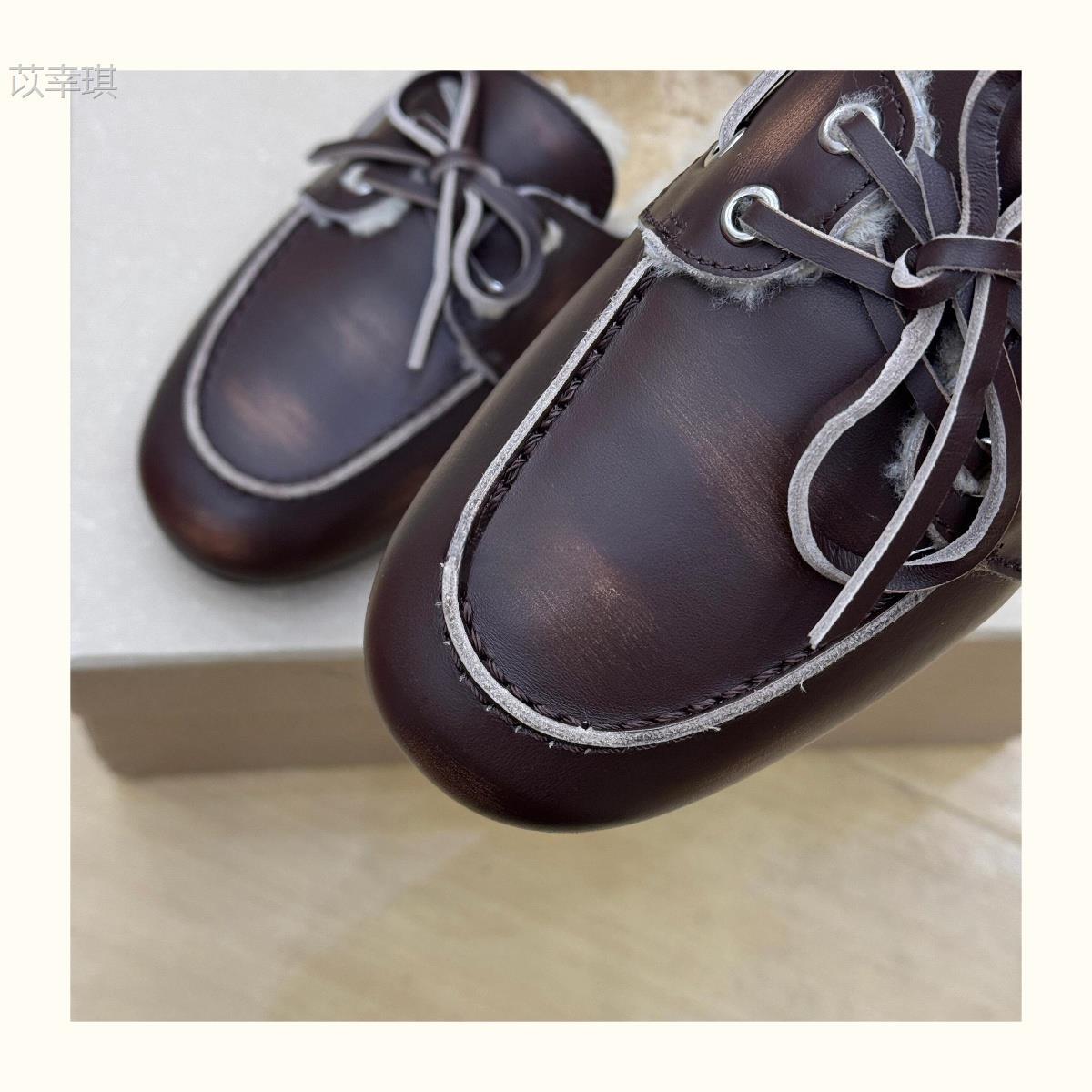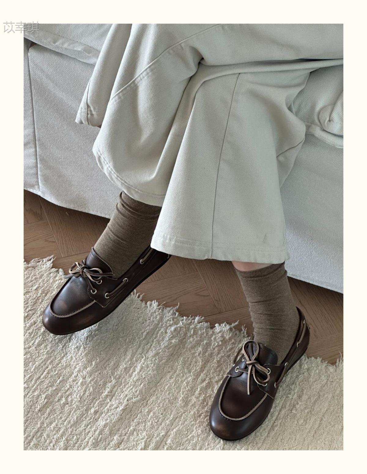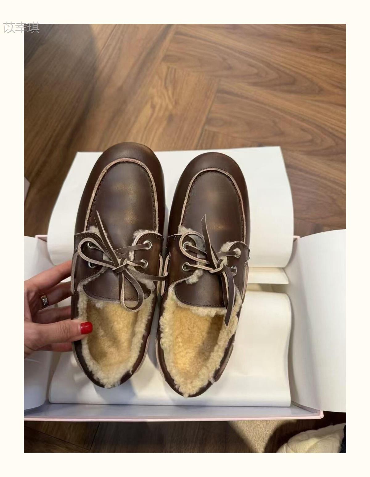 소가죽 버전 ~ 레트로 브리티시 스타일 올드 컬러 워밍 플러스 벨벳 로퍼 여성용 천연가죽 라운드 투 레이스업 스몰 가죽 슈즈