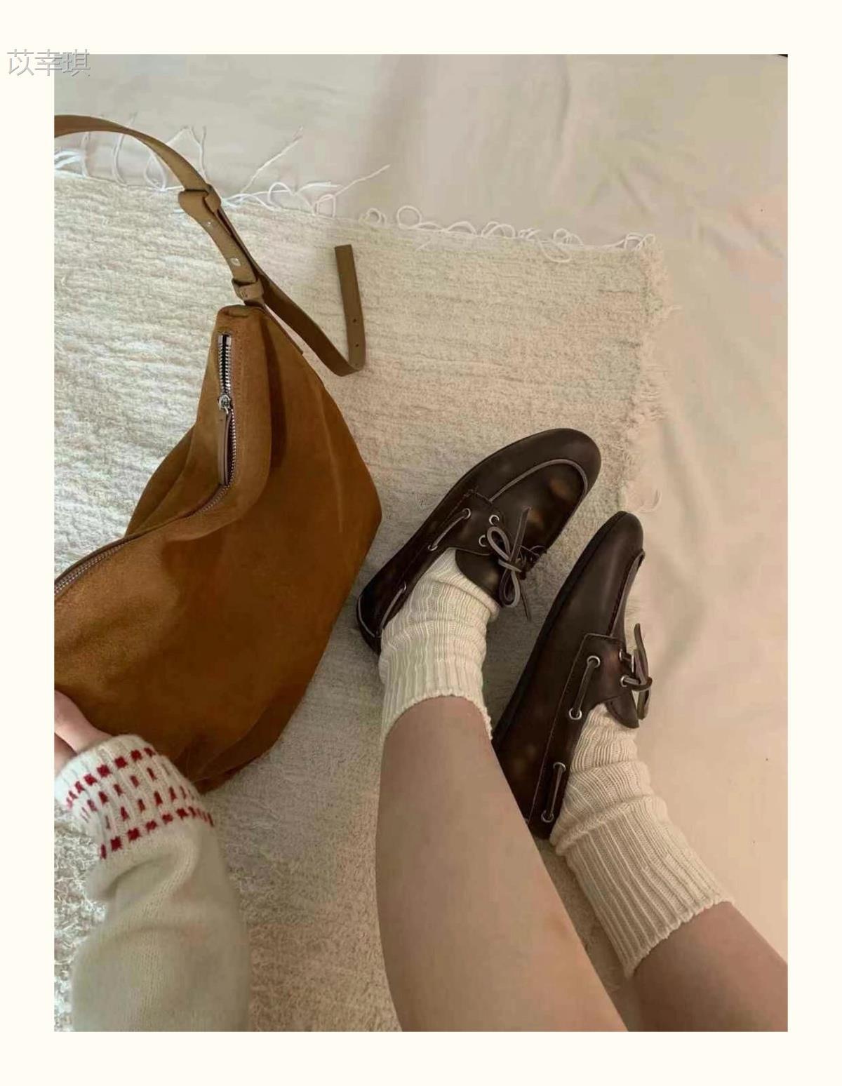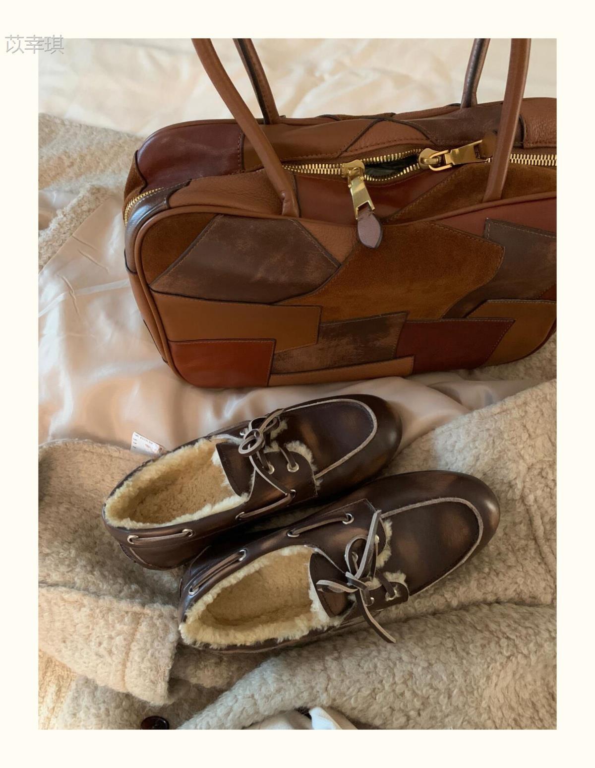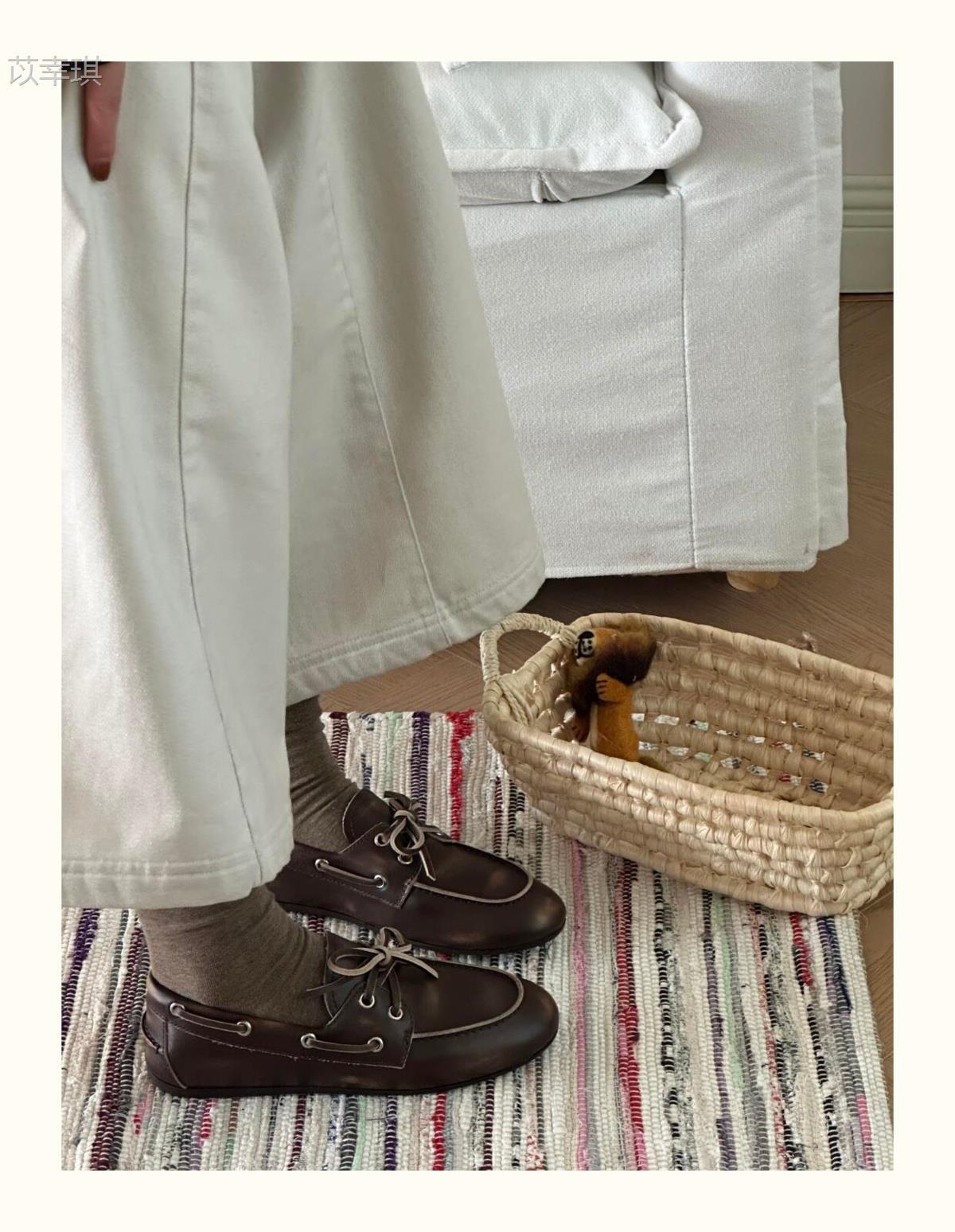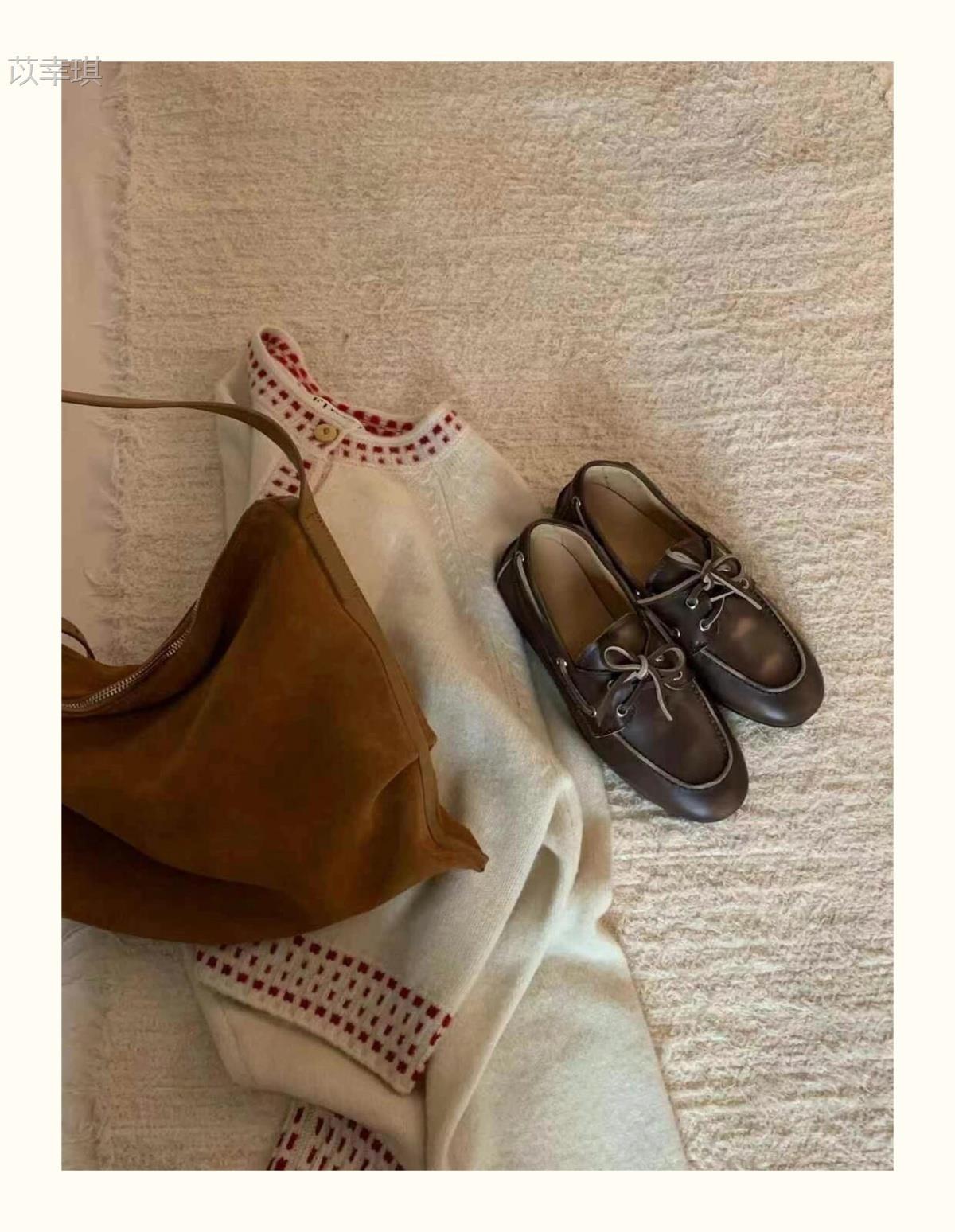 소가죽 버전 ~ 레트로 브리티시 스타일 올드 컬러 워밍 플러스 벨벳 로퍼 여성용 천연가죽 라운드 투 레이스업 스몰 가죽 슈즈