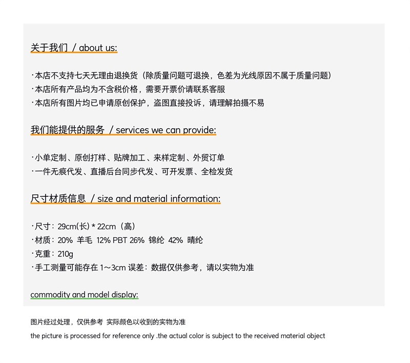 | 颜色 | 橘色, 灰色 | 尺码 | 均码 |