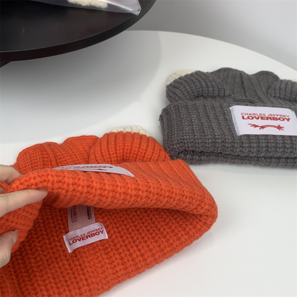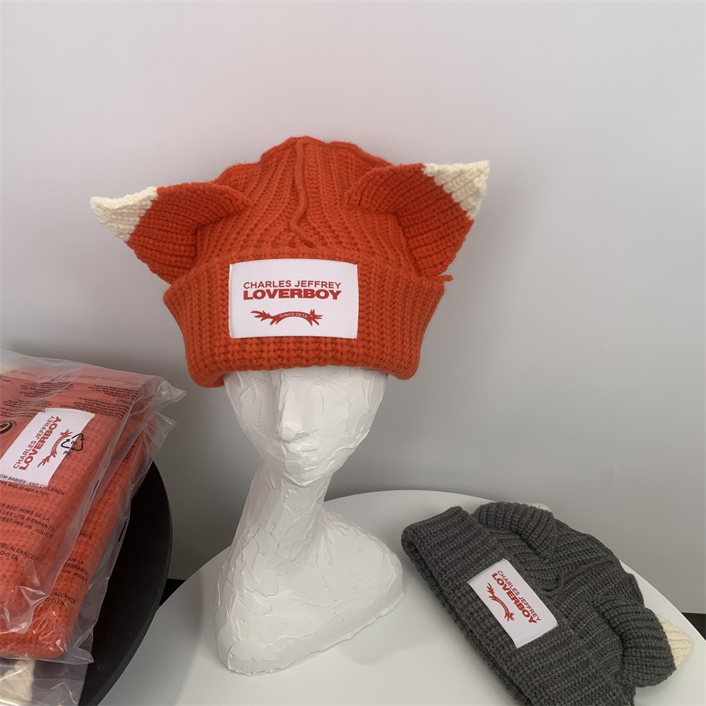 Zongfu Ba Wang Yiheng의 같은 스타일의 Loverboy Fox Ear 핸드메이드 고양이 귀 니트 모자 틈새 디자인 모직 모자