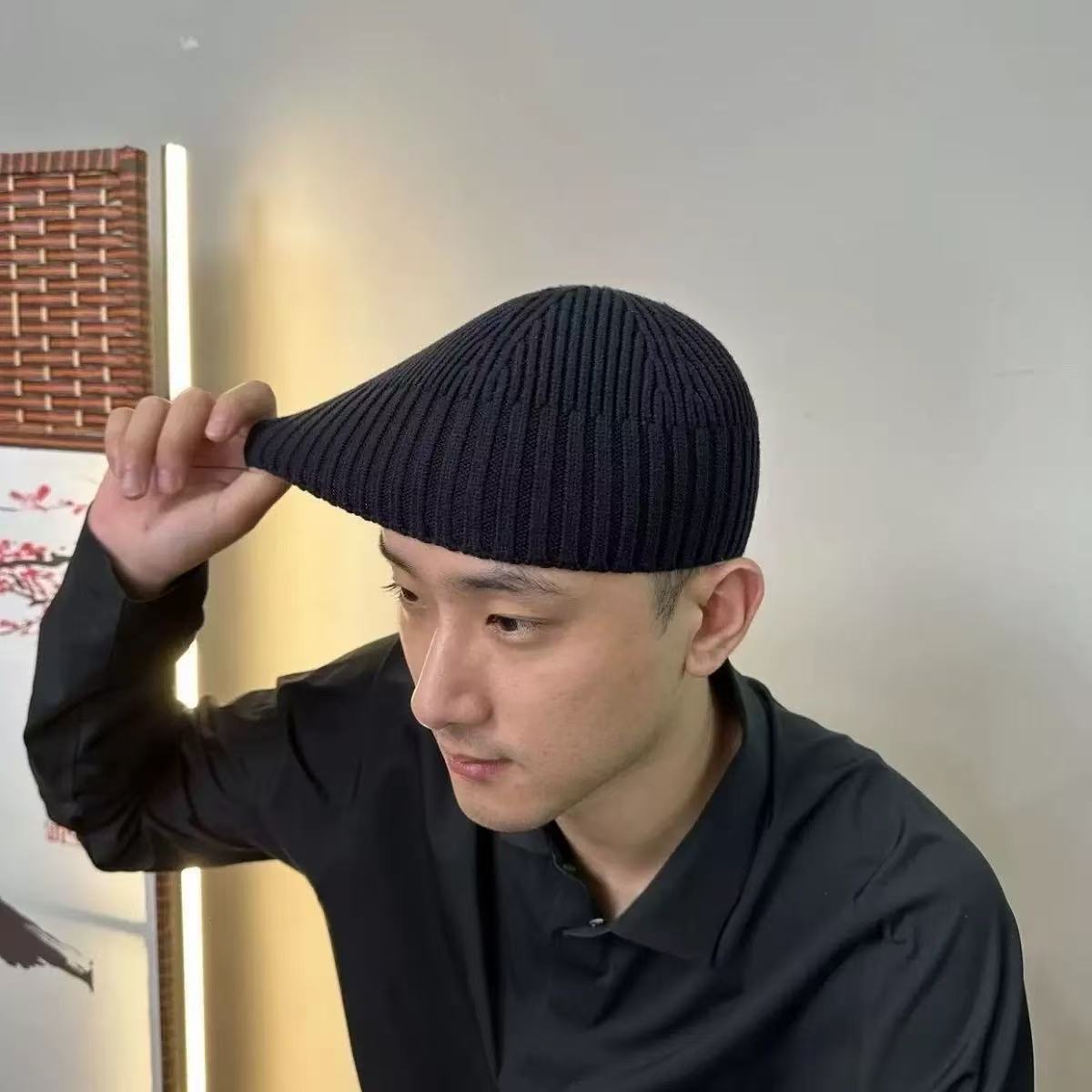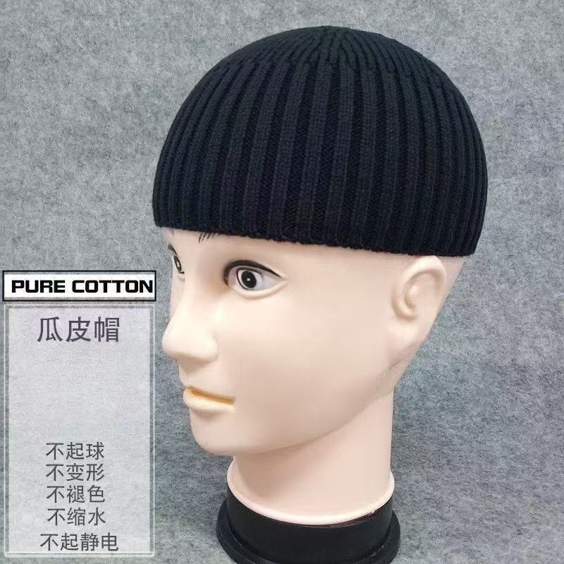 남성용 짧은 니트 모자, 겨울 스트리트 모자, 힙합 스트리트 댄스 멜론 스킨 모자, 컬링 울 학생 모자, 여성용 방한 모자