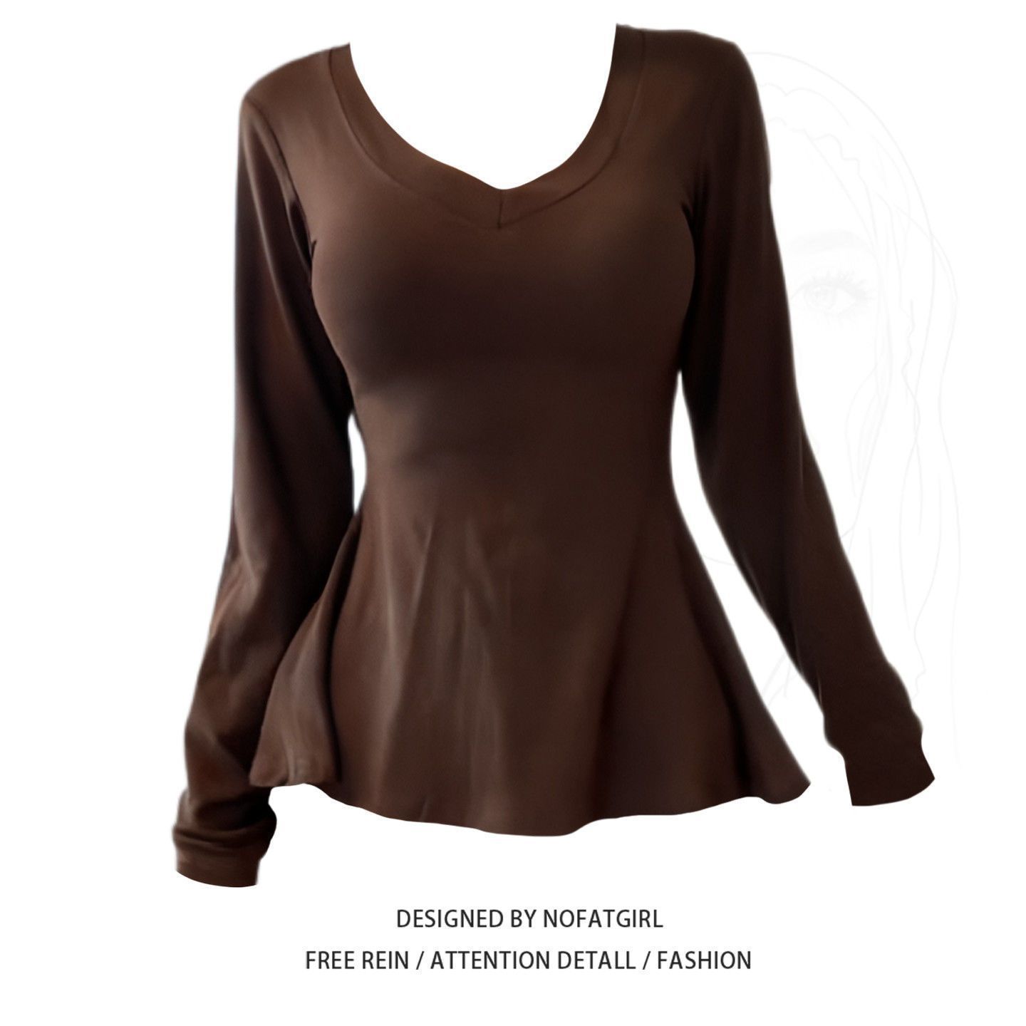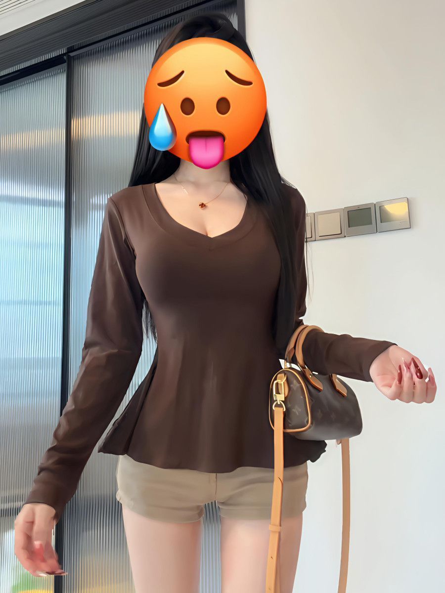 슈퍼 핸디 모달 코튼~매우 멋진 퓨어 러브 브이넥 긴팔 밑단 셔츠 뉴 슬림 웨이스트 러플 탑