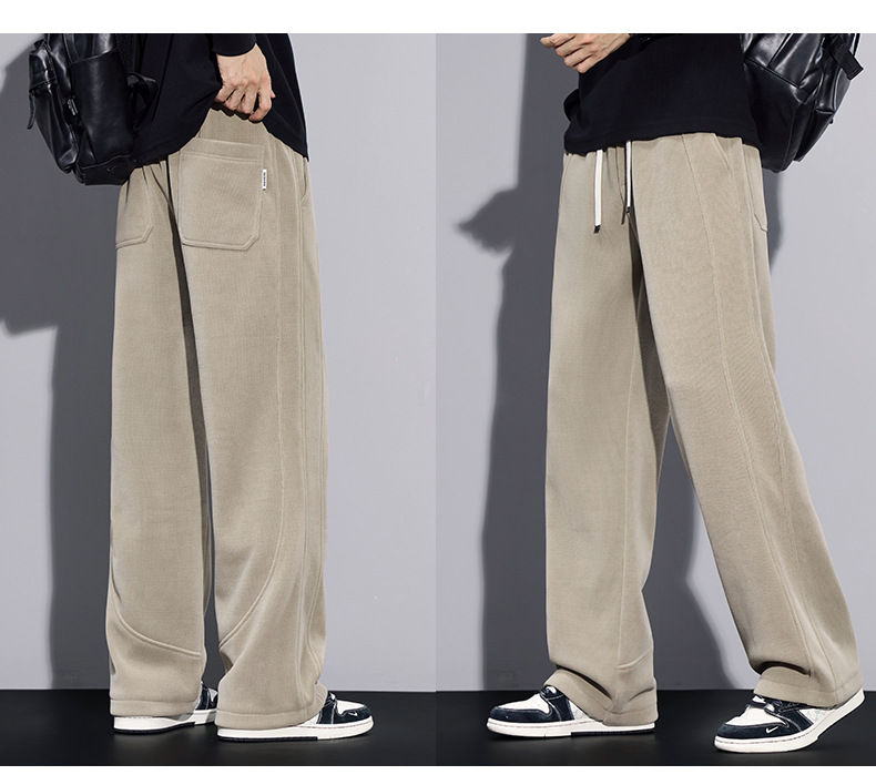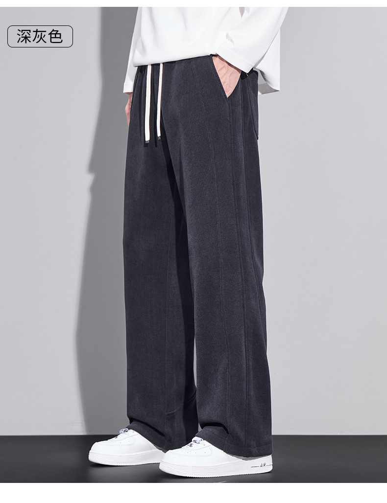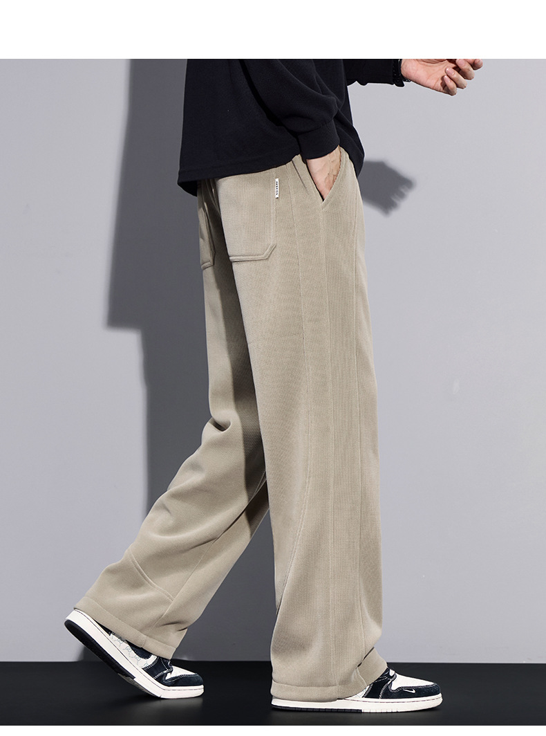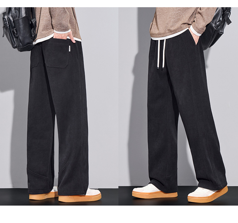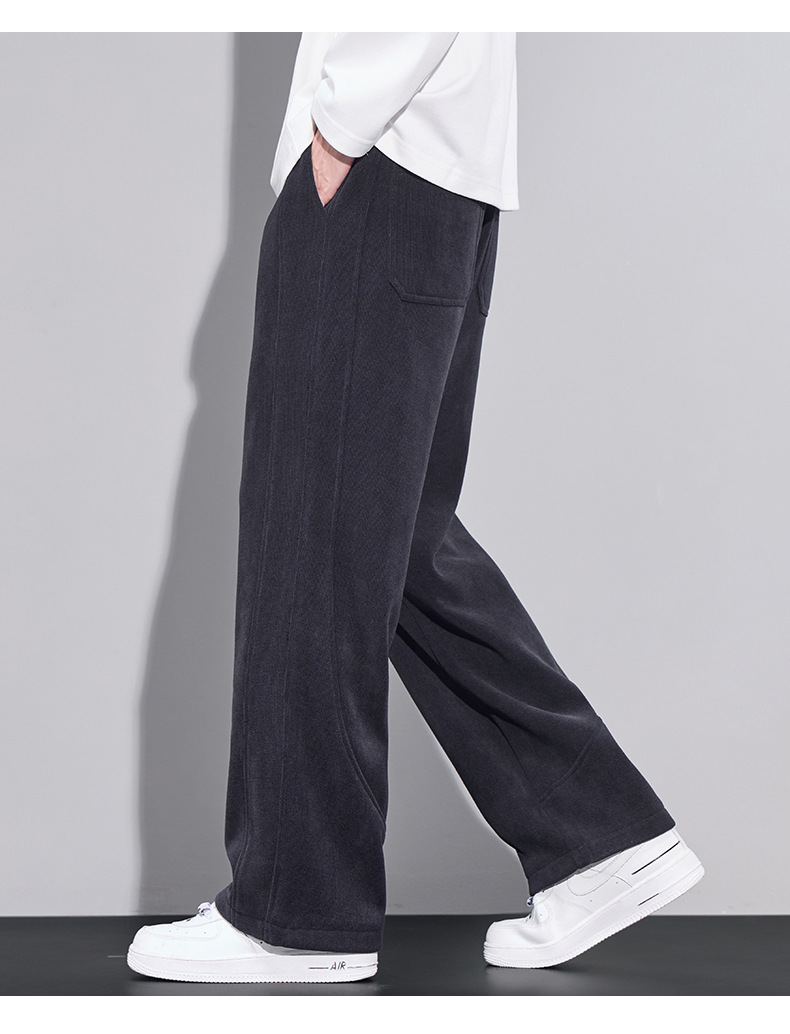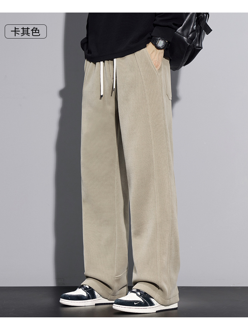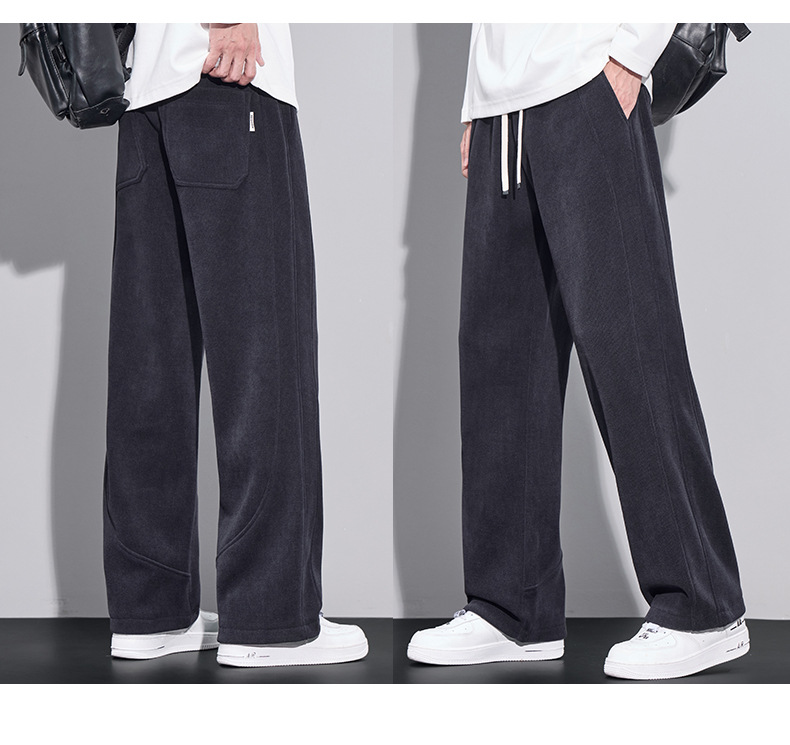 가을 겨울 남성용 코듀로이 캐주얼 팬츠 새로운 루즈 스트레이트 겨울 벨벳 두꺼운 스포츠 와이드 레그 롱 팬츠