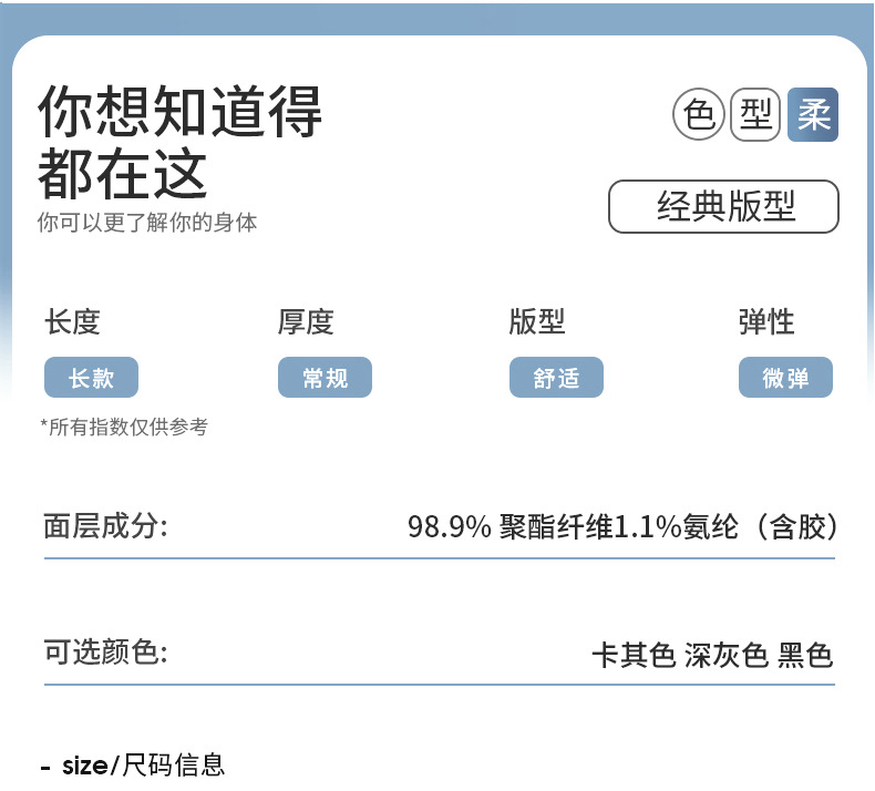 | 腰型 | 中腰 | 是否有腰带 | 无腰带 |