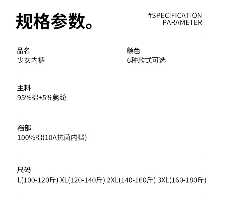 | 功能 | 无痕, 透气, 抗菌, 防走光 | 织法 | 针织 |