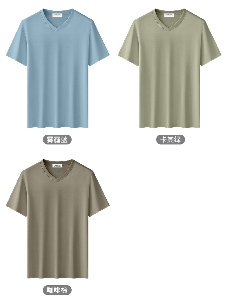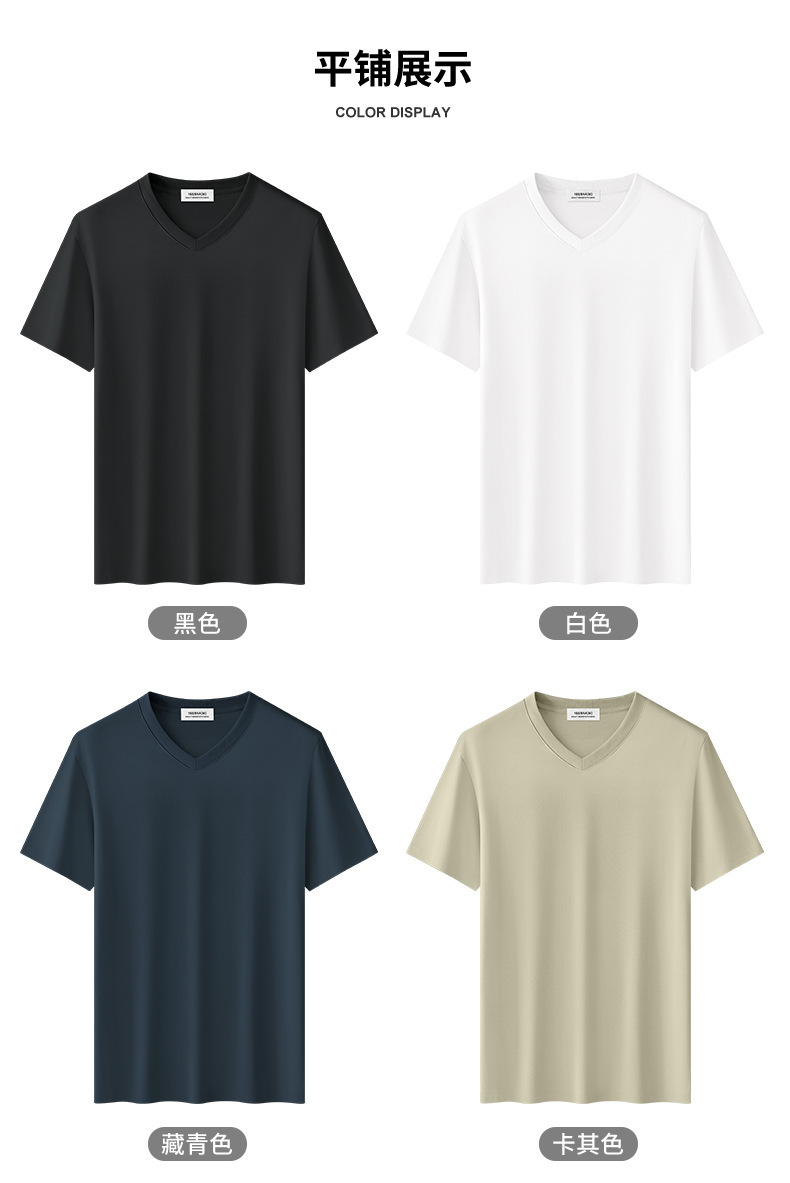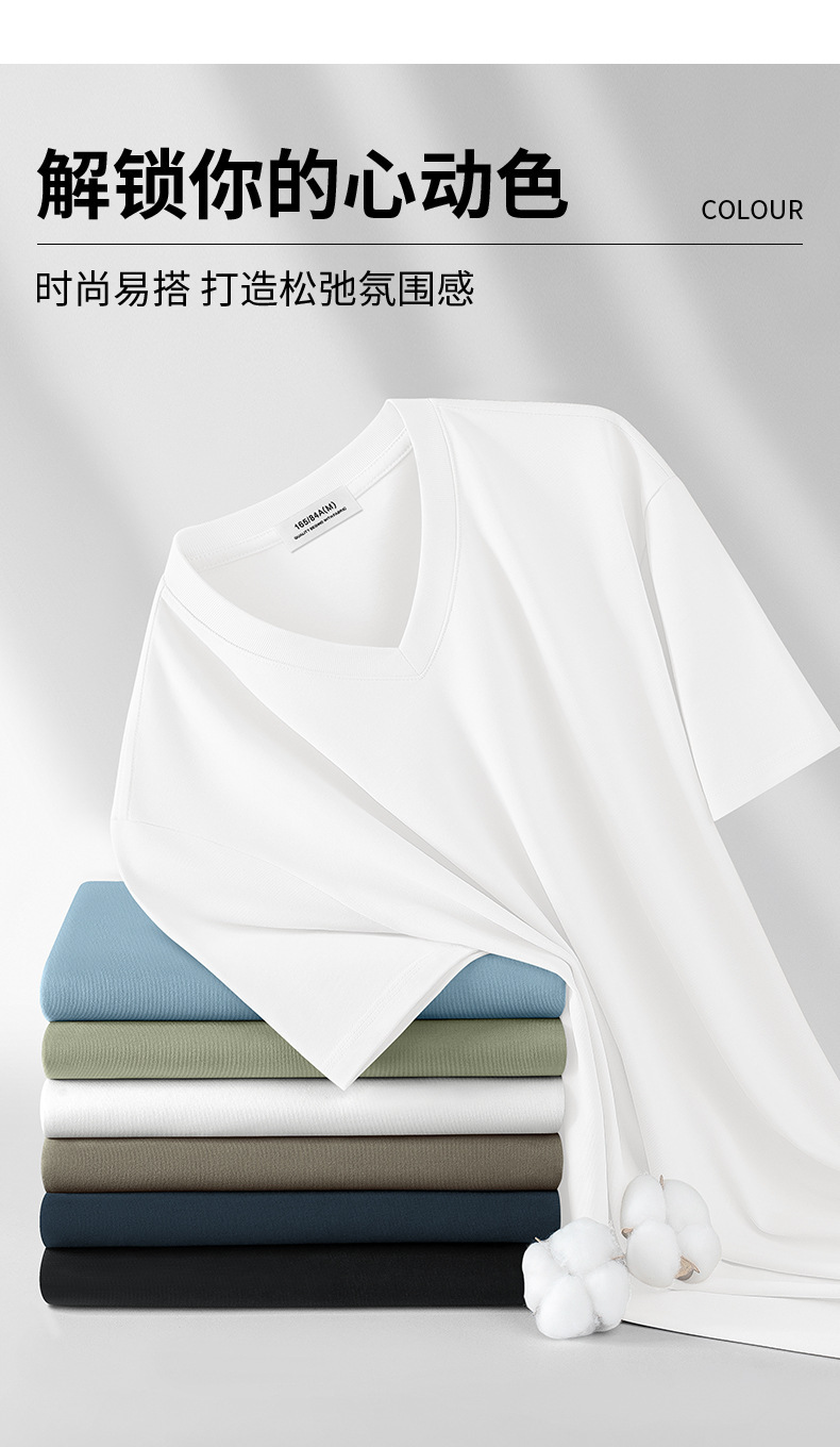 260G 헤비급 신장 롱 스테이플 코튼 V 넥 반팔 티셔츠 남성용 여름 신작 항균 하이 엔드 퓨어 코튼 카디건 넥 티셔츠
