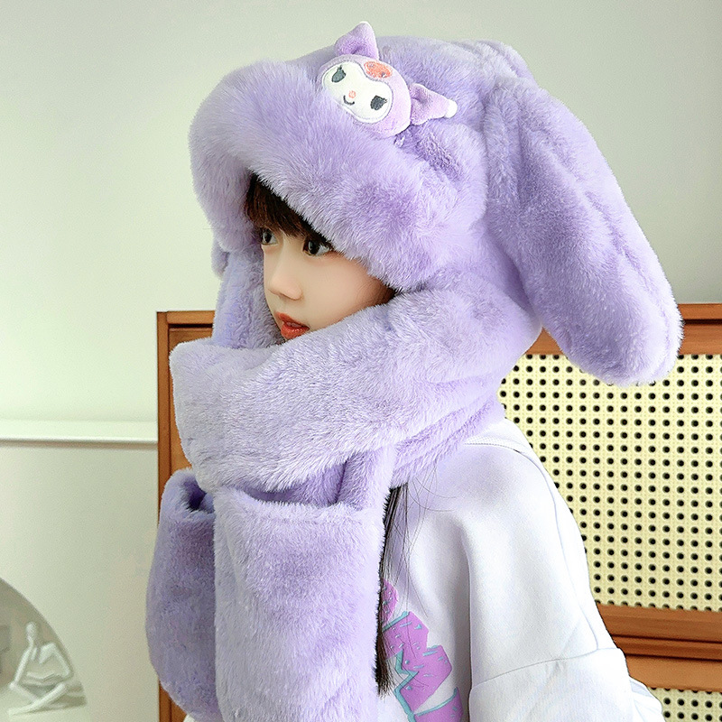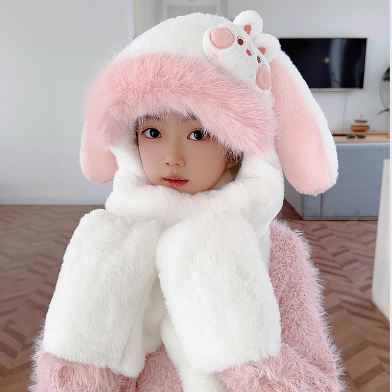 어린이 모자, 스카프, 장갑, 어린이 만화 귀 움직이는 모자, 두꺼운 3피스 세트, 겨울에 따뜻하게 유지