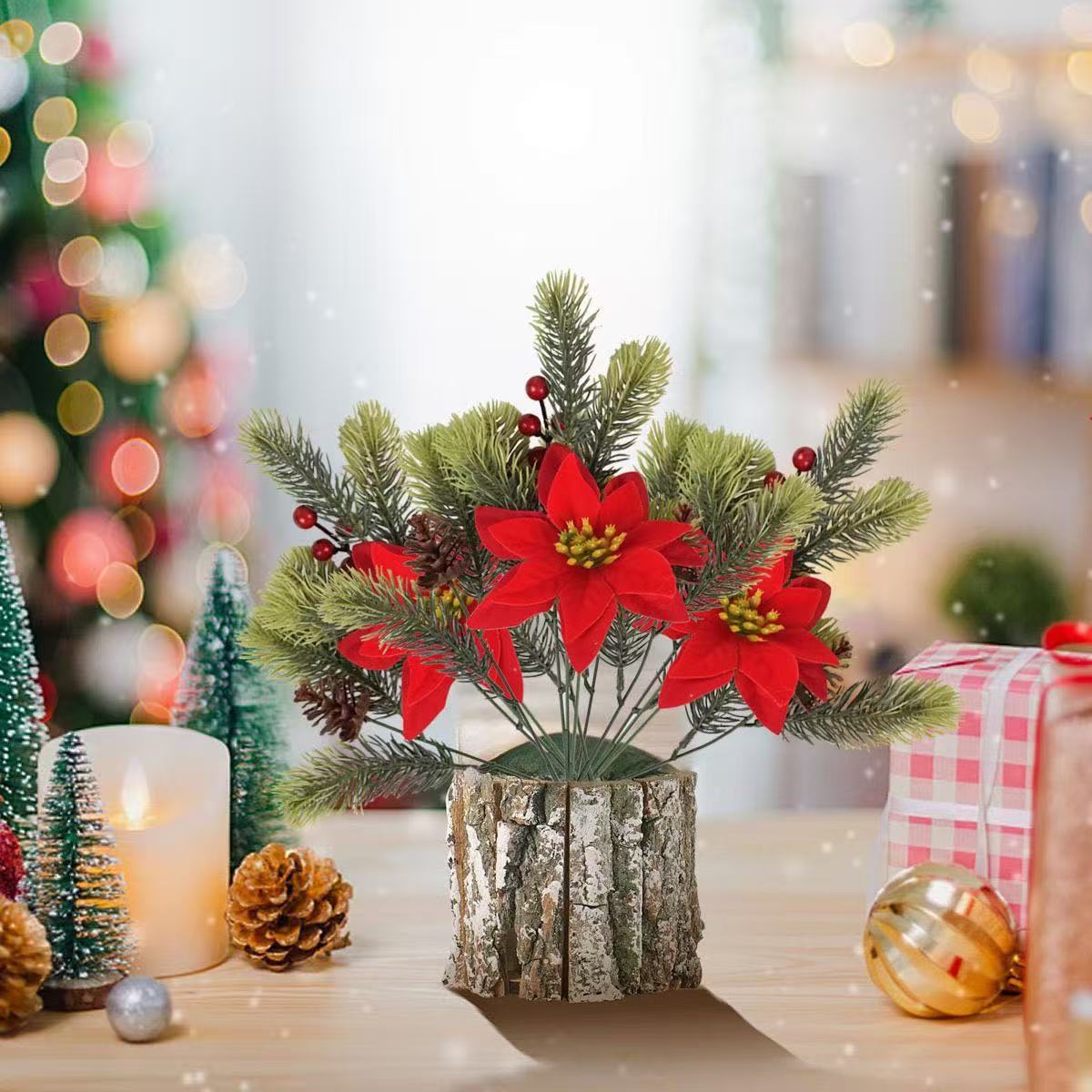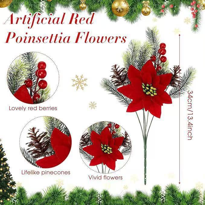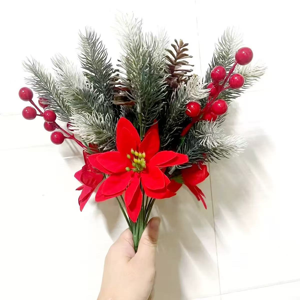 란친 크리스마스 꽃다발, 모조 소나무 가지와 솔잎 장식, 붉은 열매, 집안의 축제 분위기, 크리스마스 트리 장식품