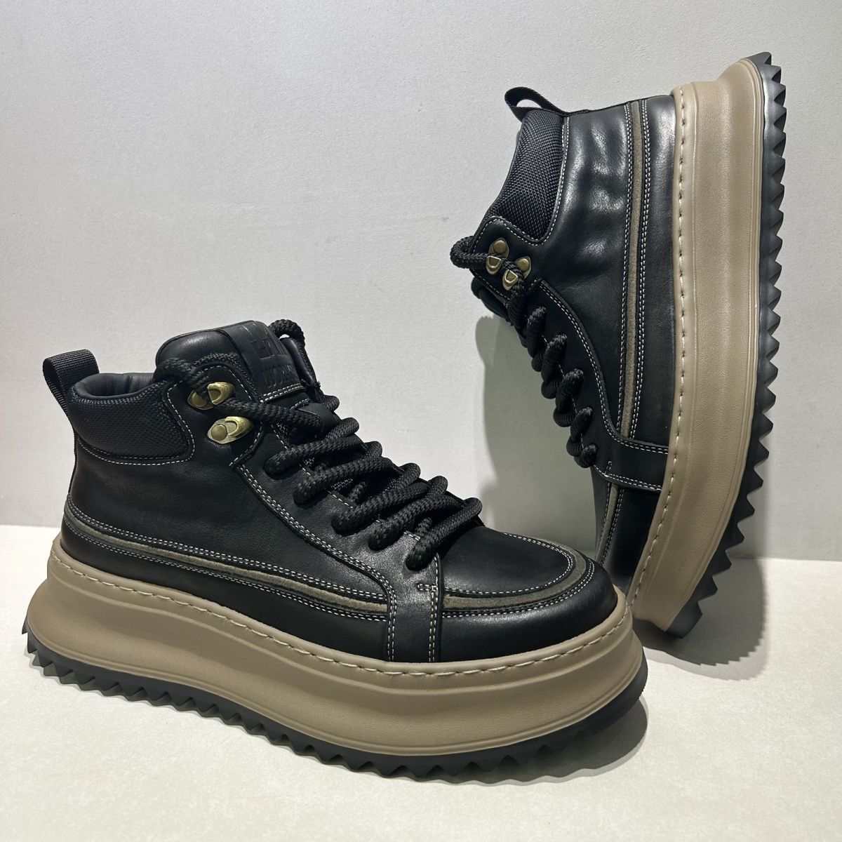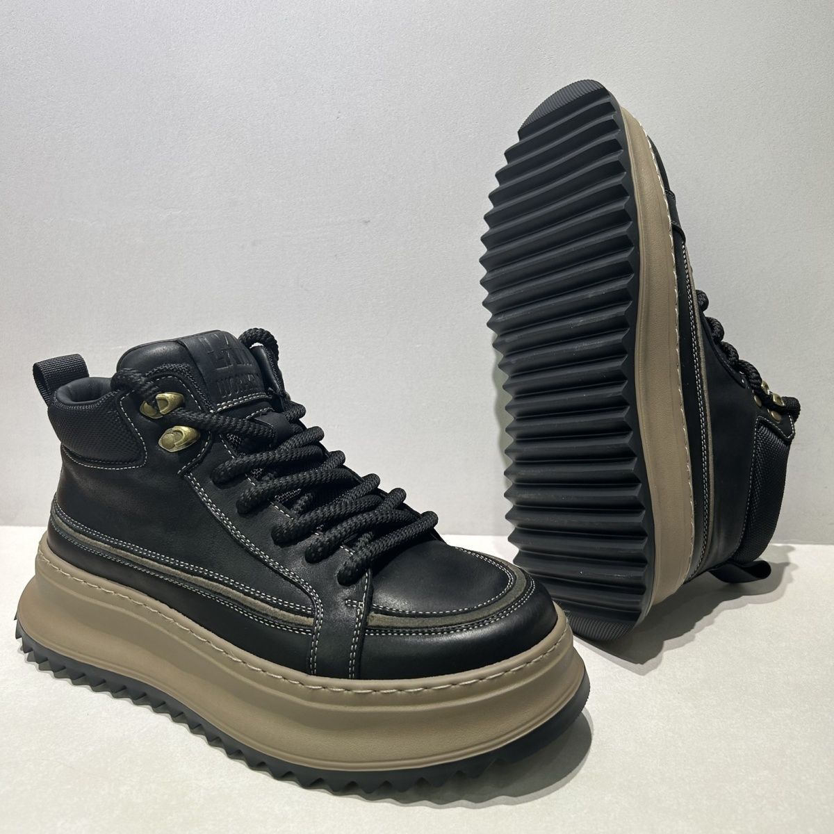 2025 가을 남성 신발 가을 겨울 신작 캐주얼 신발 플랫폼 두꺼운 밑창 가죽 공기 작업복 따뜻한 벨벳 신발