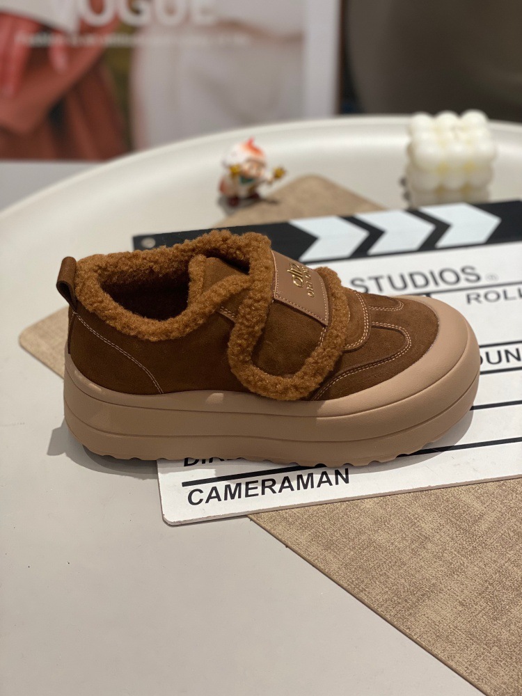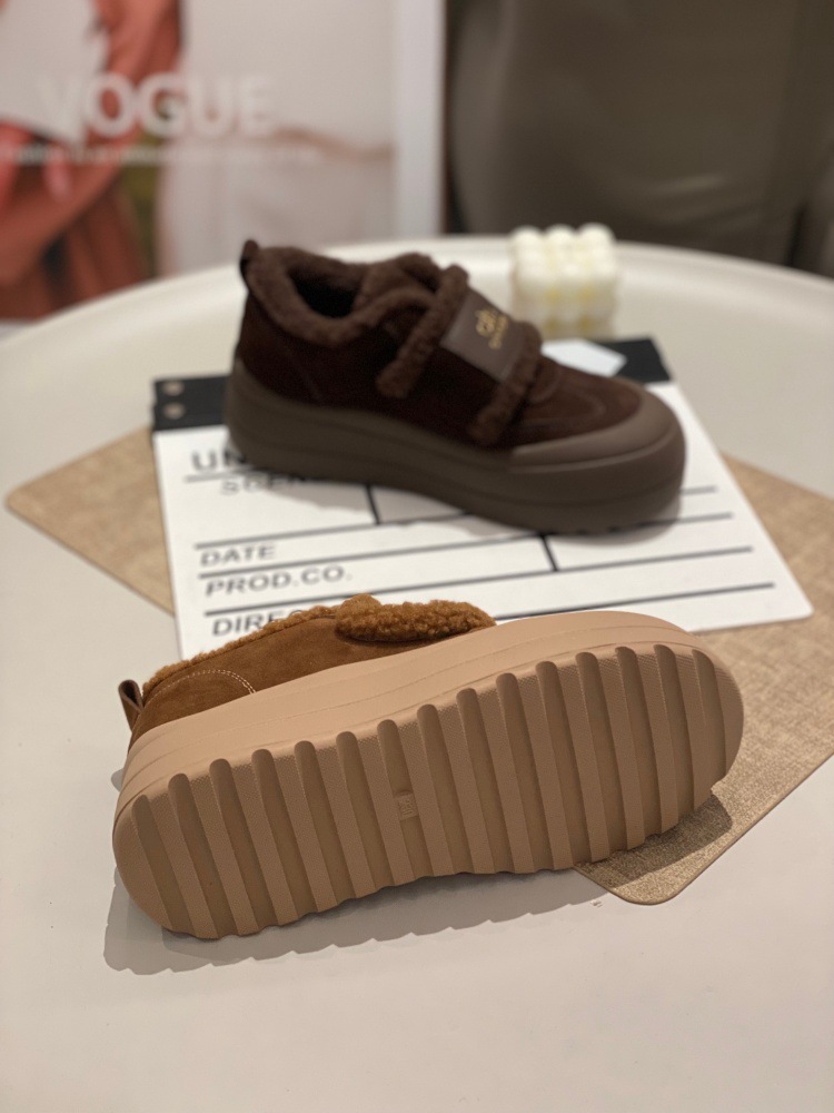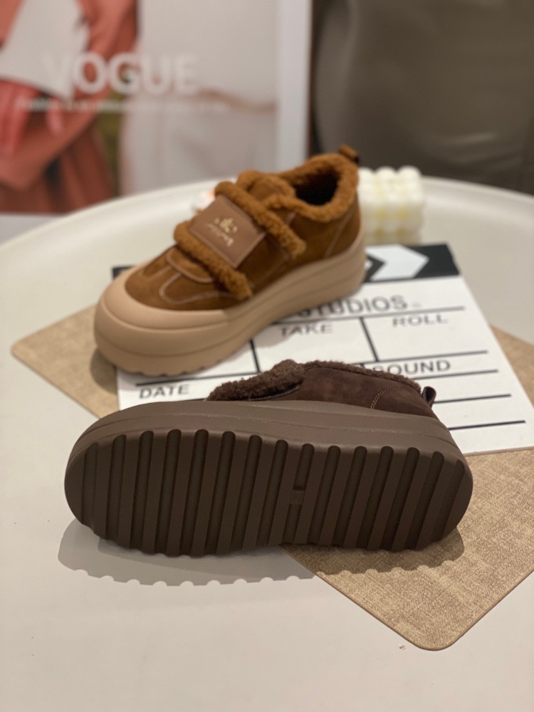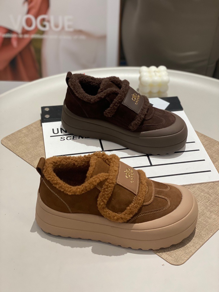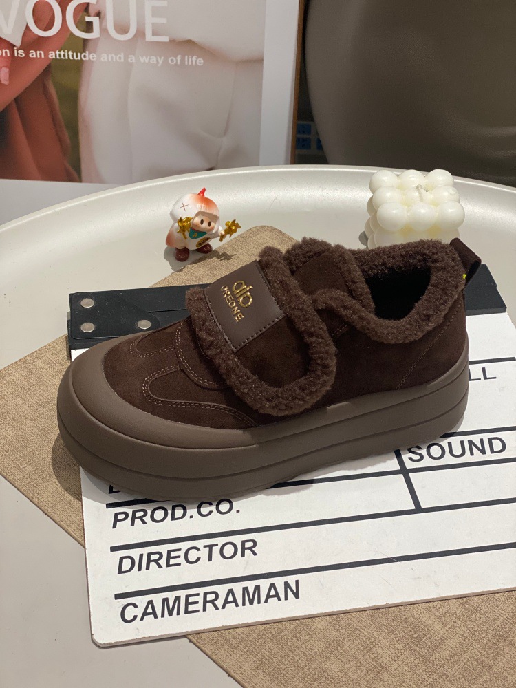 여성용 빵 신발 2025 새로운 대형 두꺼운 밑창 편안하고 세련된 벨벳 다용도 경량 따뜻한 면 신발 모피 신발