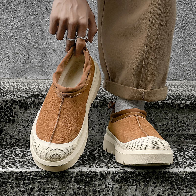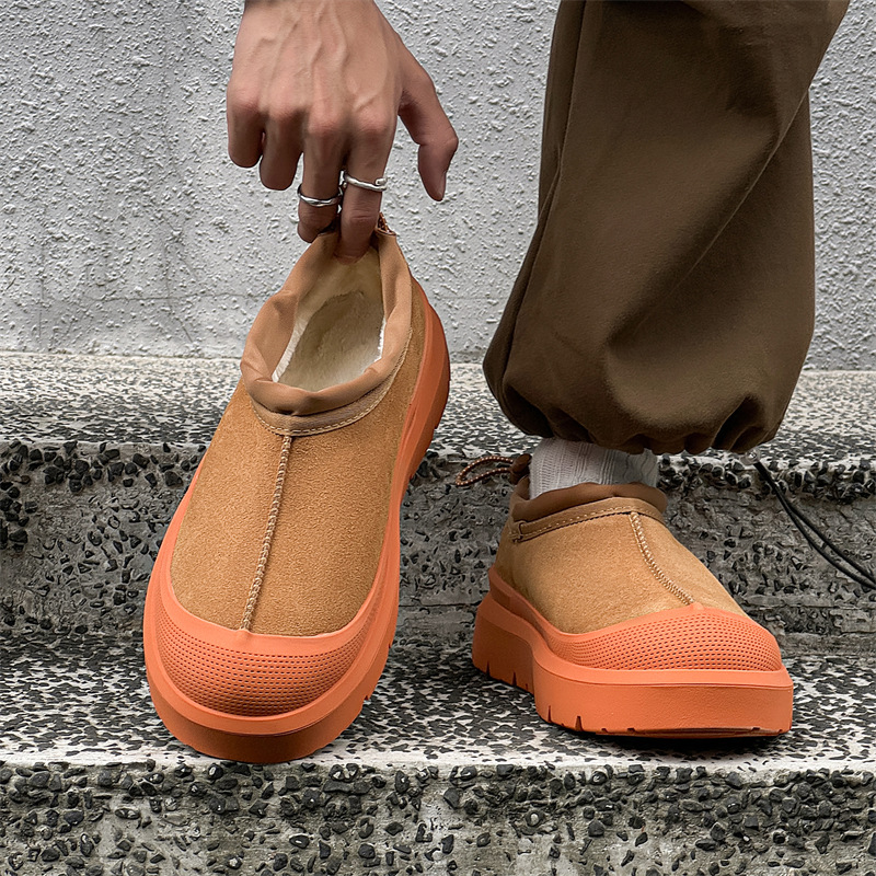 Wang Yibo의 같은 스타일 Sangpo 스노우 부츠 가죽 일체형 남성용 벨벳 2025 새로운 미끄럼 방지 두꺼운 게으른 면화