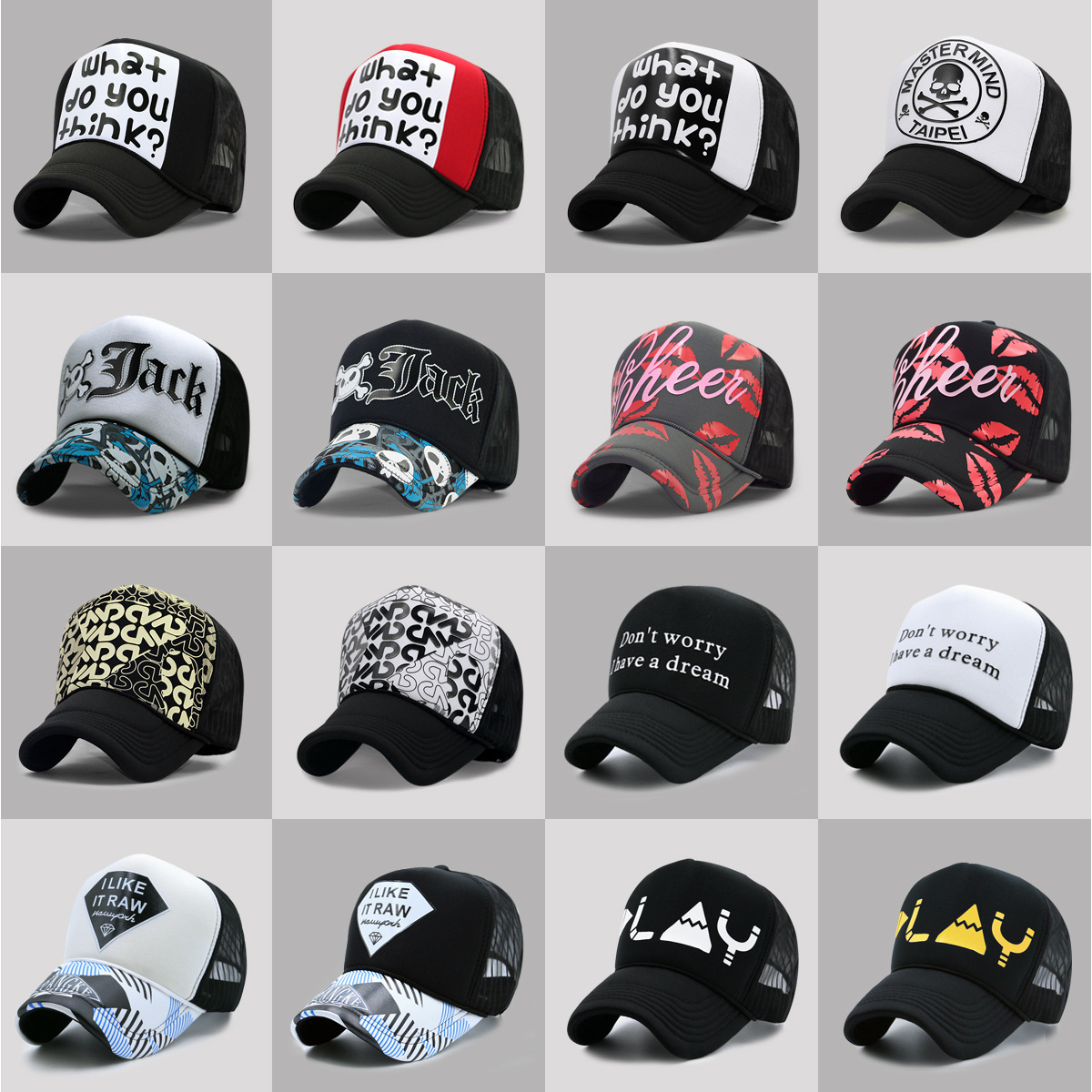 하이 패션 문자 인쇄 자수 메쉬 모자 한국 스타일 유행 여름 트럭 모자 태양 보호 태양 모자 남성과 여성을위한 태양 모자