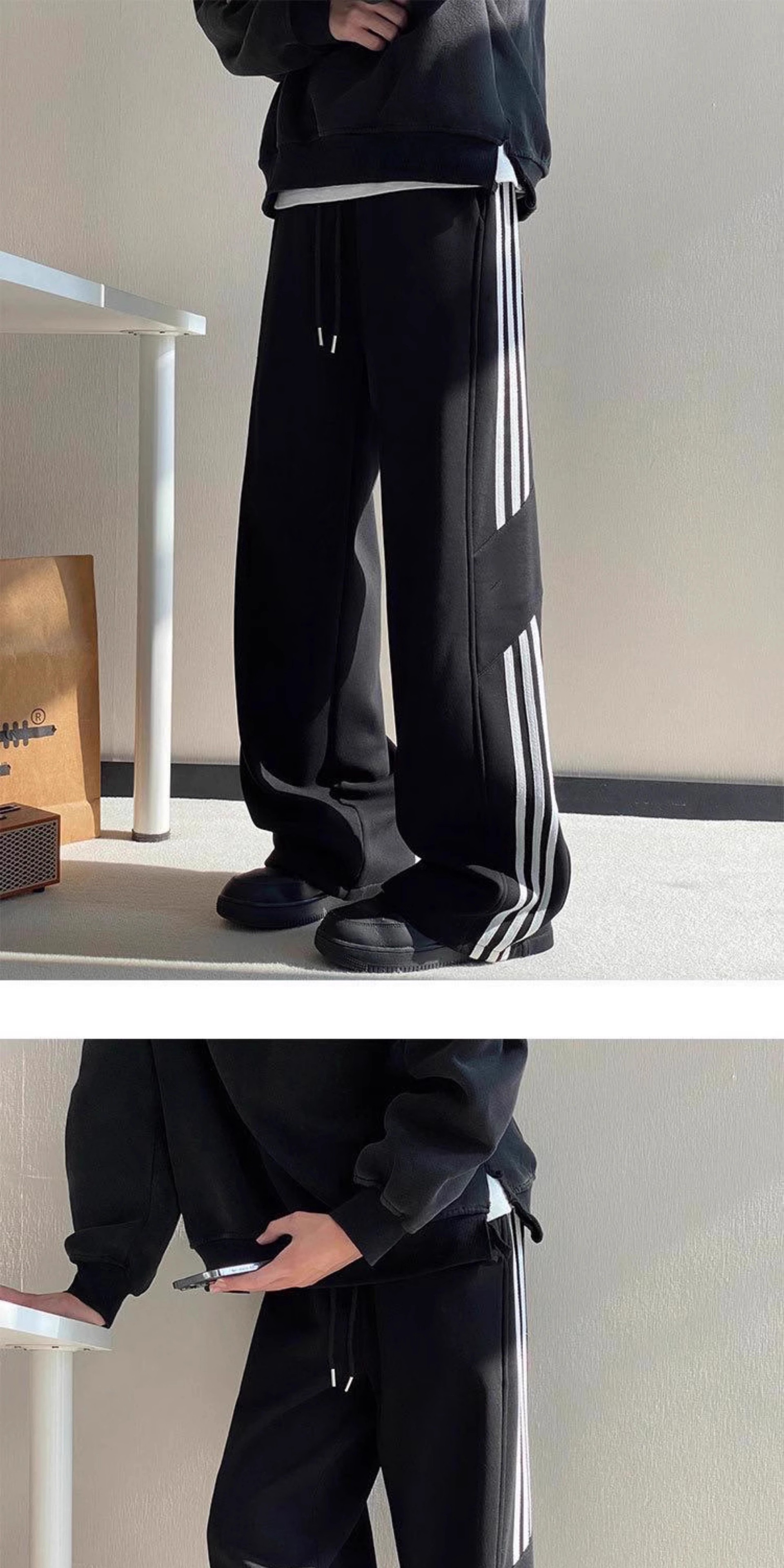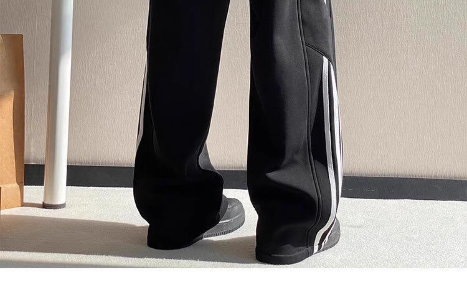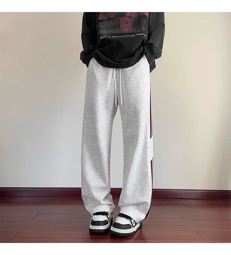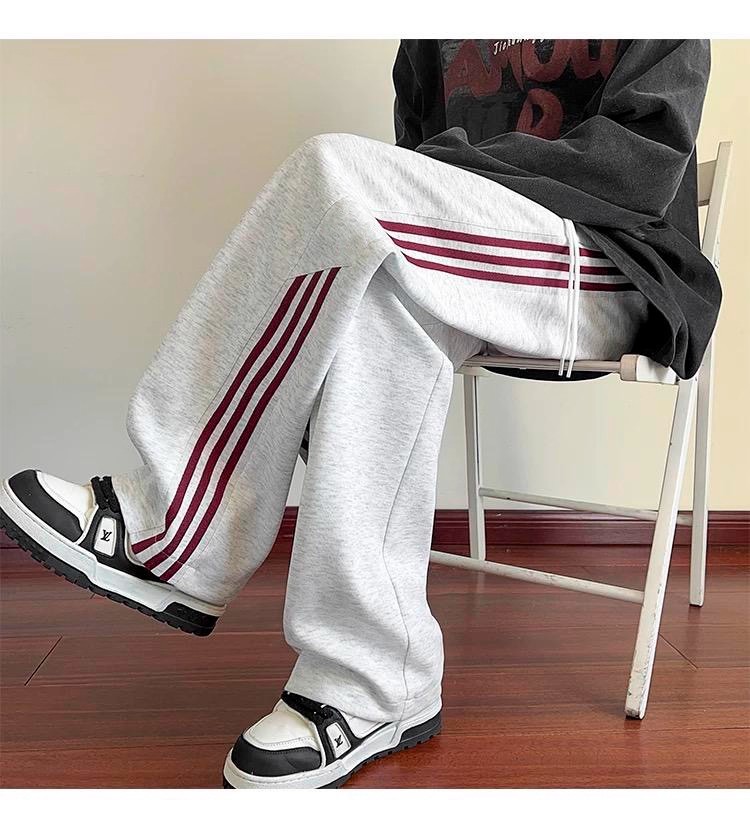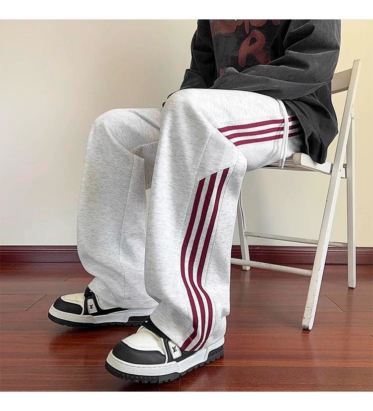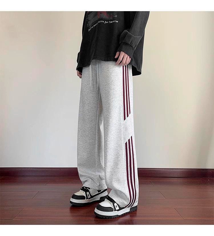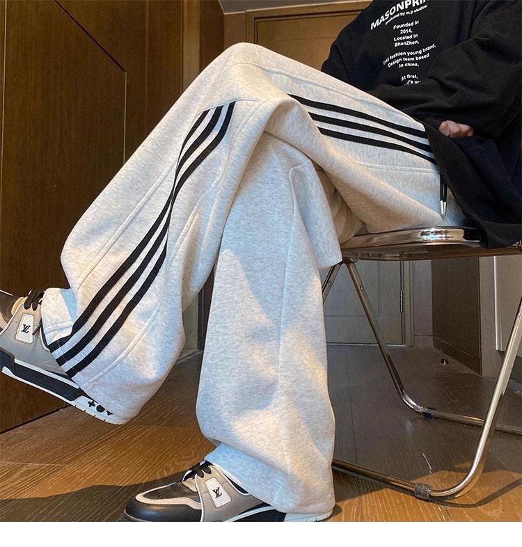 남성용 바지 가을 겨울 2025 새로운 스포츠 홍콩 스타일 와이드 레그 루즈 벨벳 캐주얼 바지 스트레이트 스트라이프 바지 트렌디